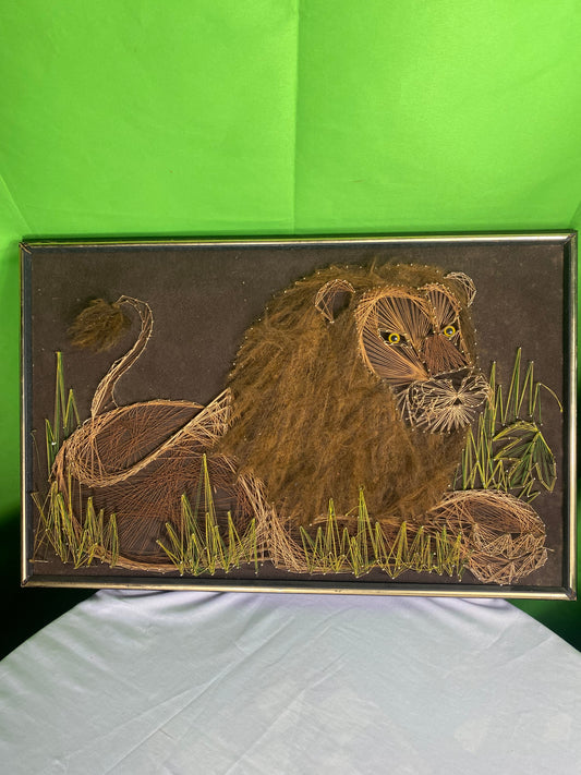 Mid Century Modern Nail String 3d Lion In Jungle Art Hanging Wall Decor