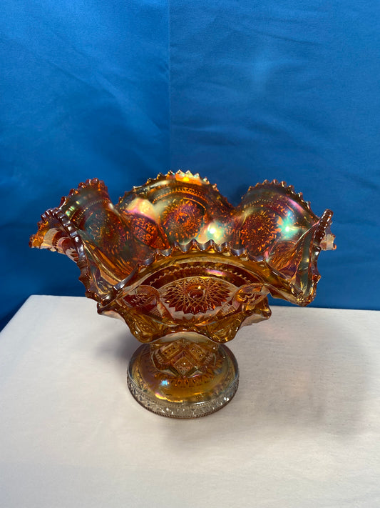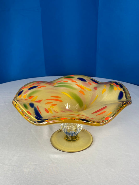 Hand Blown Art Glass Bowl With Leaf Motif And Gold Flecks