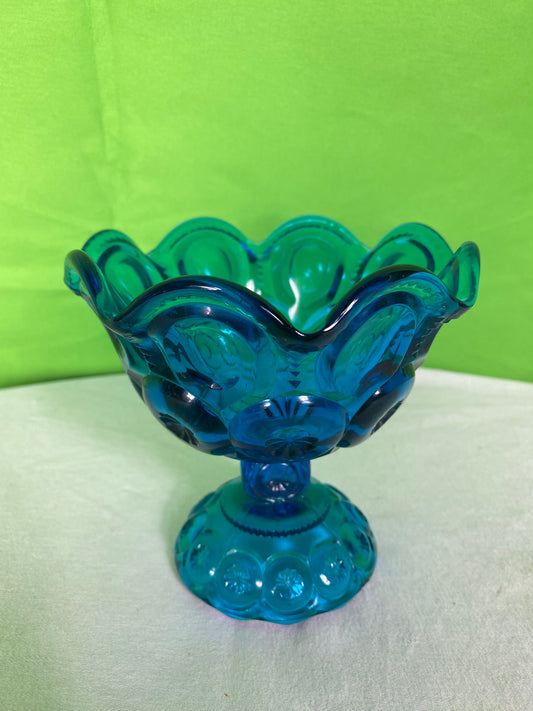 LE Smith Glass Moon And Stars Blue Round Ruffled Compote