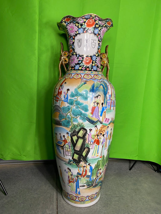 Large Chinese Heron Floral Ceramic Vase Circa, 1950's