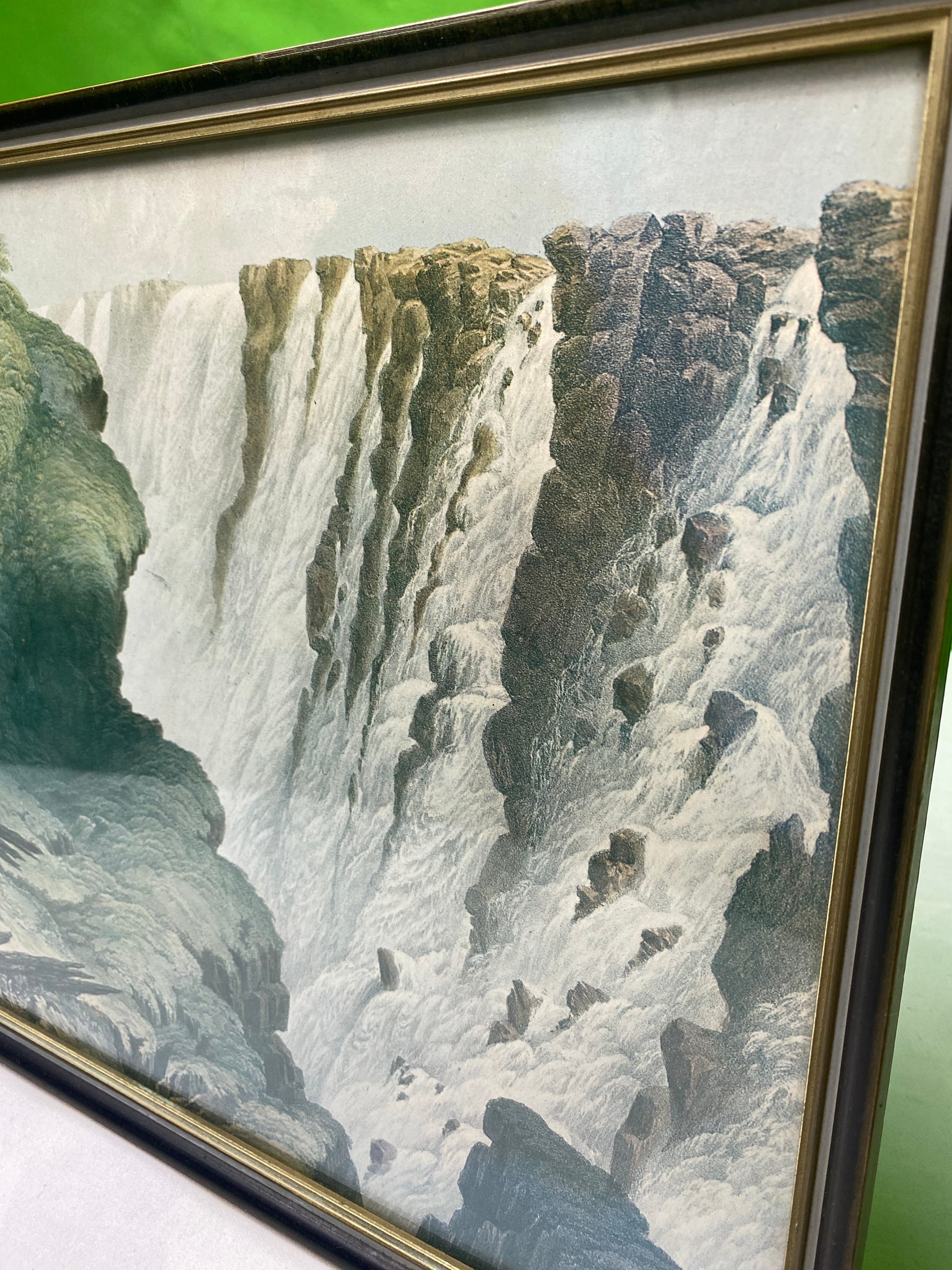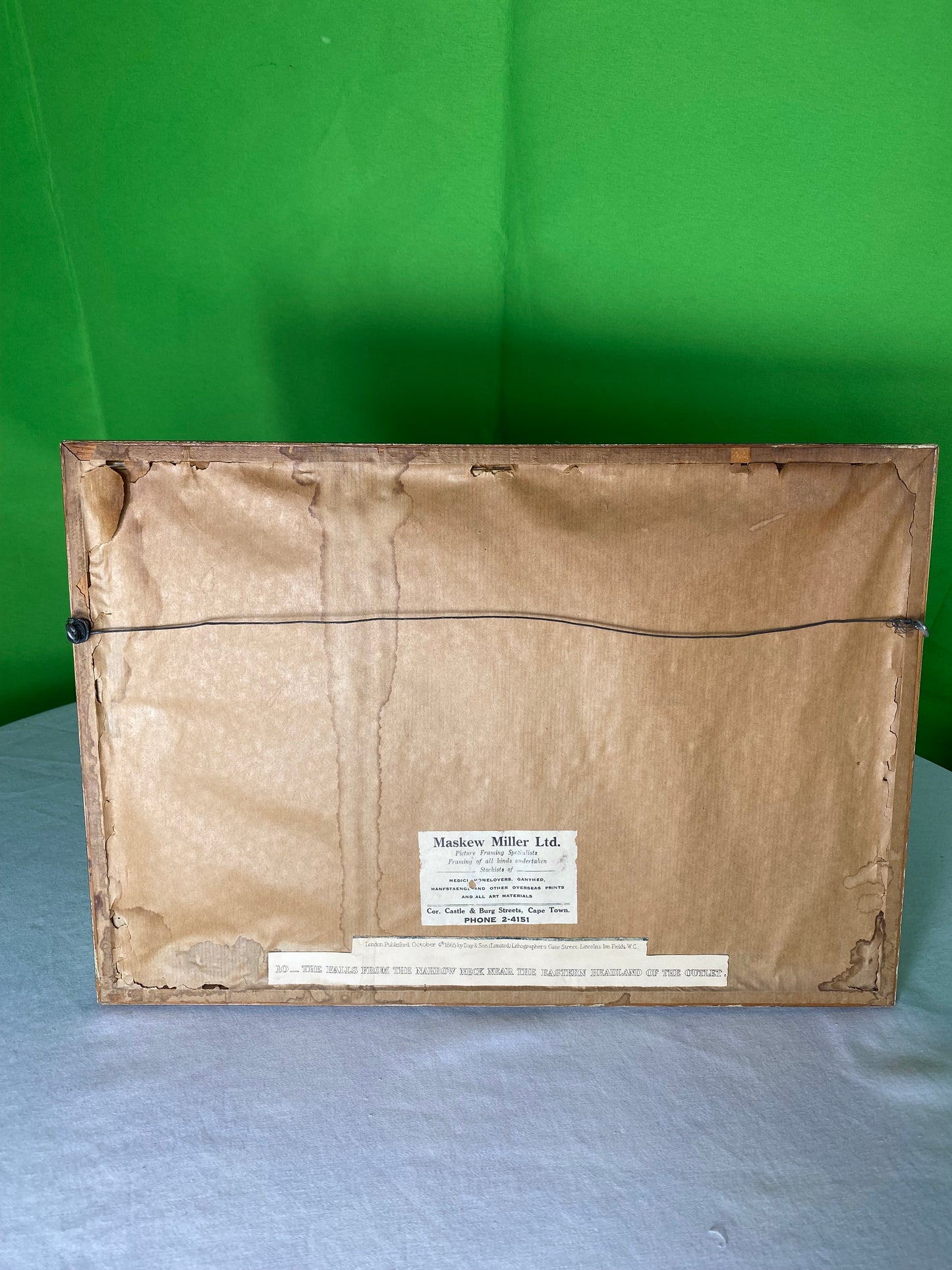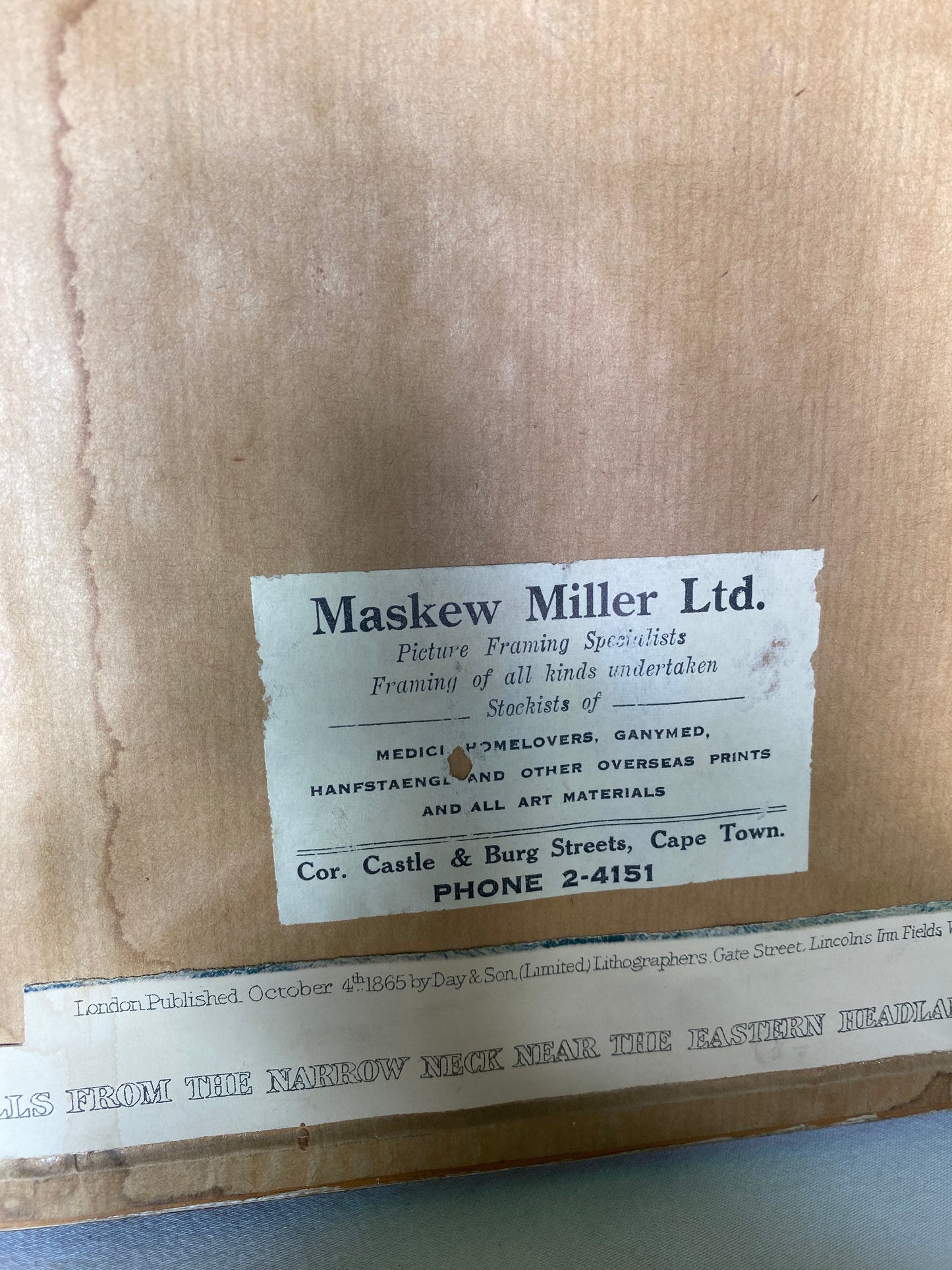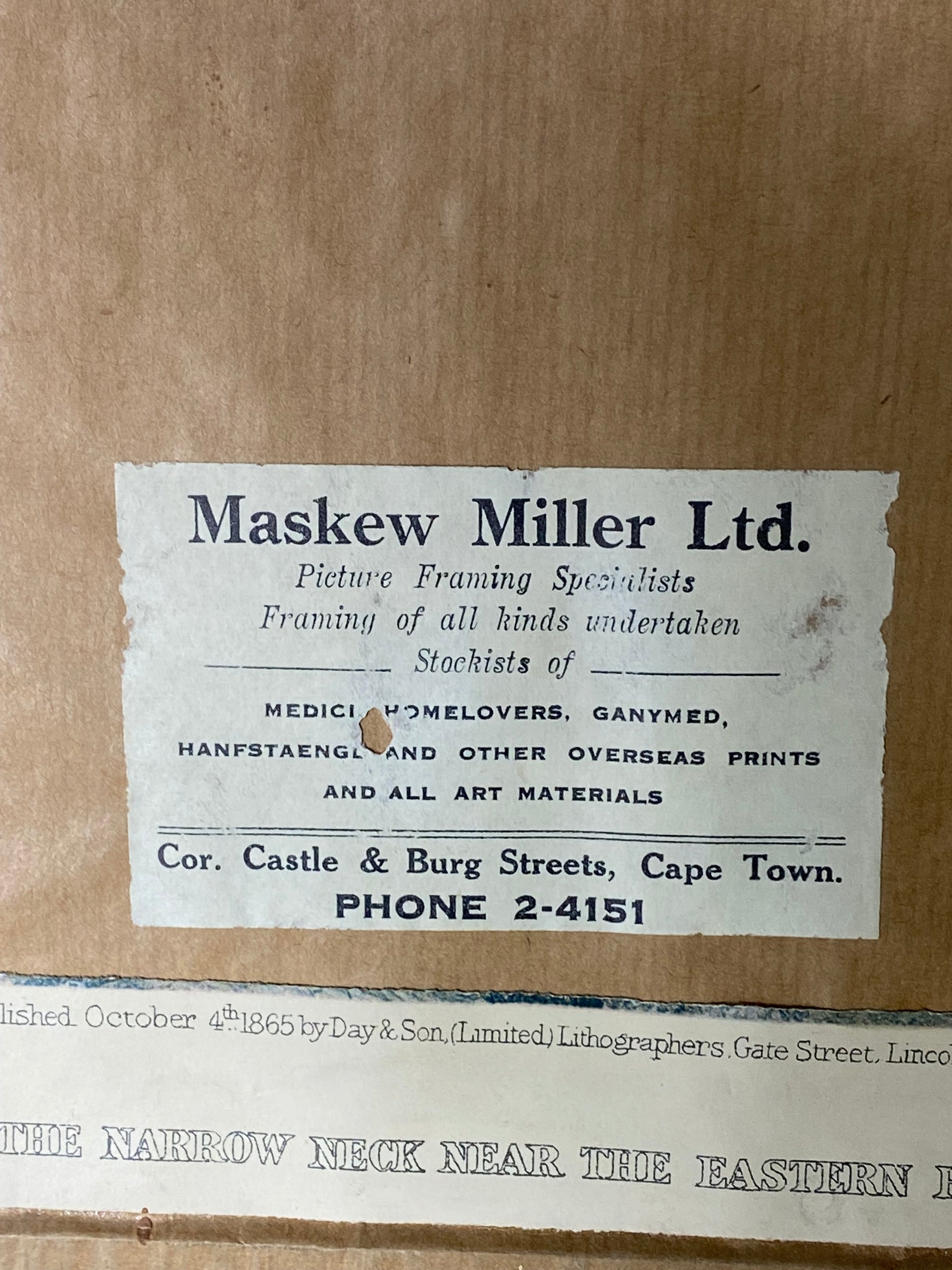 Step back into the 19th century and experience the breathtaking natural beauty captured in this framed original lithograph from 1865. Custom framed by Maskew Miller Ltd. in Cape Town, South Africa. On the back side the framer mounted the information from the lithograph being "London published October 4th 1865 by Day & Son, (Limited) Lithographers".