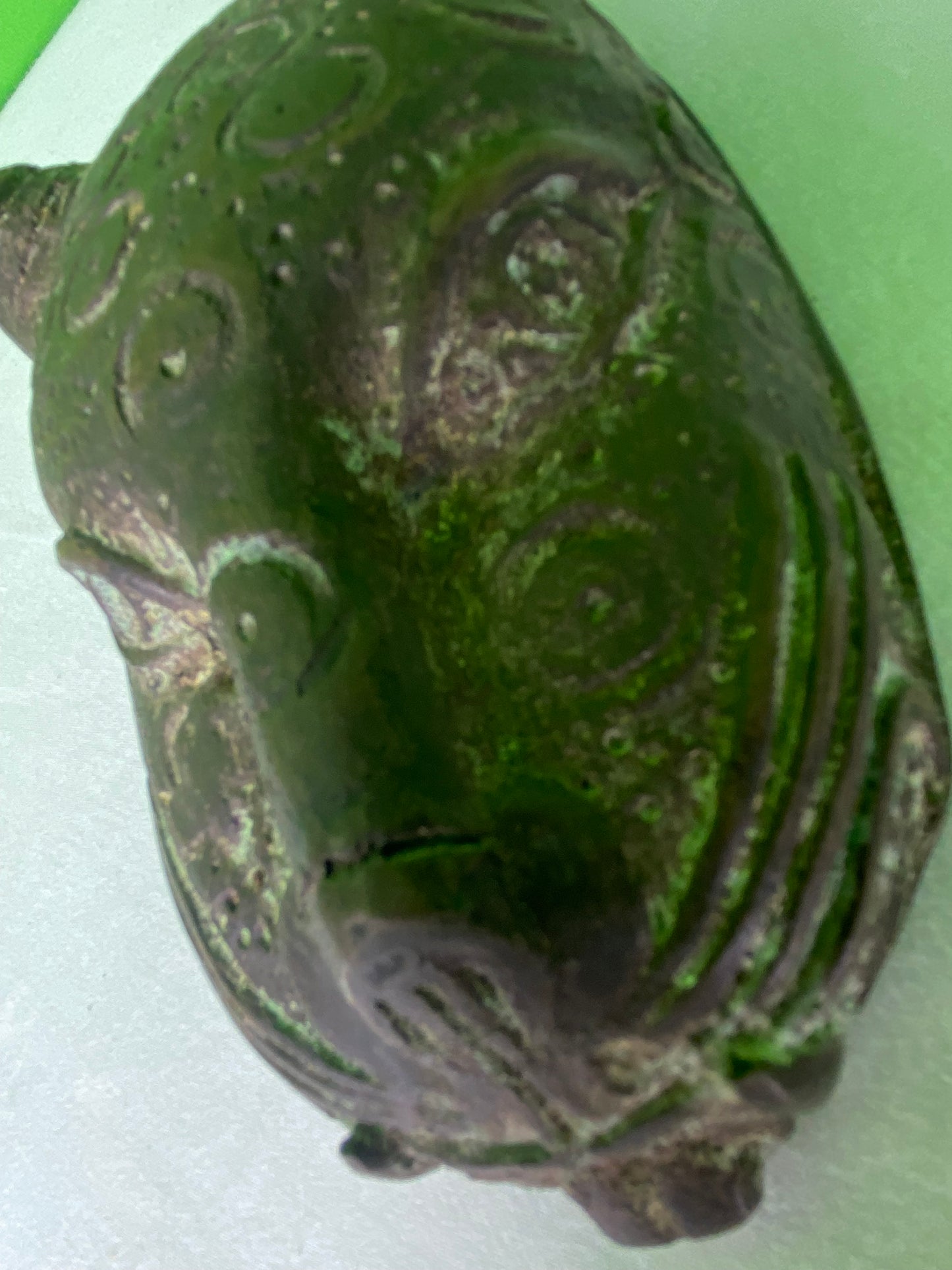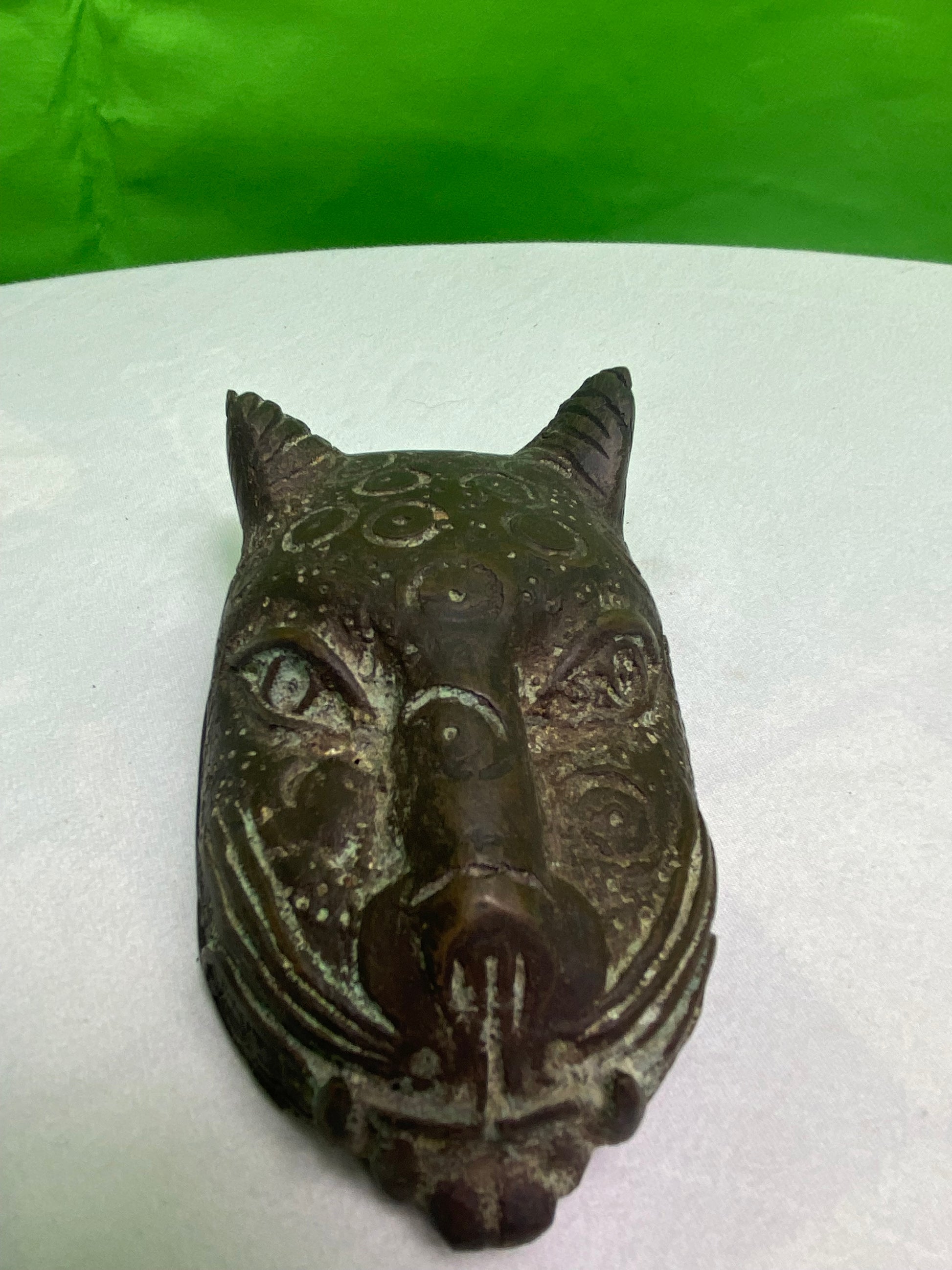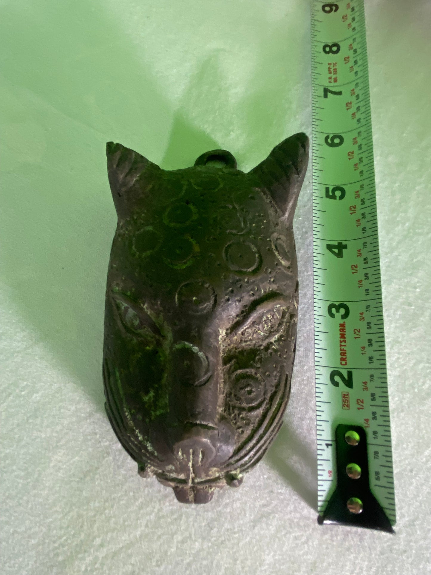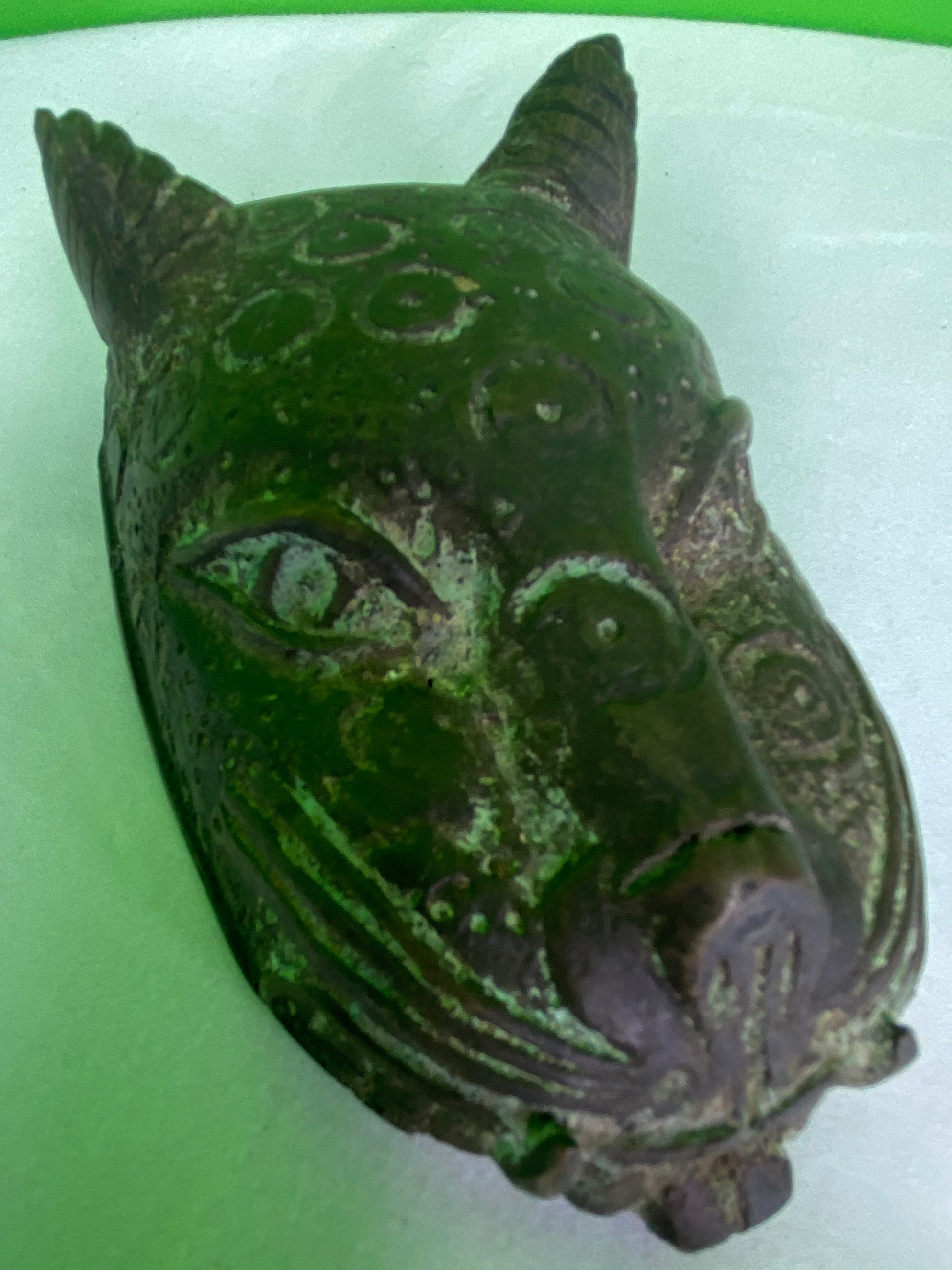 Own a powerful piece of African artistry with this Benin bronze leopard head, a striking symbol of strength and royalty, exquisitely crafted with intricate detail and cultural significance.