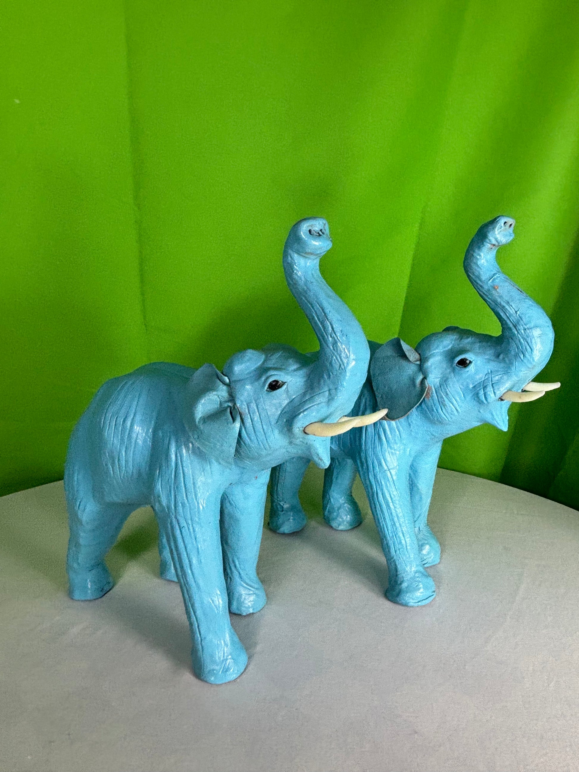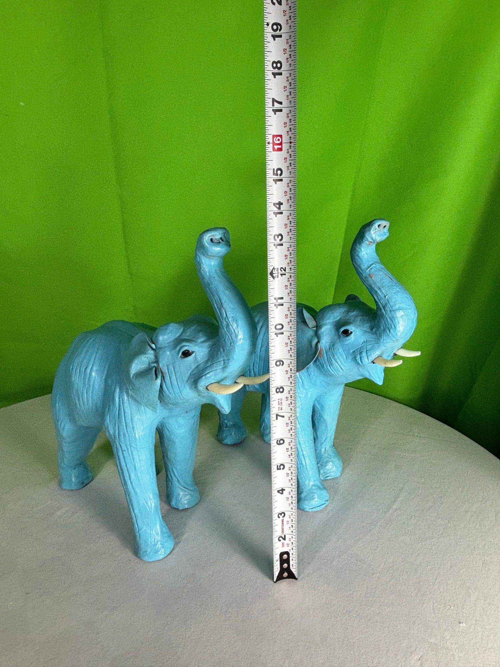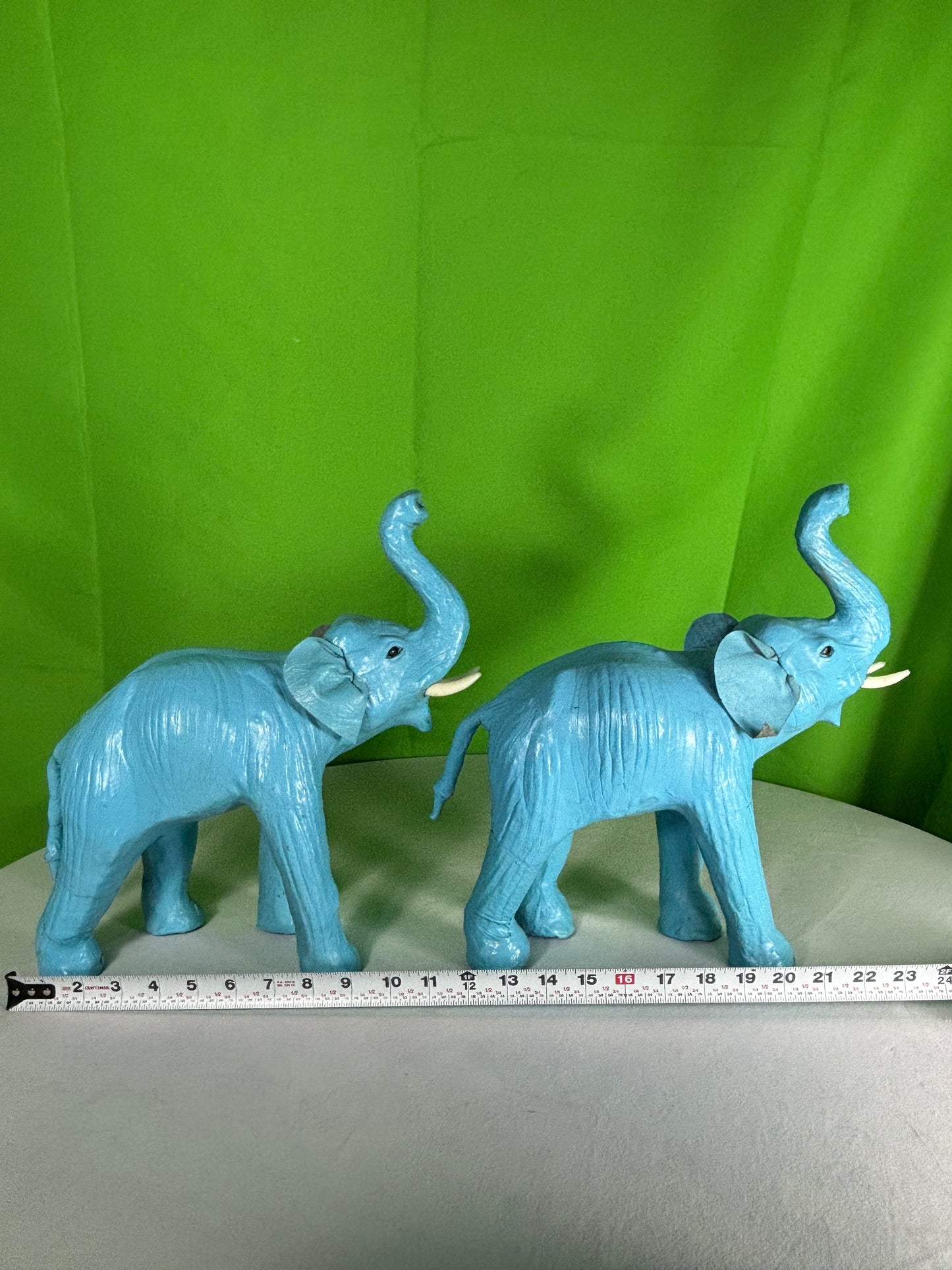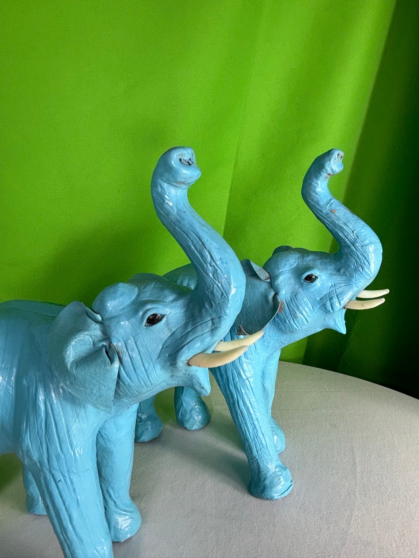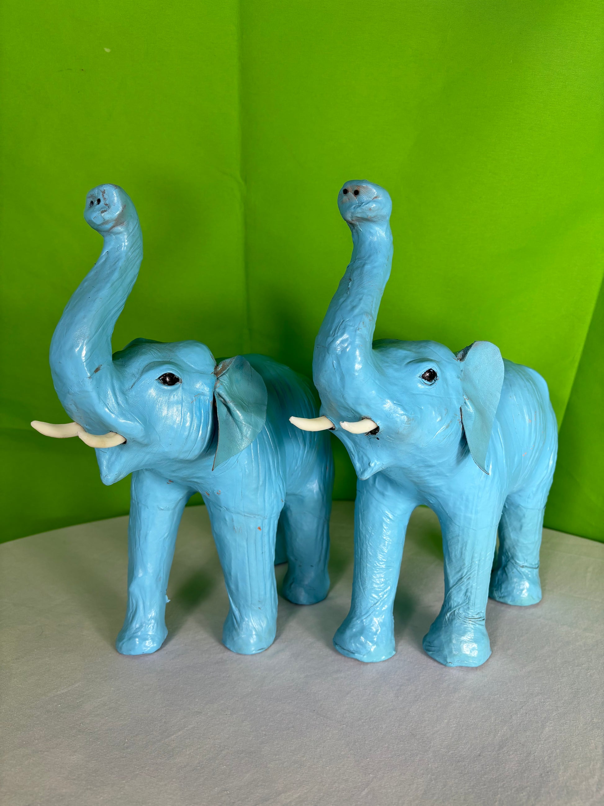 Bring charm and elegance to your décor with this beautiful pair of blue leather elephants—handcrafted, whimsical, and perfect as a striking accent or collectible display.