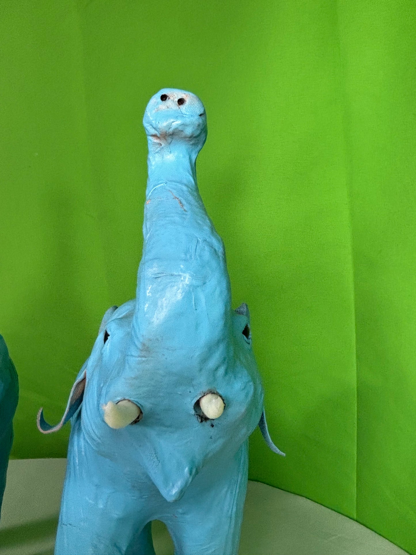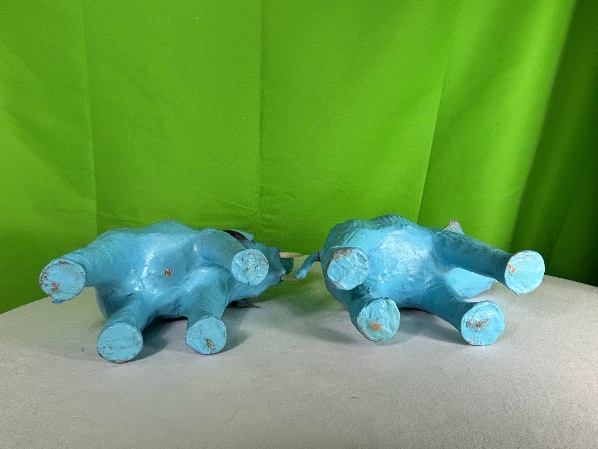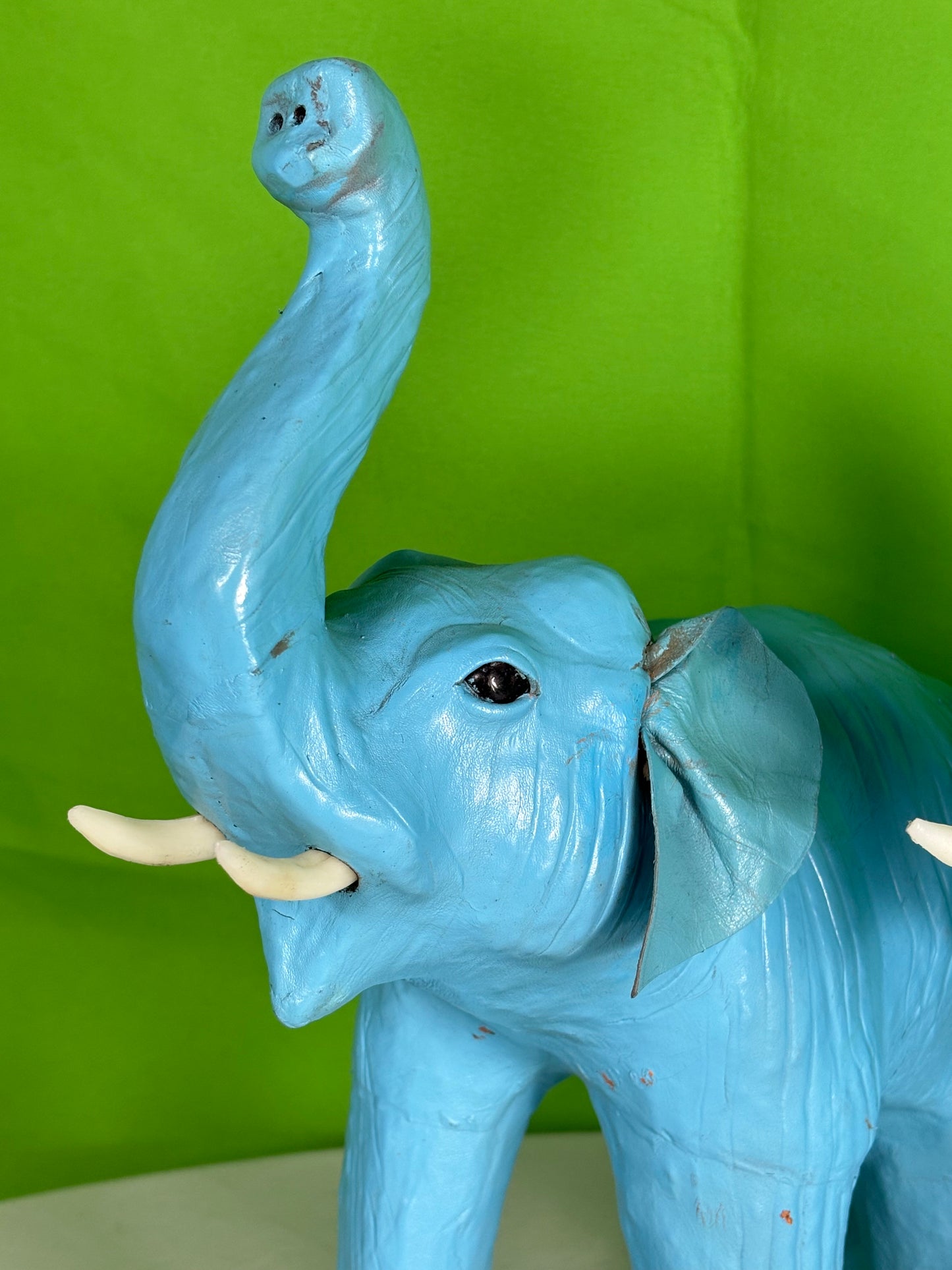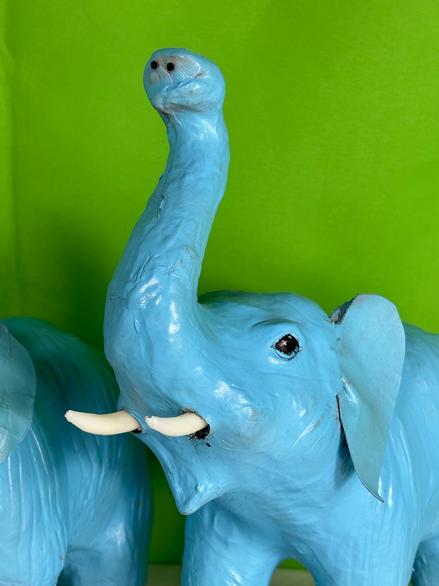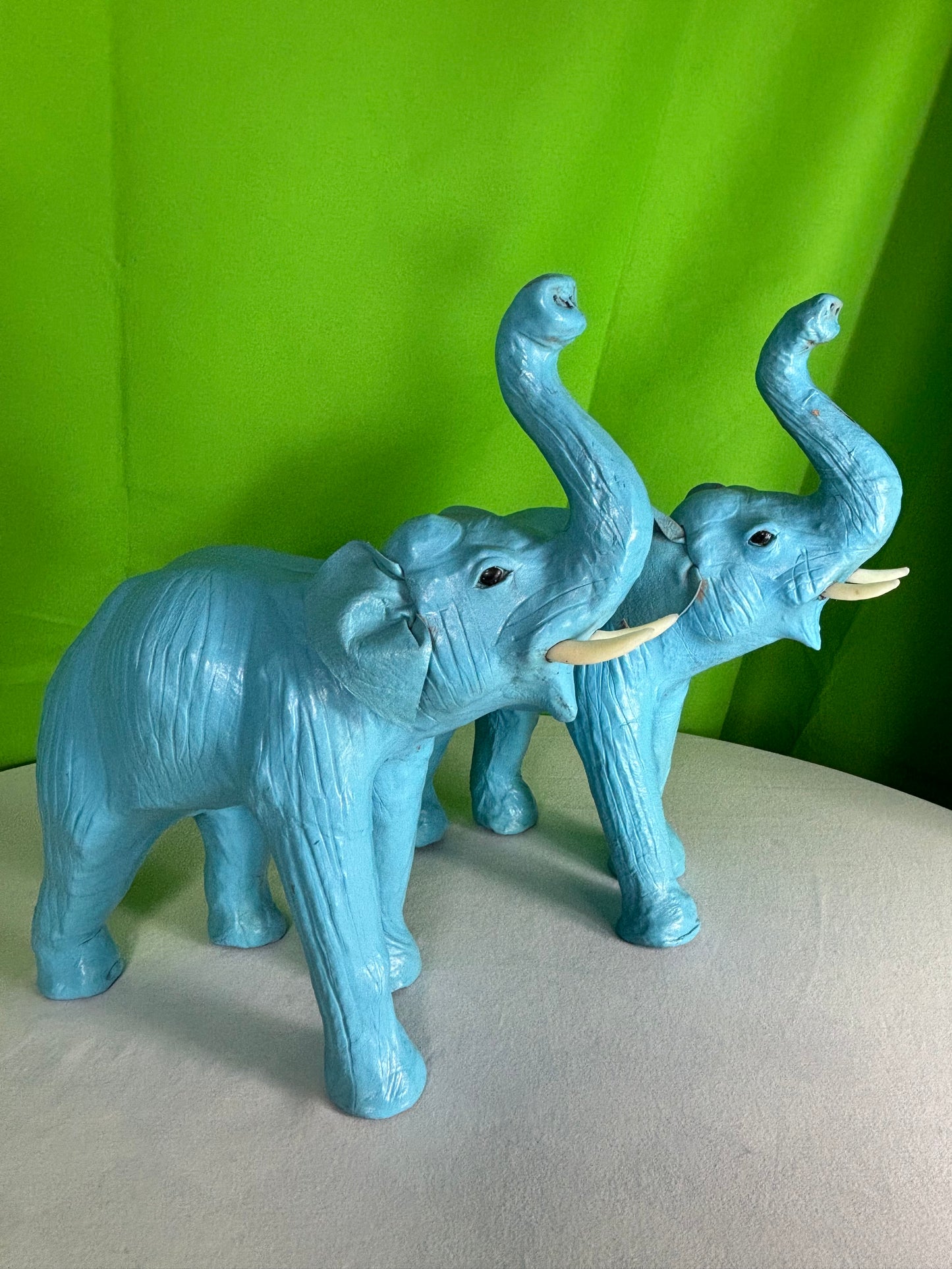 Bring charm and elegance to your décor with this beautiful pair of blue leather elephants—handcrafted, whimsical, and perfect as a striking accent or collectible display.