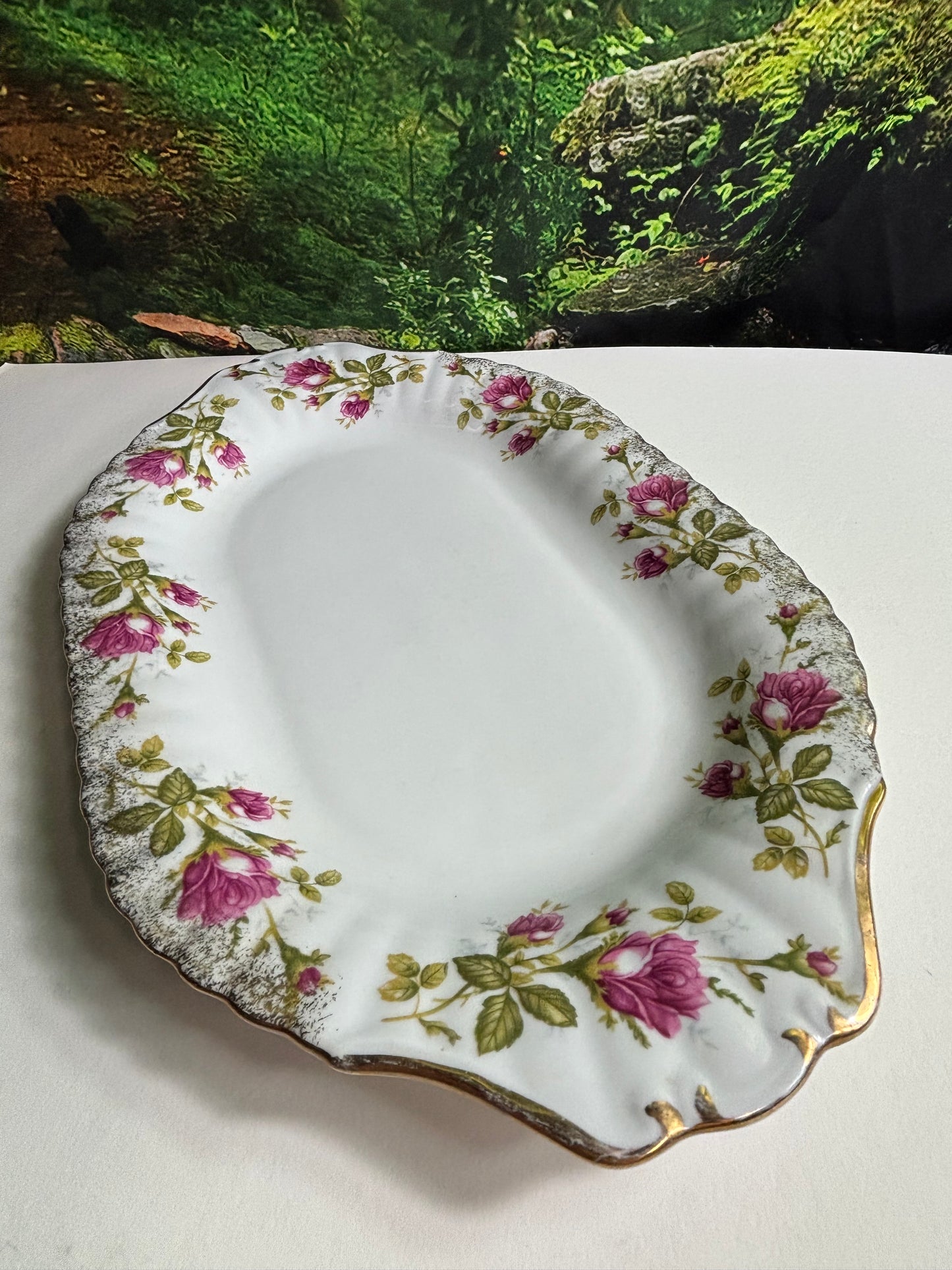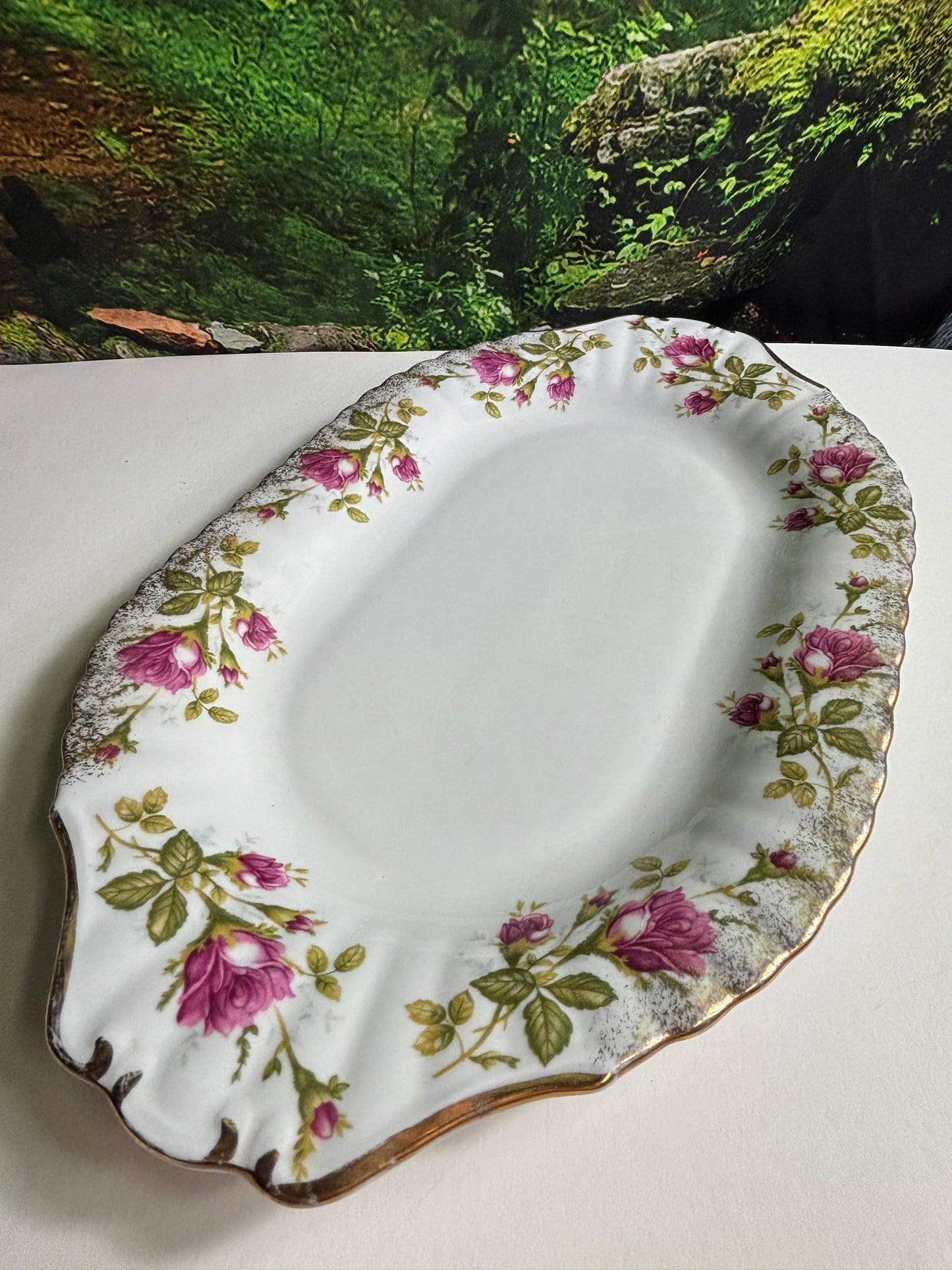 Chodziez Poland Ros Floral White And Gold Tone Serving Platter