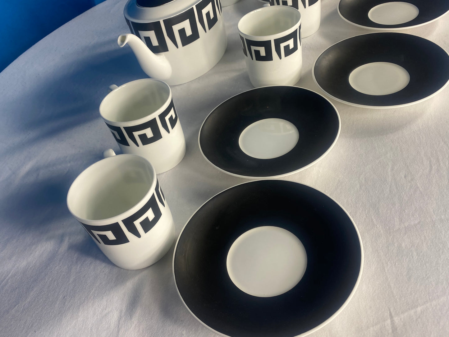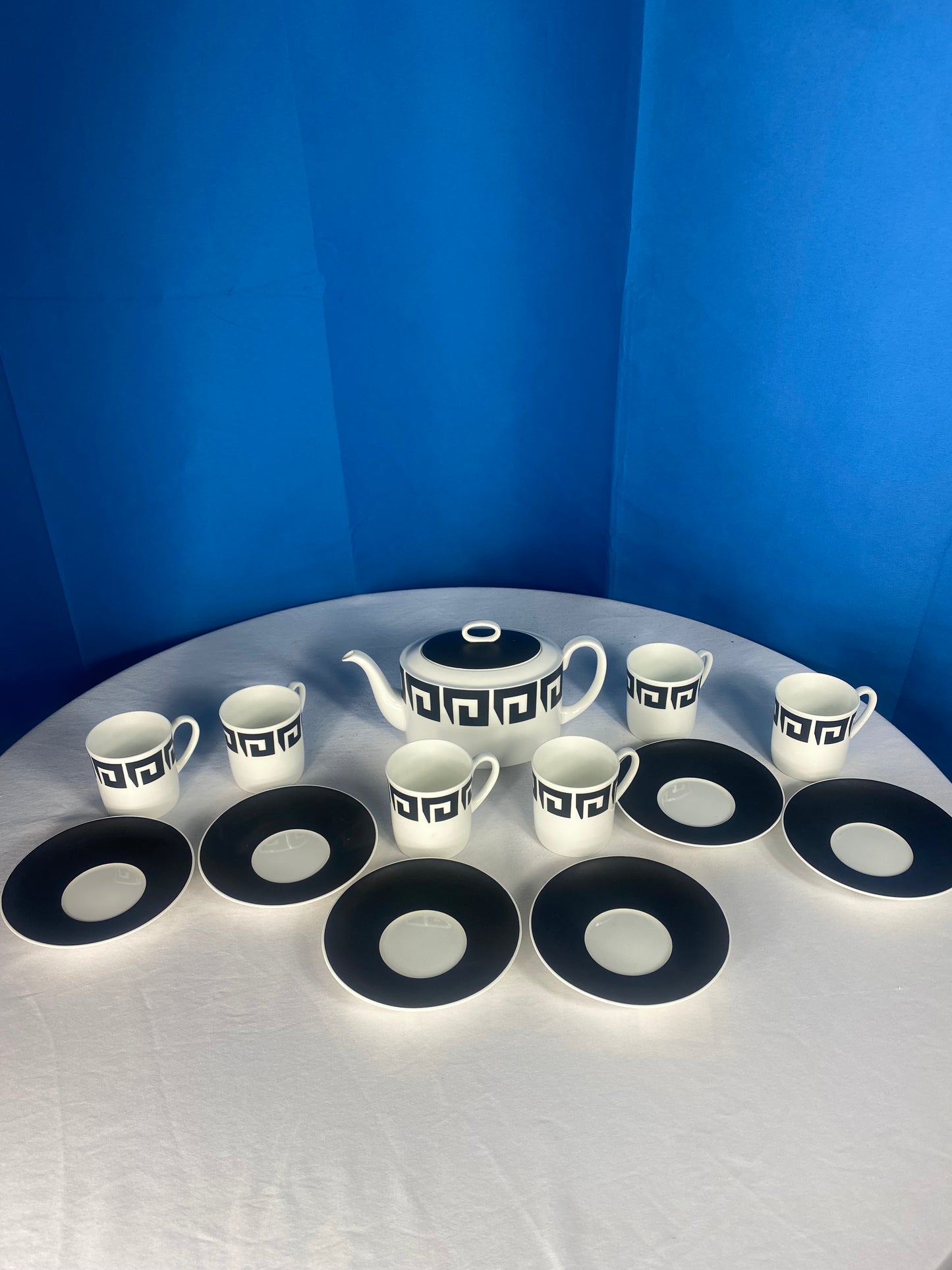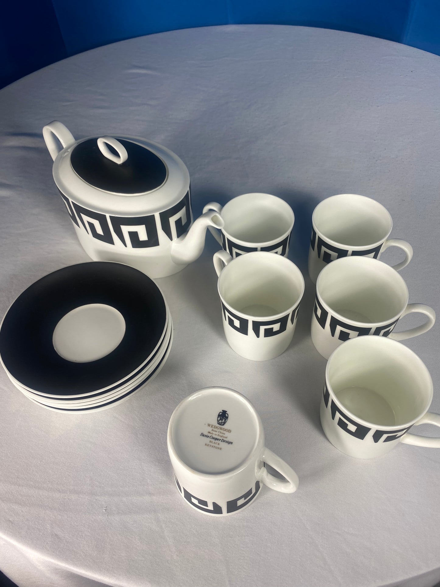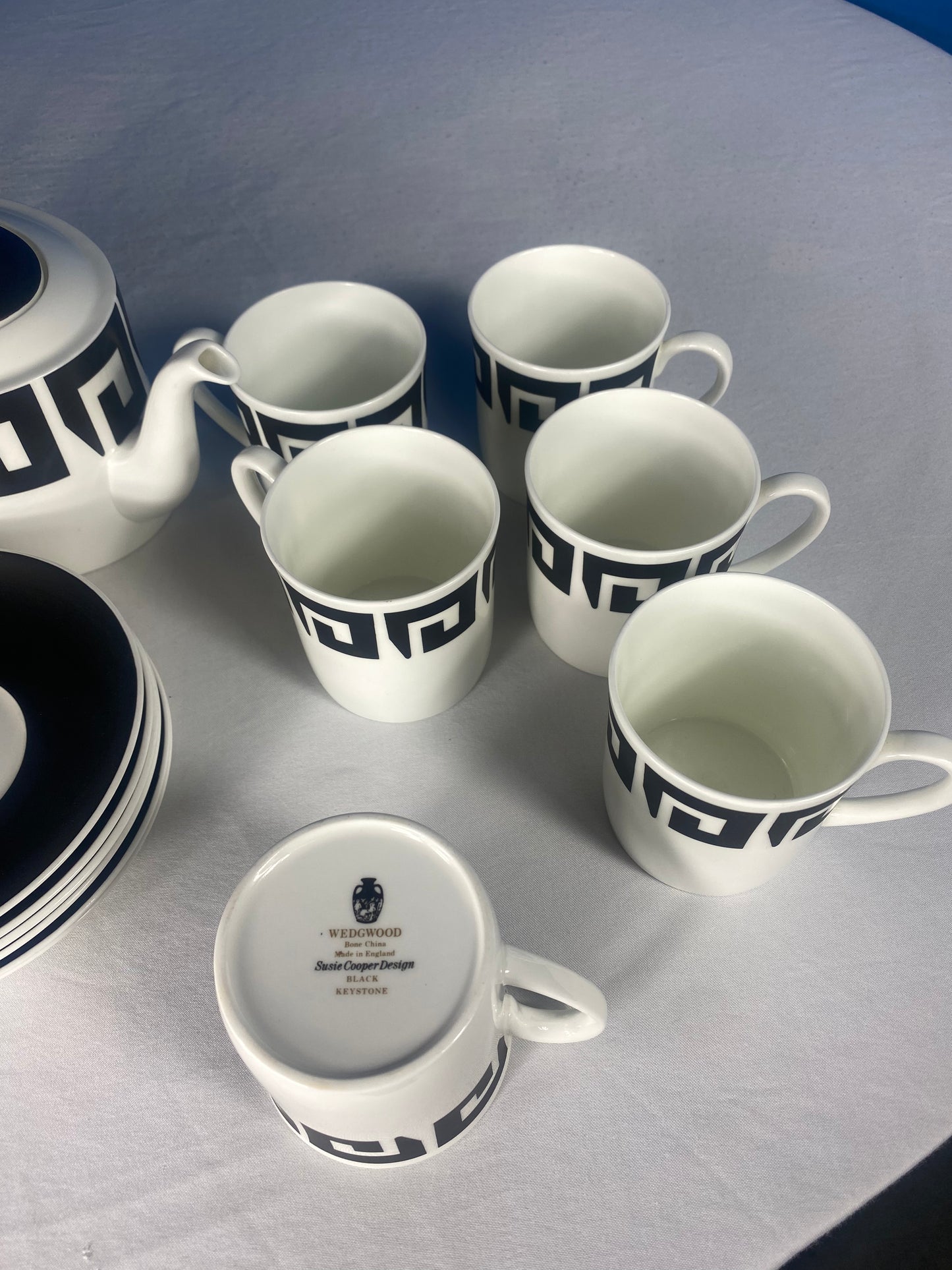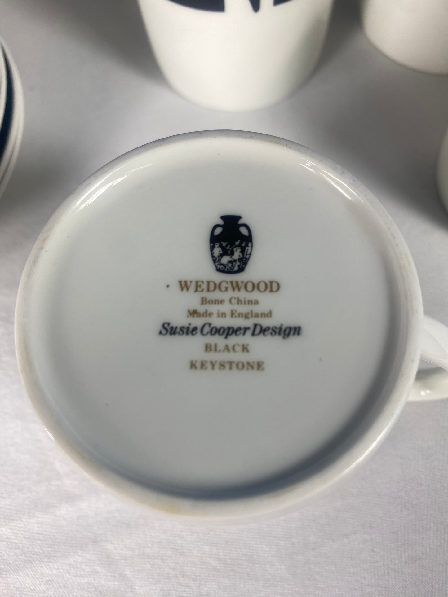 Coffee & Dessert Set Susie Cooper Design "Black Keystone" By Wedgewood Bone China Made In England