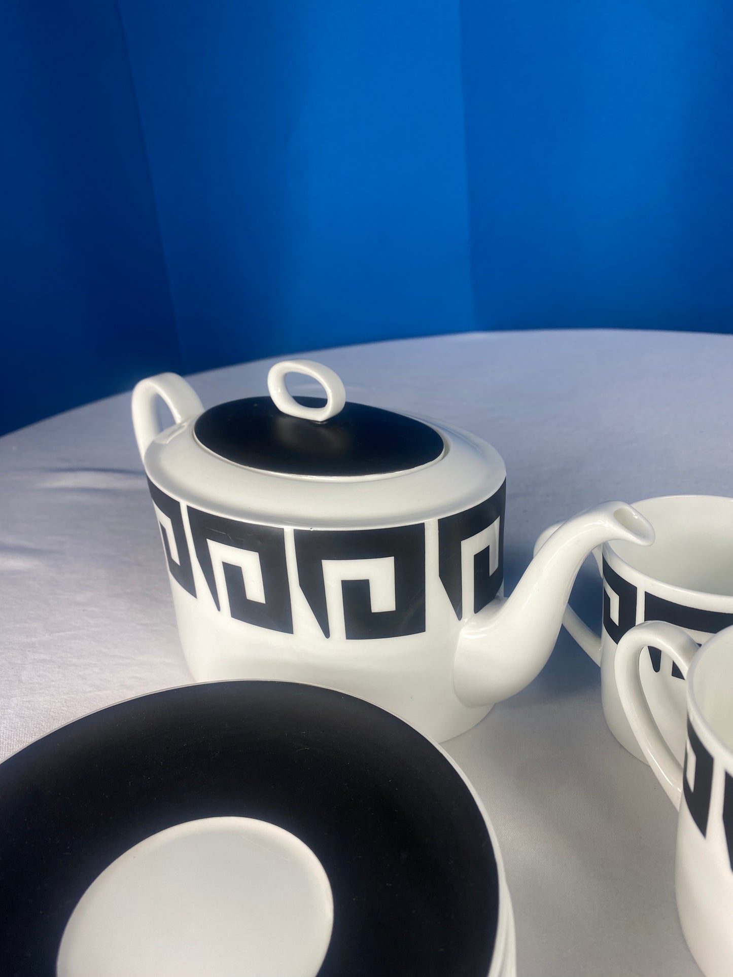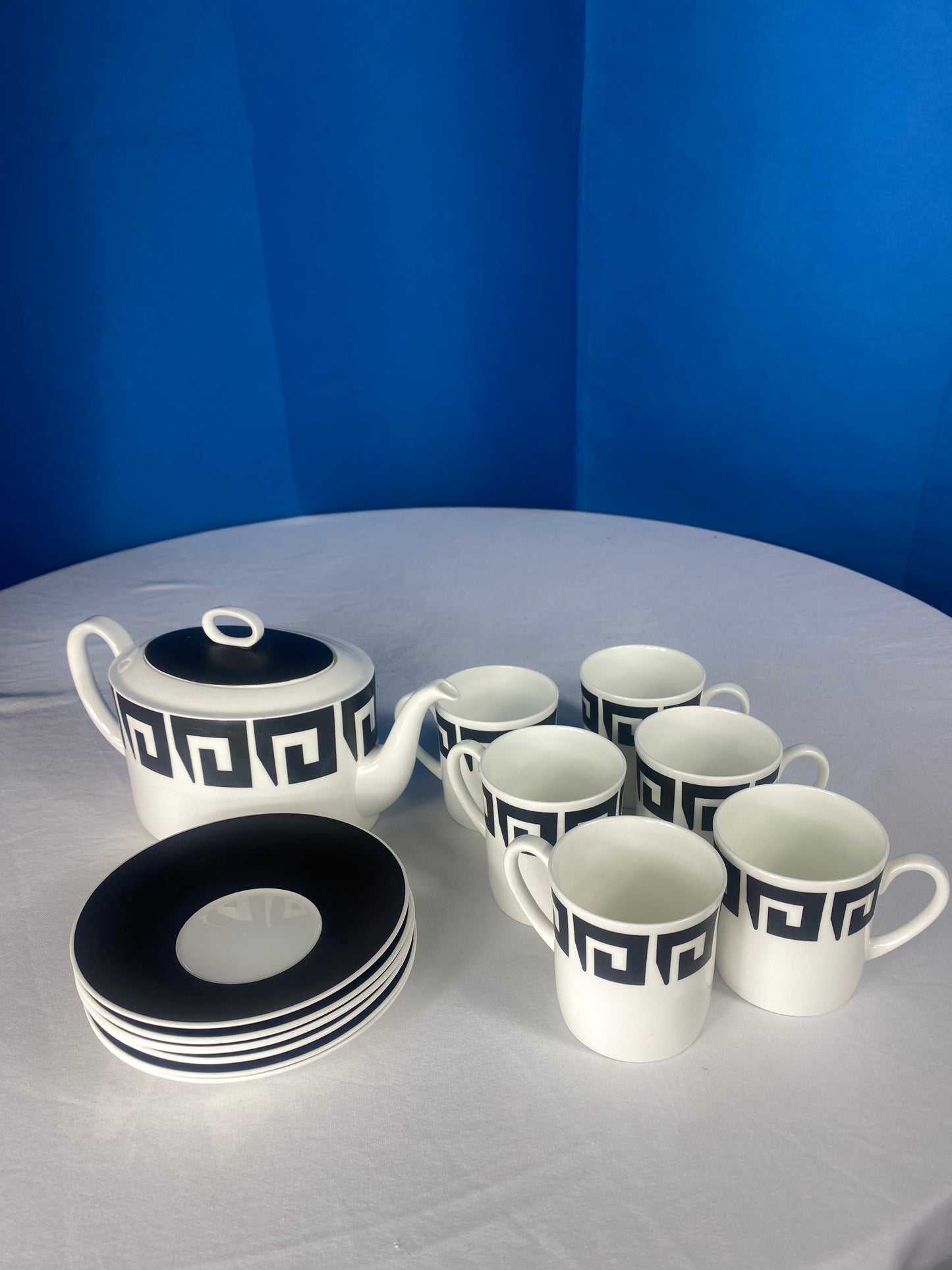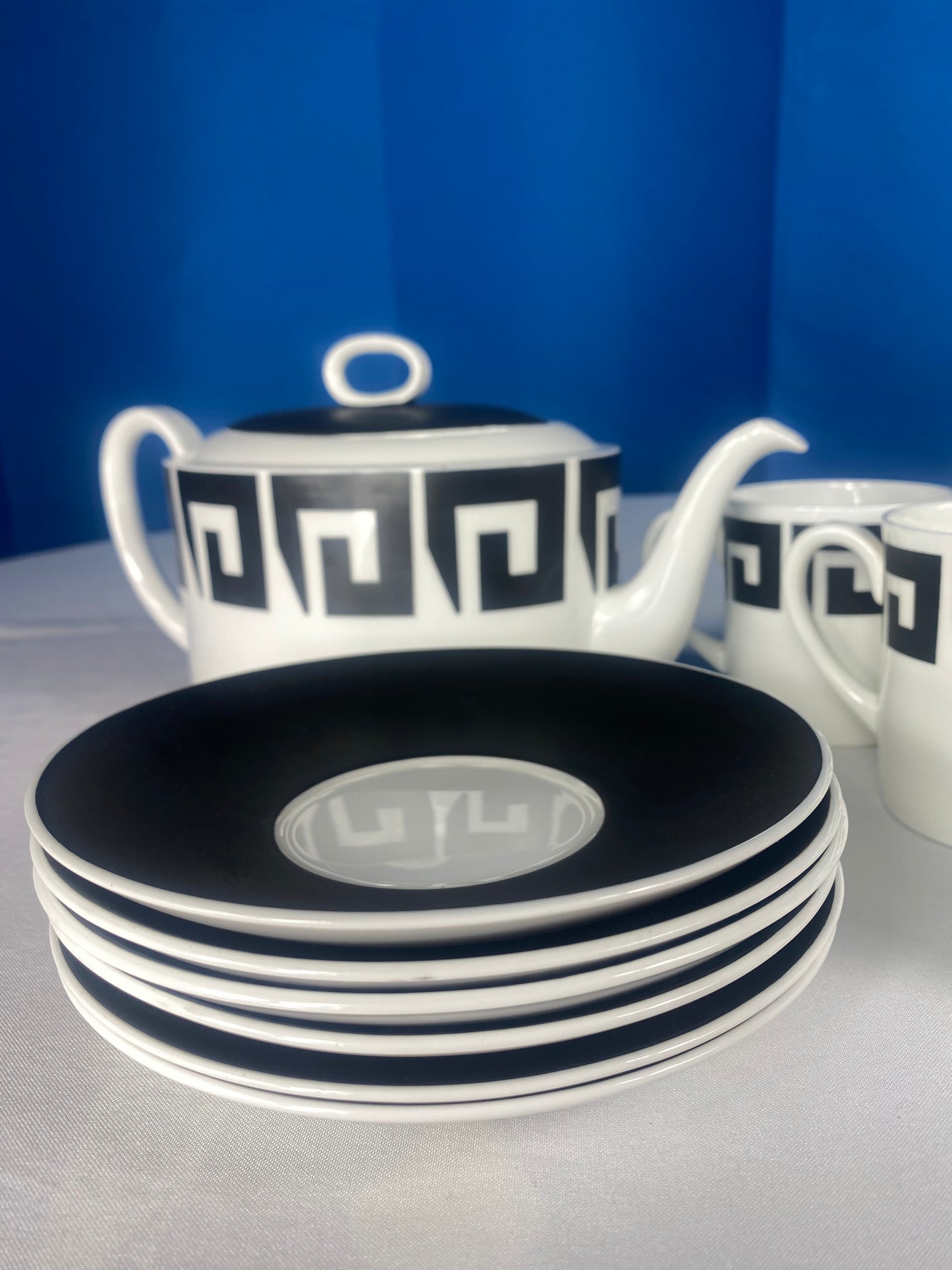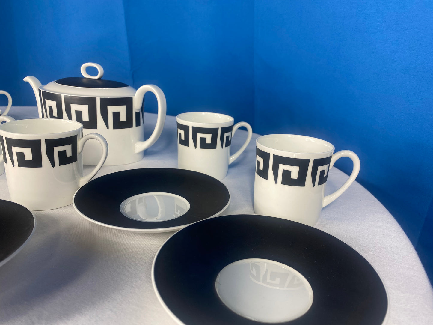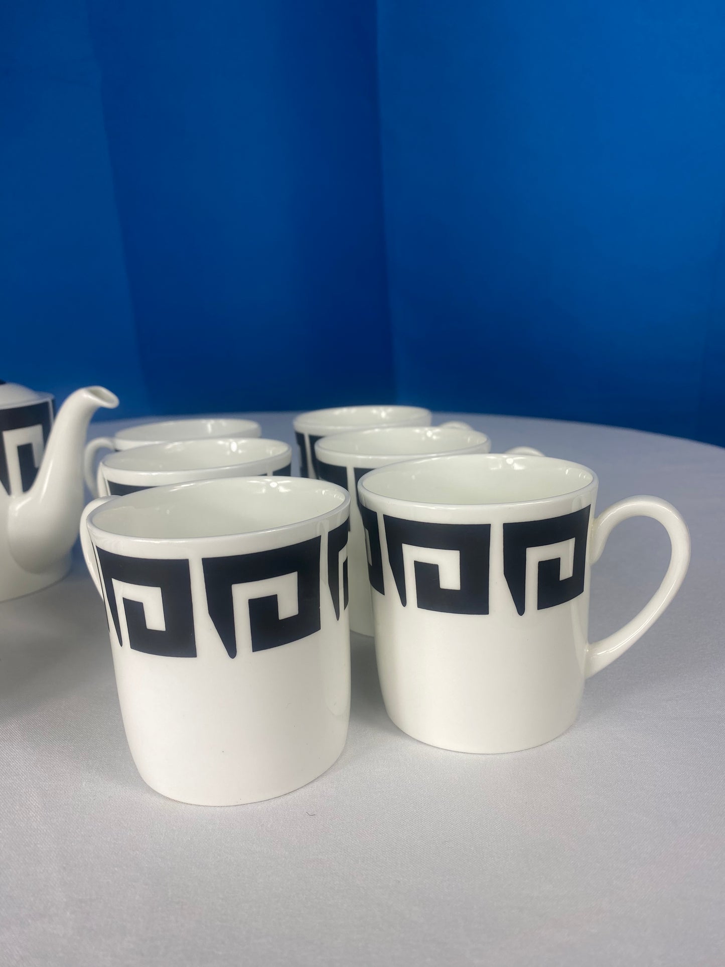 Coffee & Dessert Set Susie Cooper Design "Black Keystone" By Wedgewood Bone China Made In England