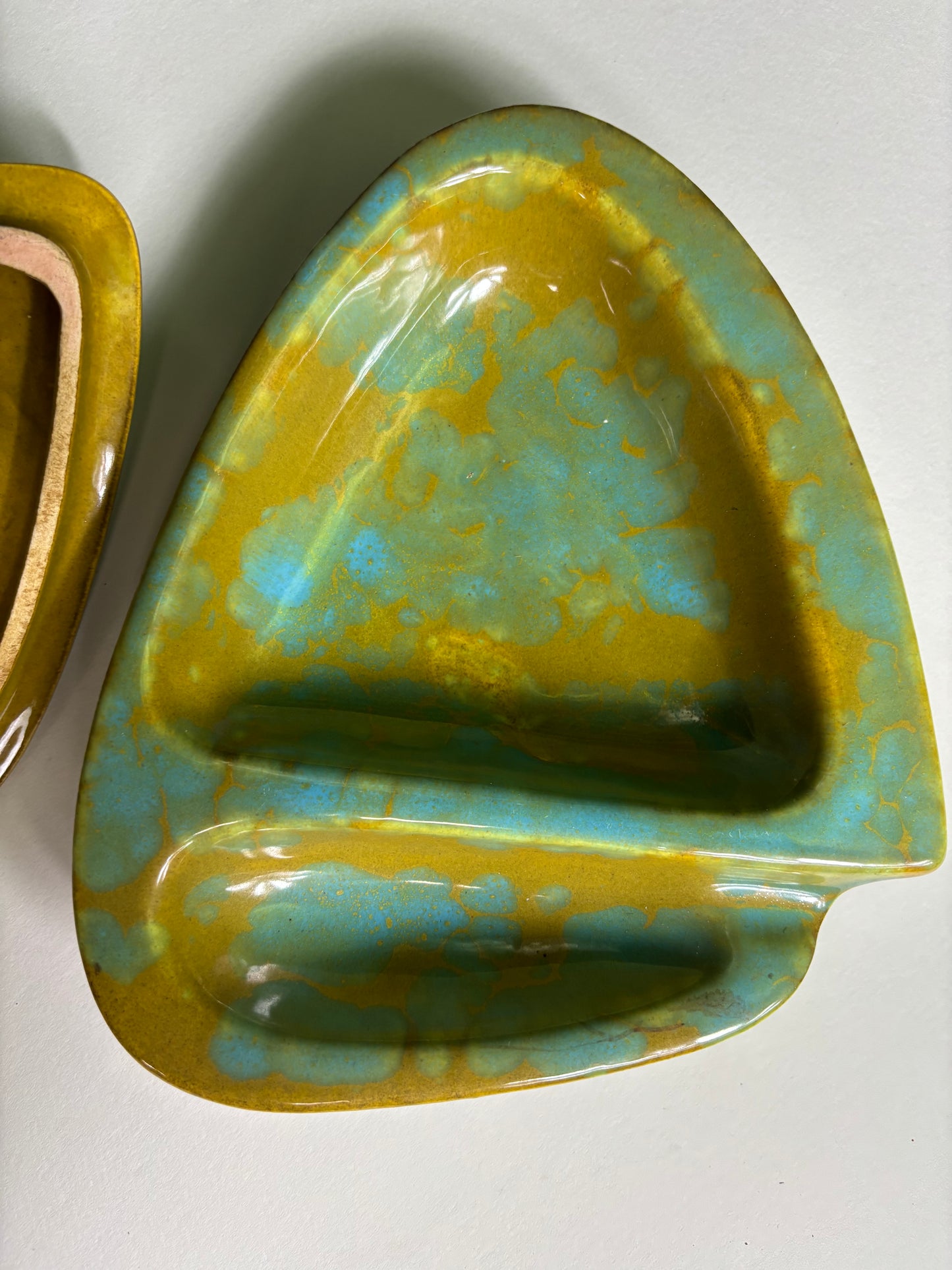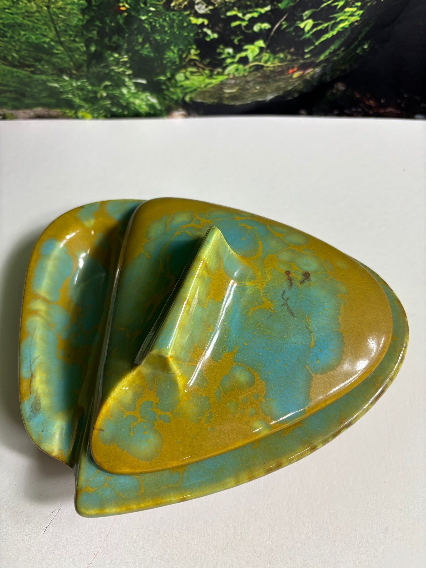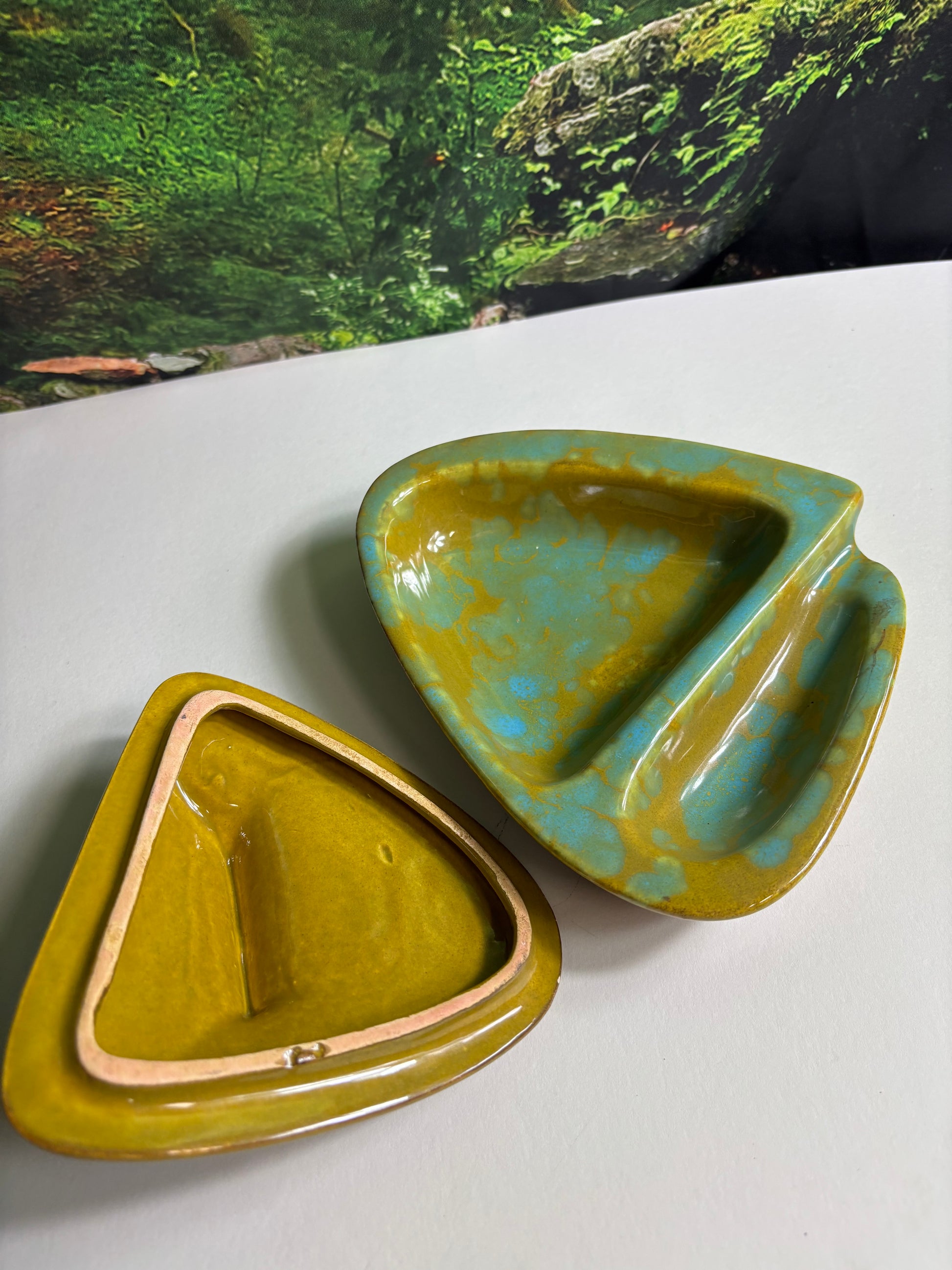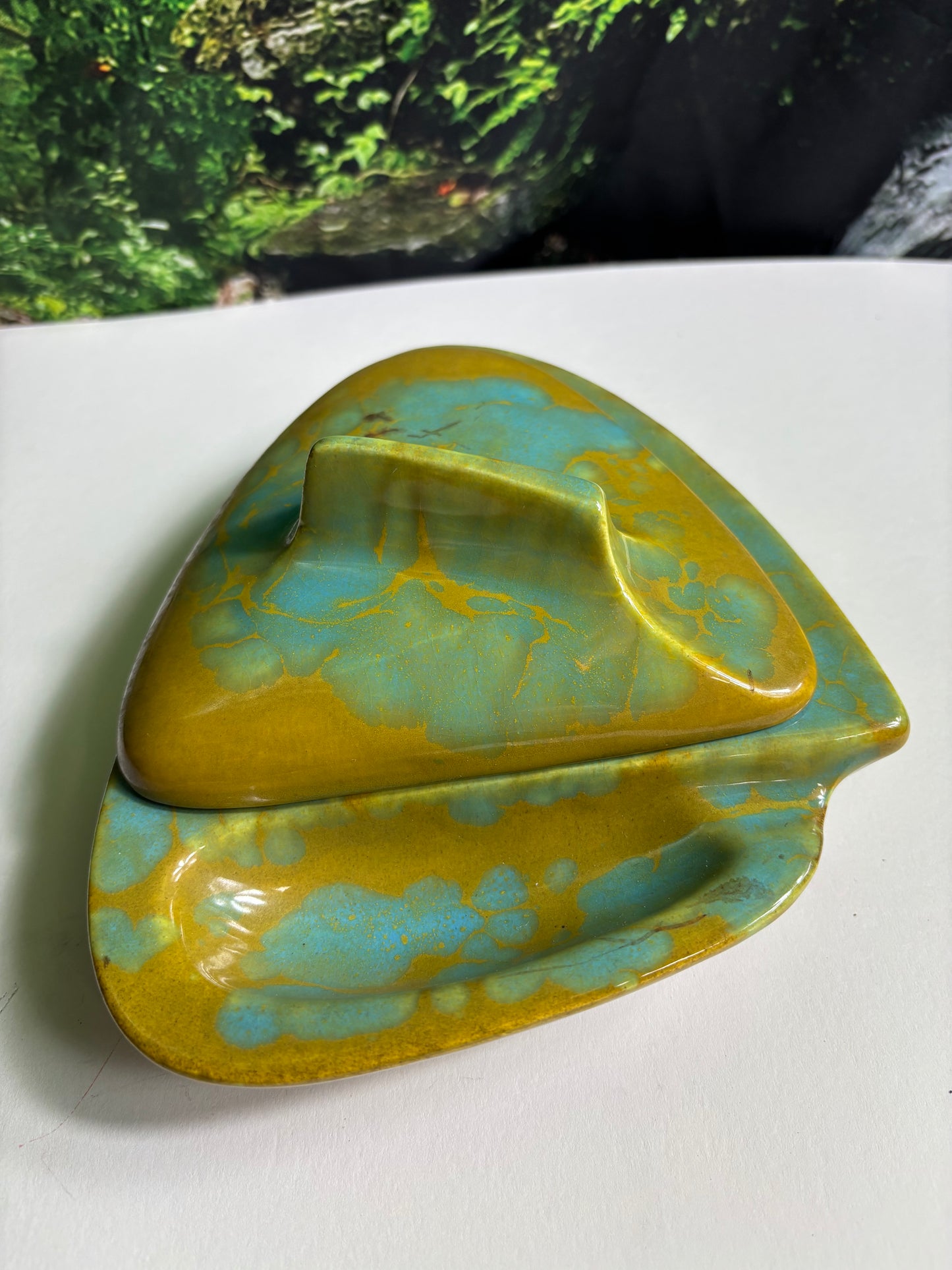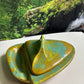 Fabulous Enchanto Pottery California Mid-century Vintage Avocado Green & Teal Ashtray