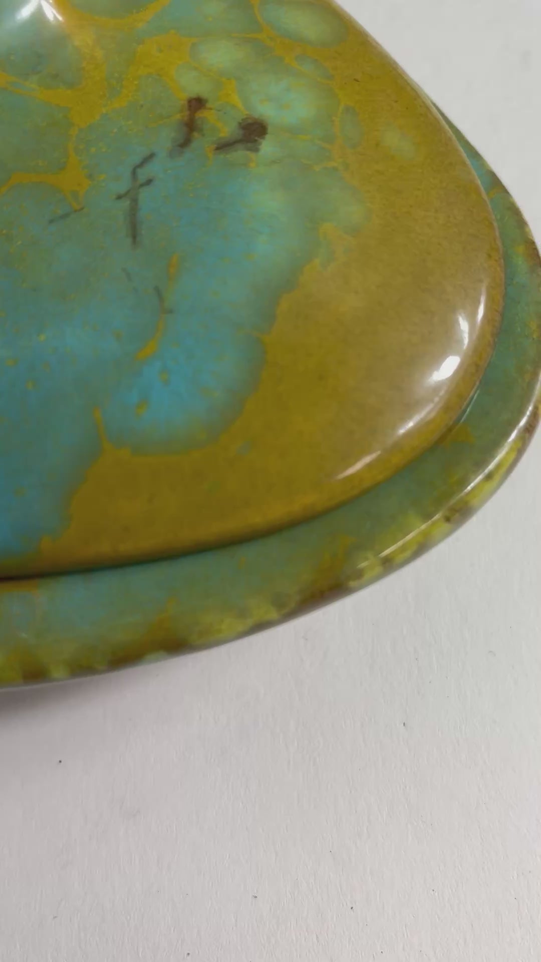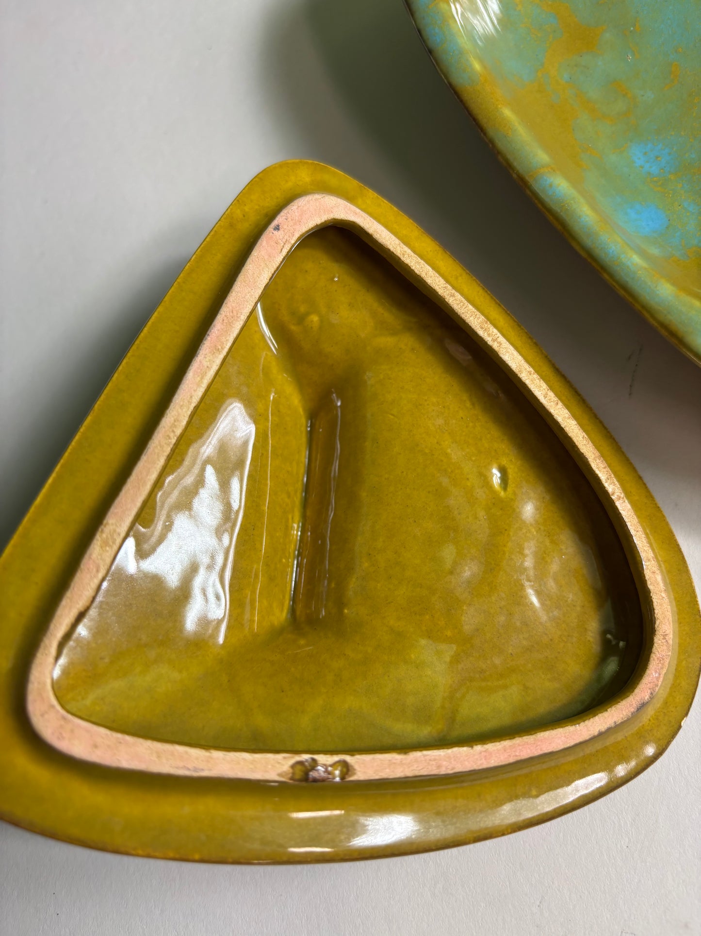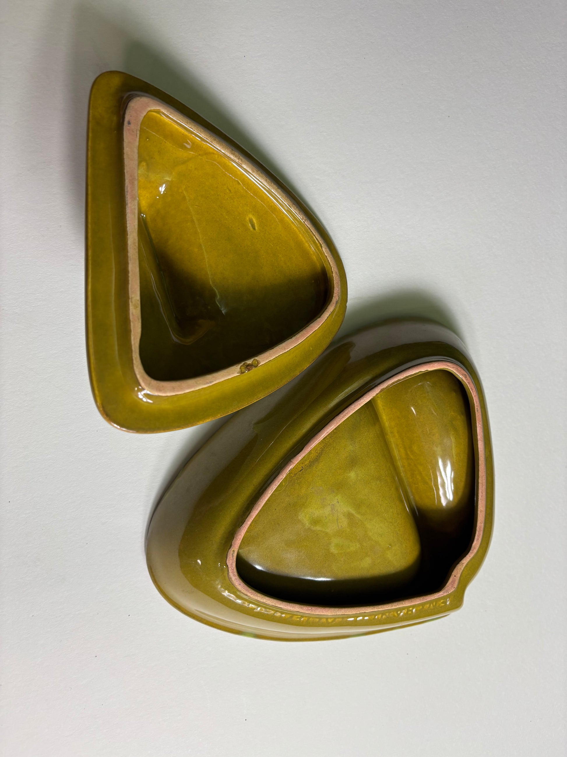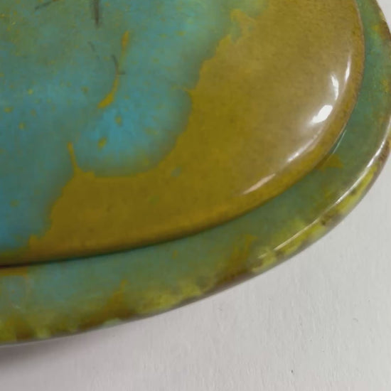 Fabulous Enchanto Pottery California Mid-century Vintage Avocado Green & Teal Ashtray