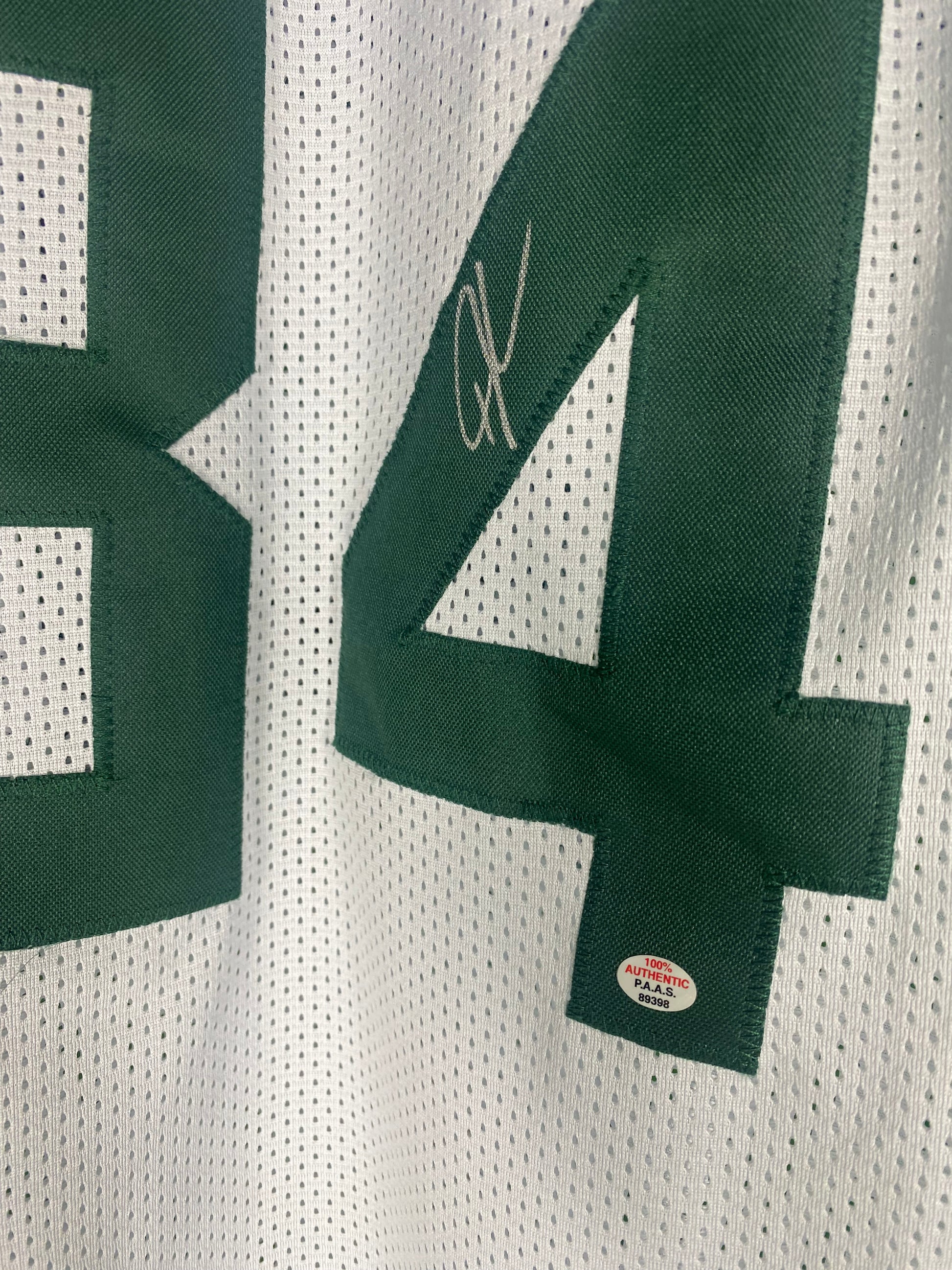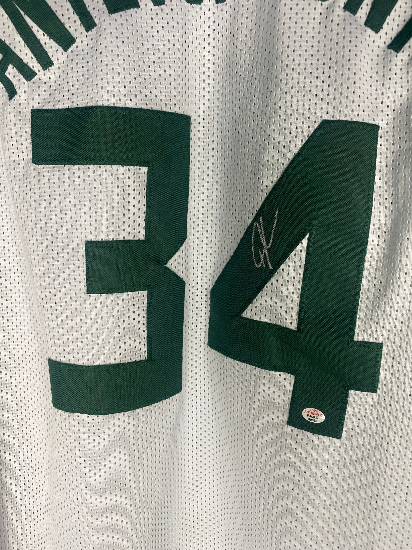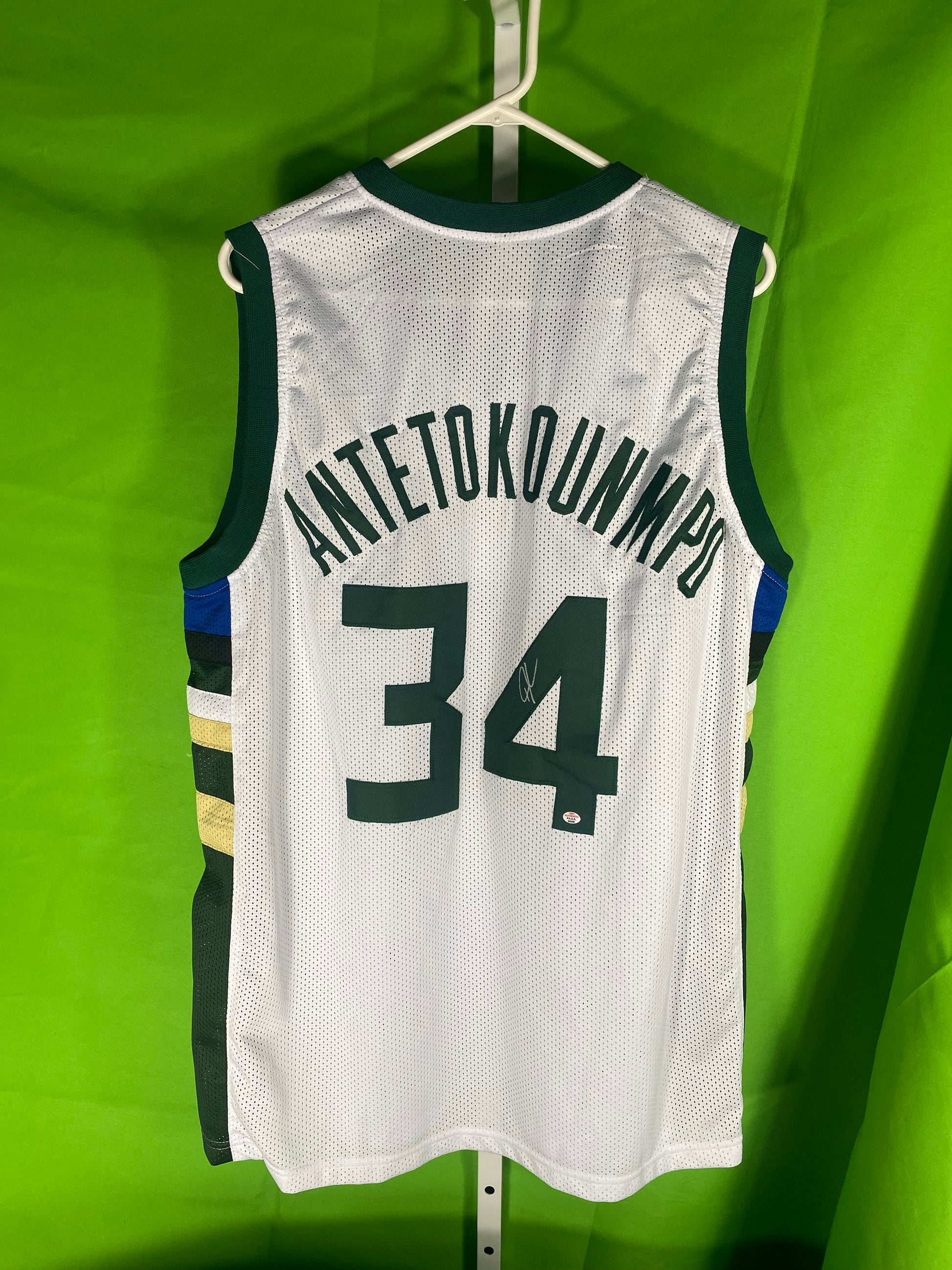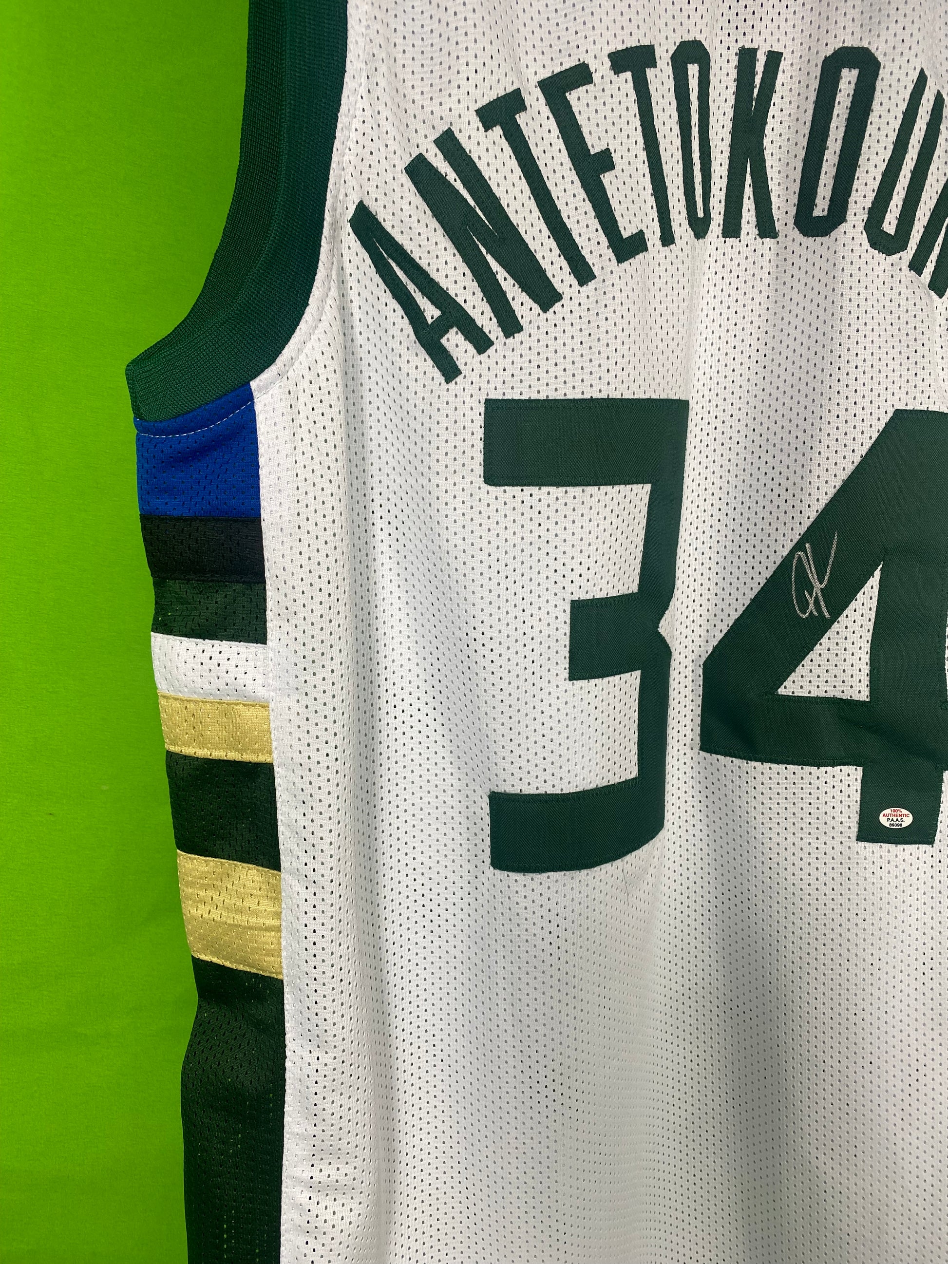 Authentic Giannis Antetokounmpo Milwaukee Bucks signed jersey. The jersey is an original, with authentication from PAAS, ensuring that the autograph is genuine.