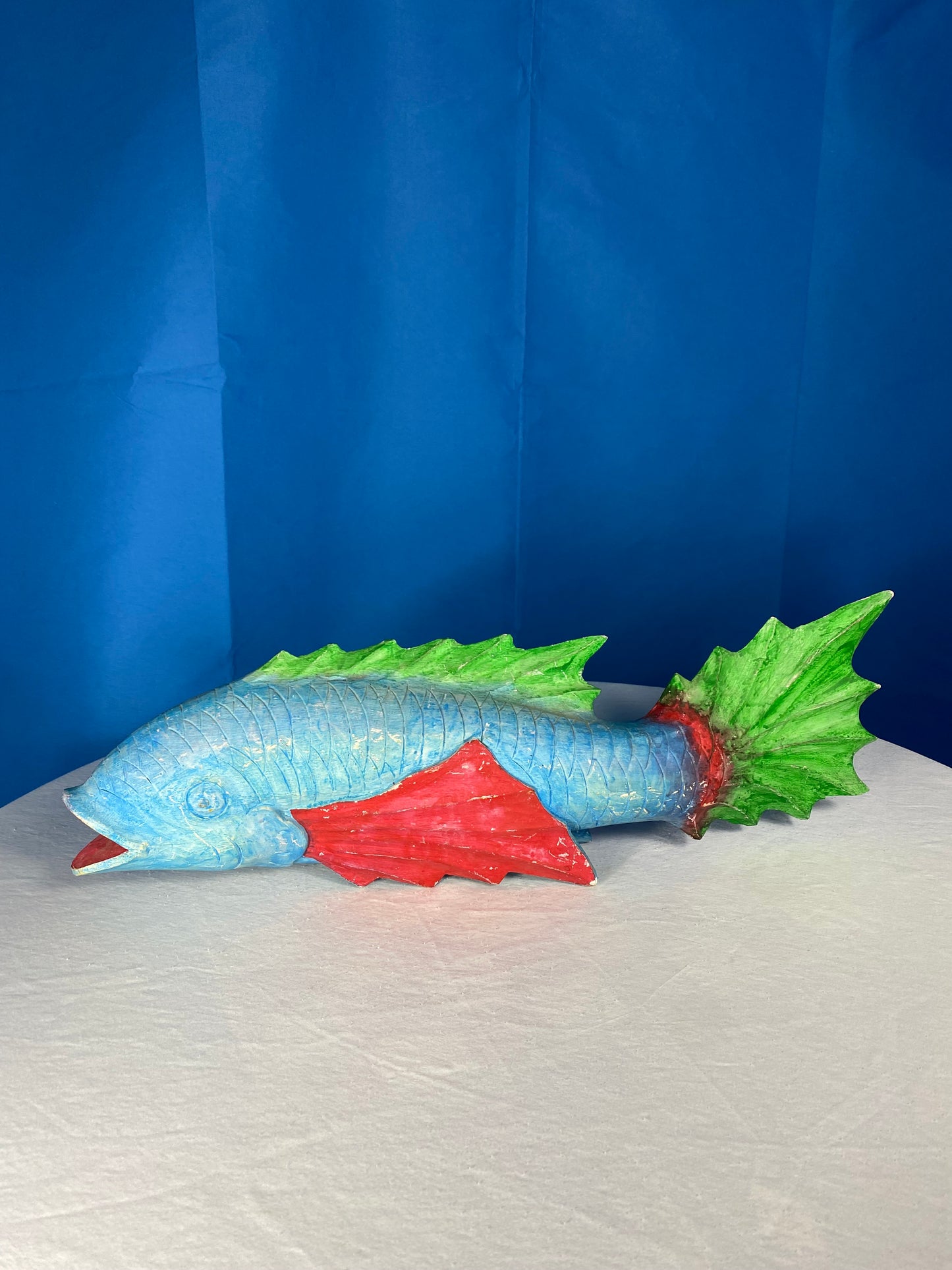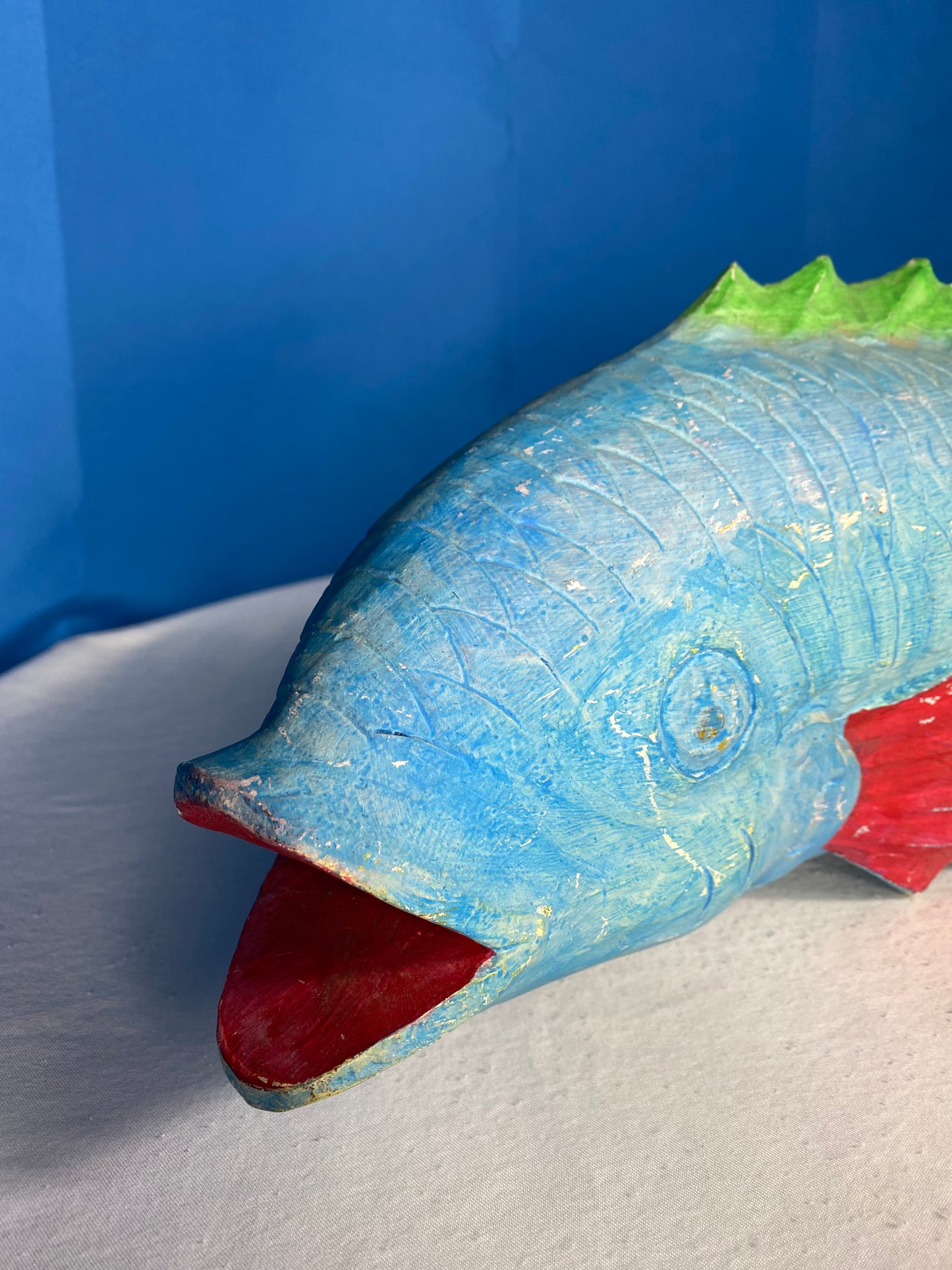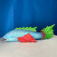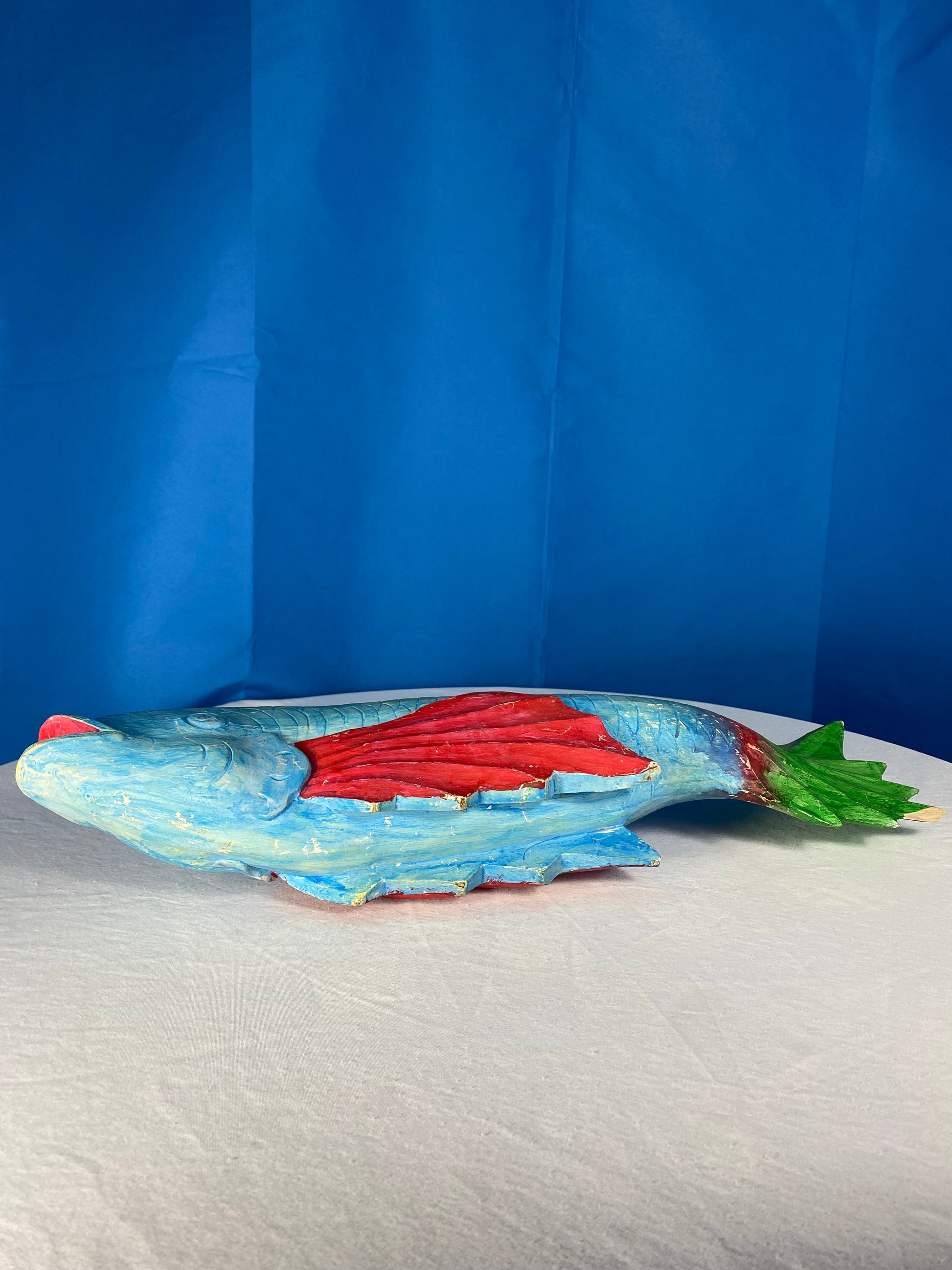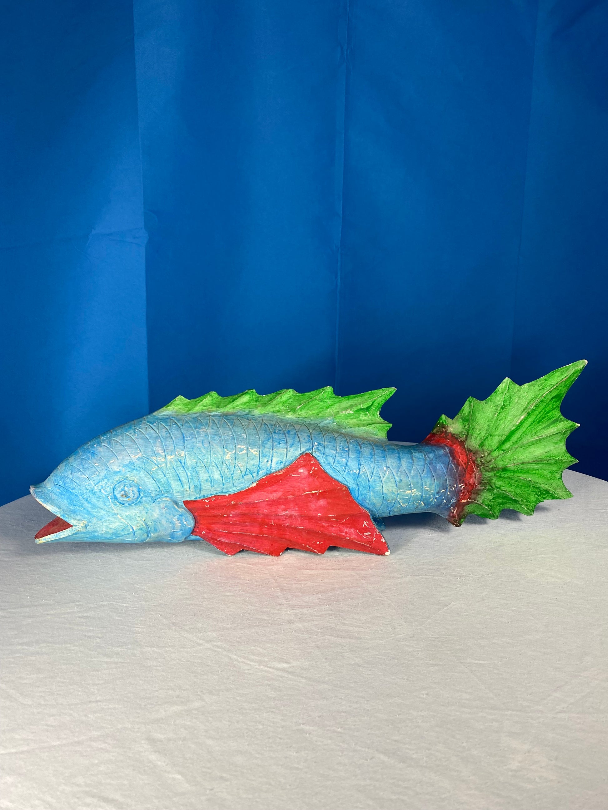 Large Colorful Hand Carved Wood Blue, Green, and Red Fish
