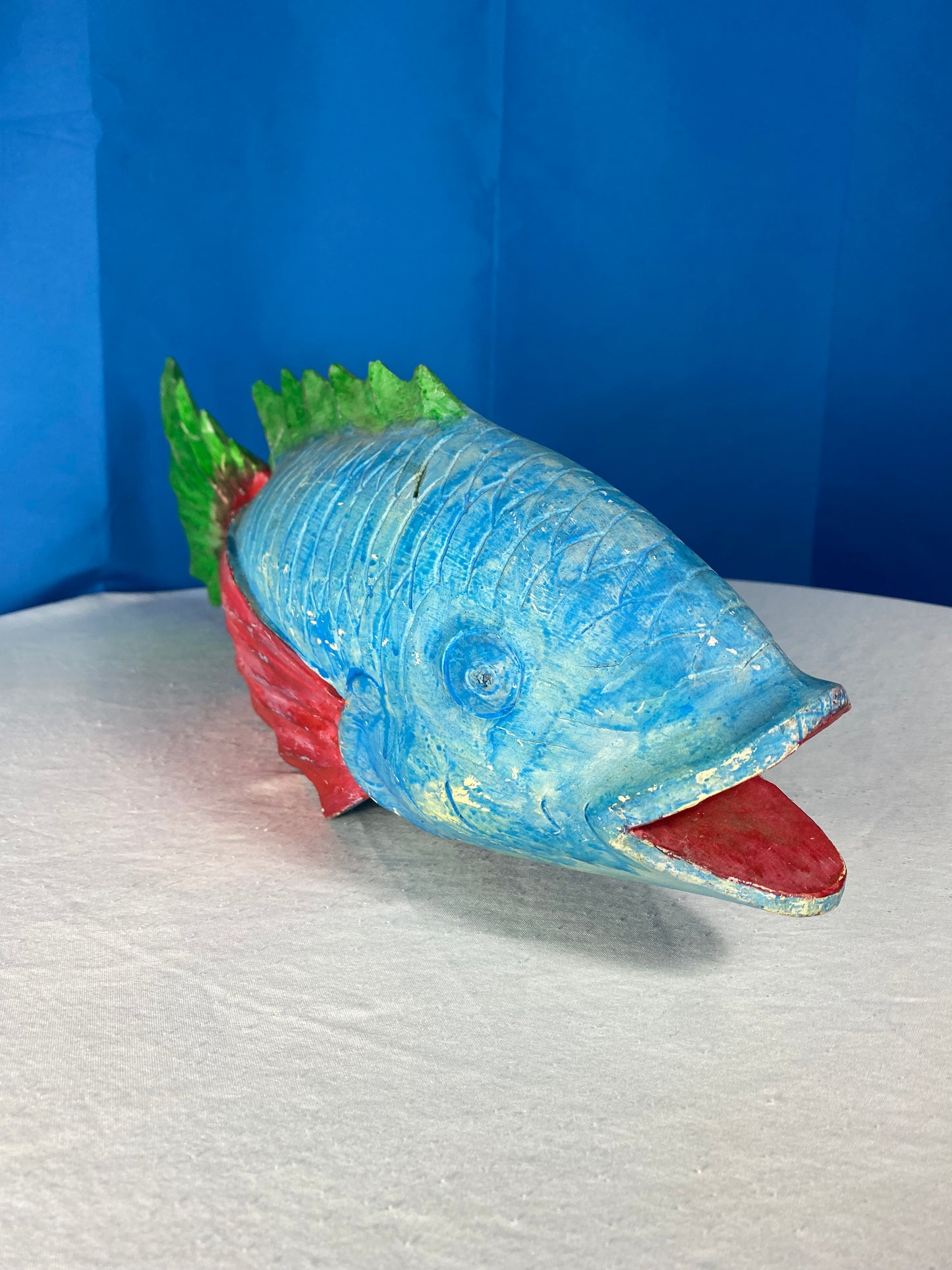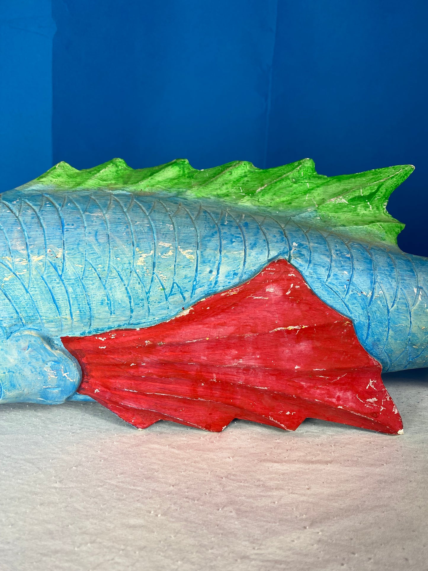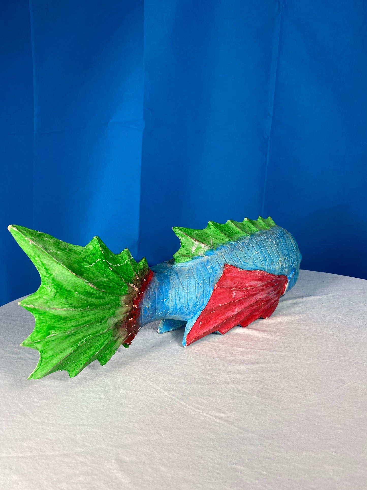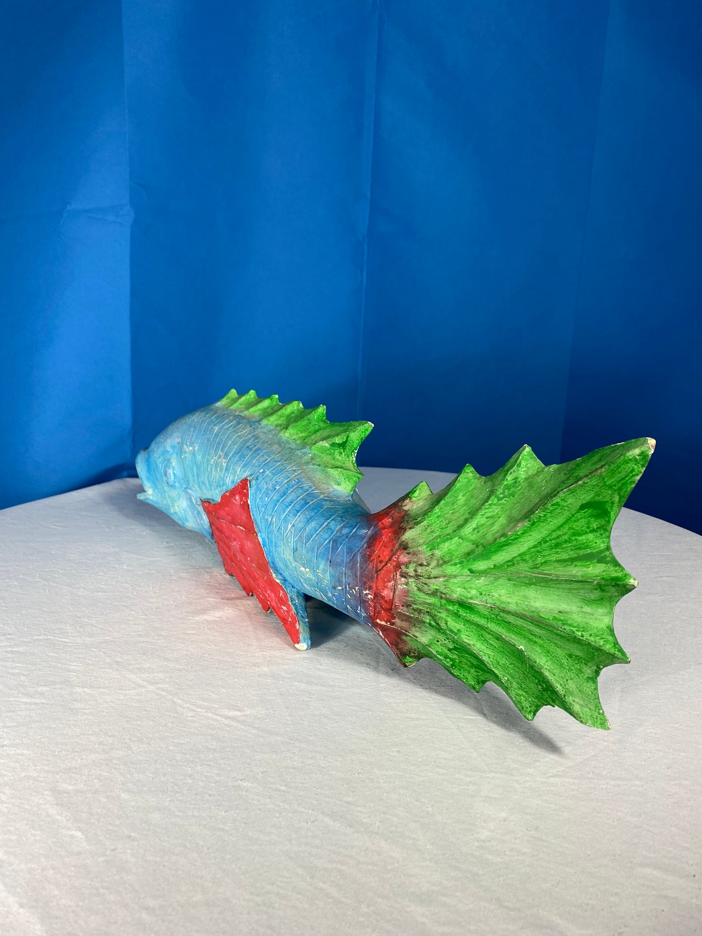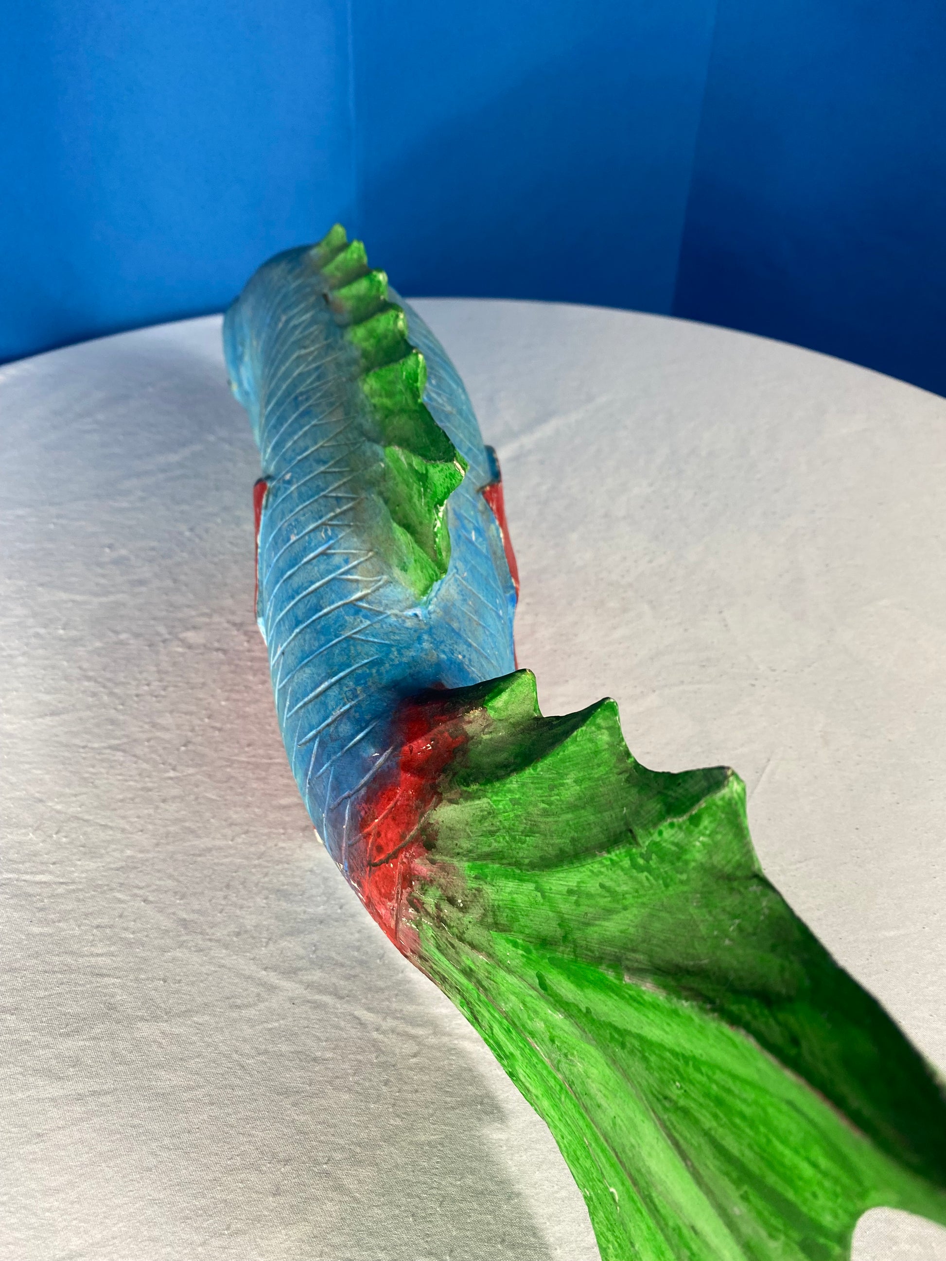 Large Colorful Hand Carved Wood Blue, Green, and Red Fish