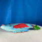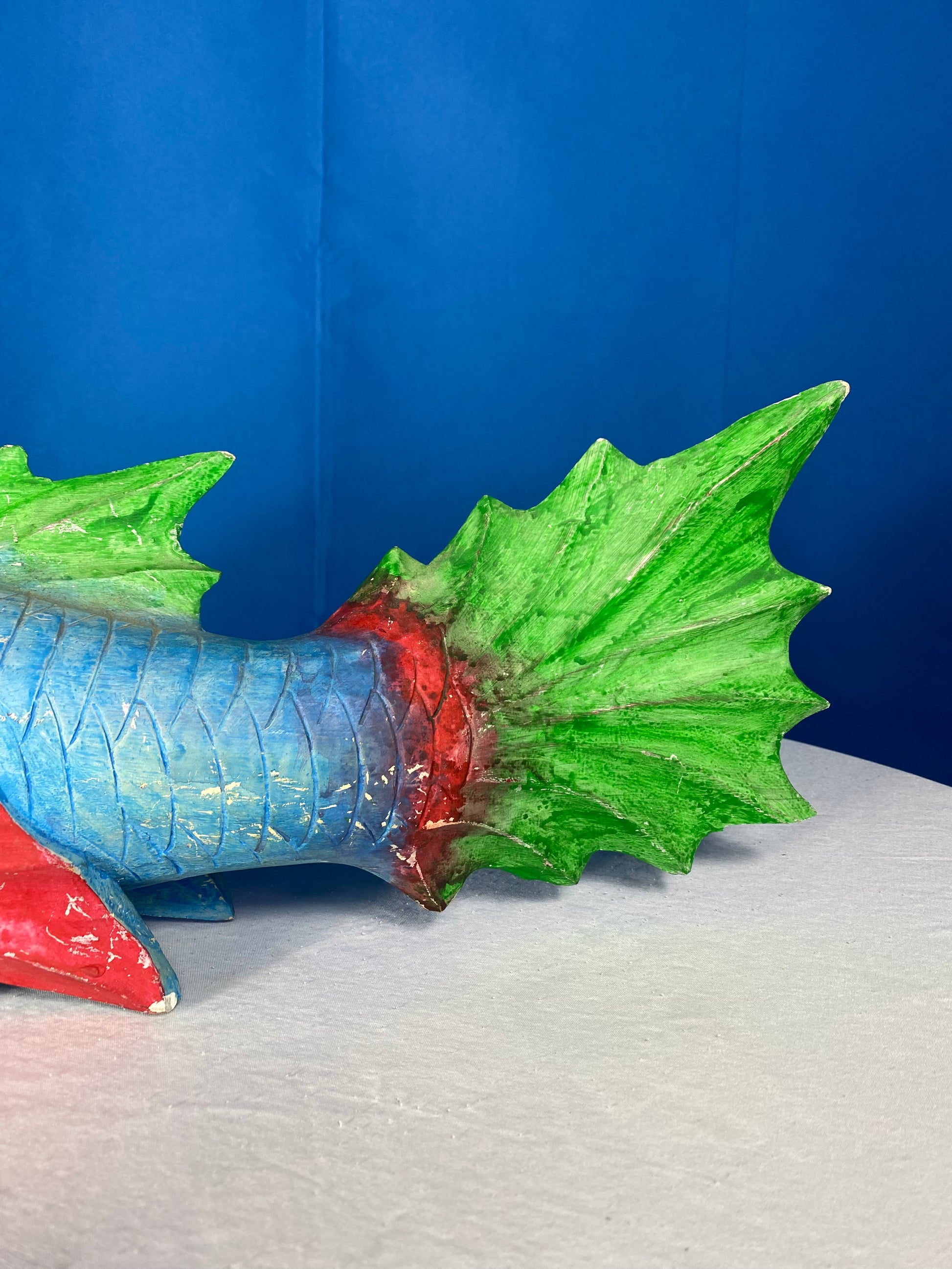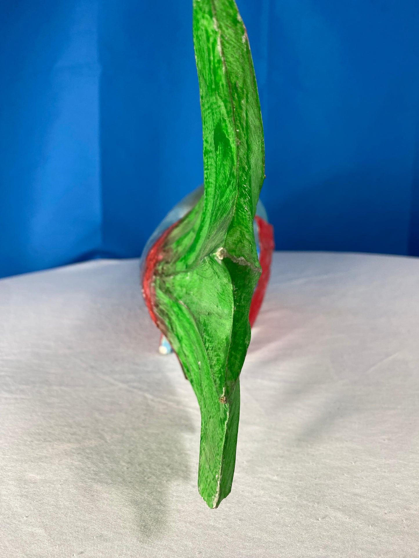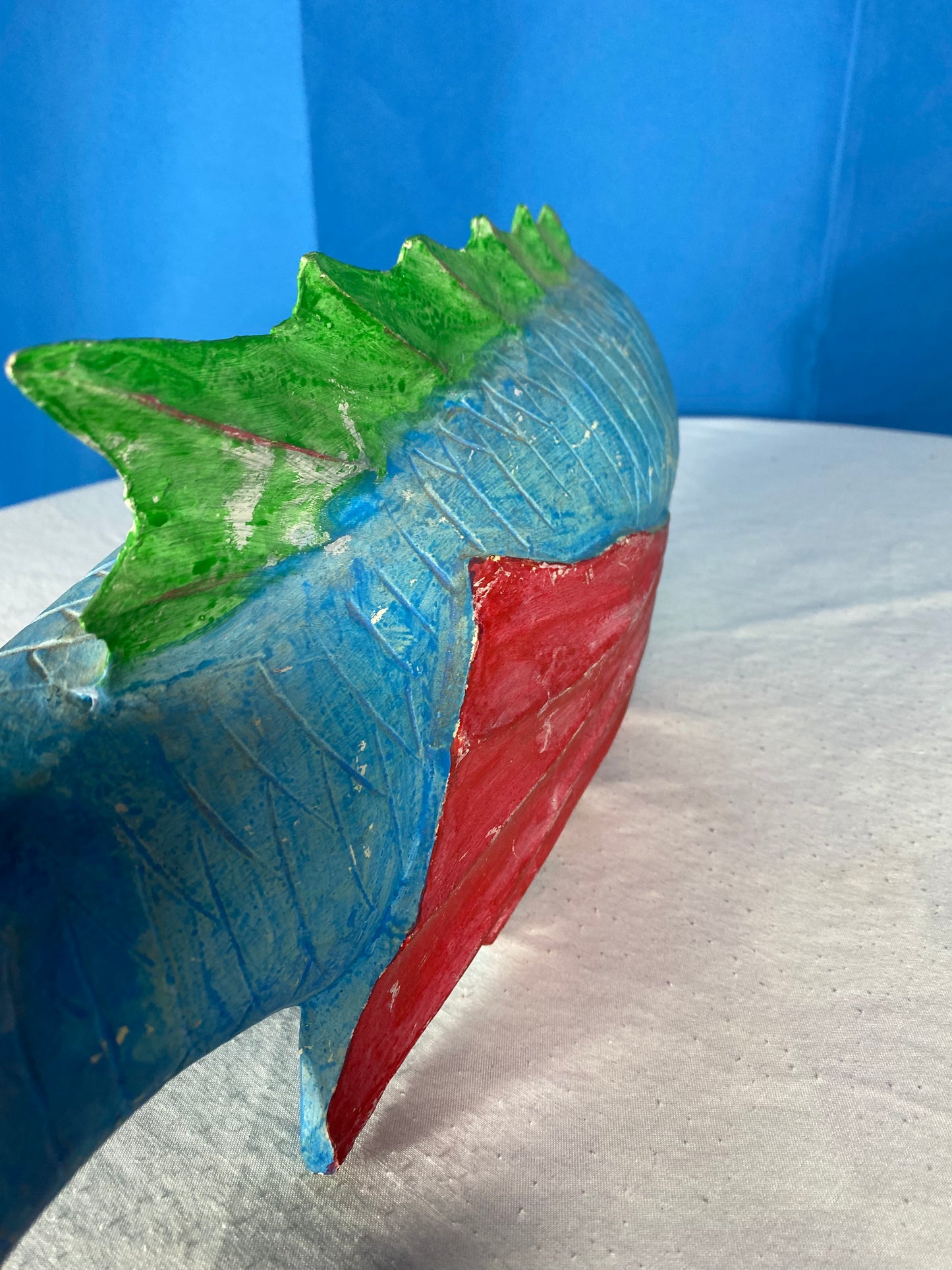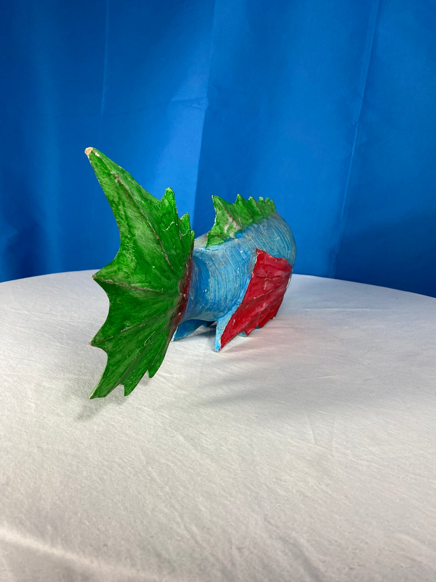 Large Colorful Hand Carved Wood Blue, Green, and Red Fish