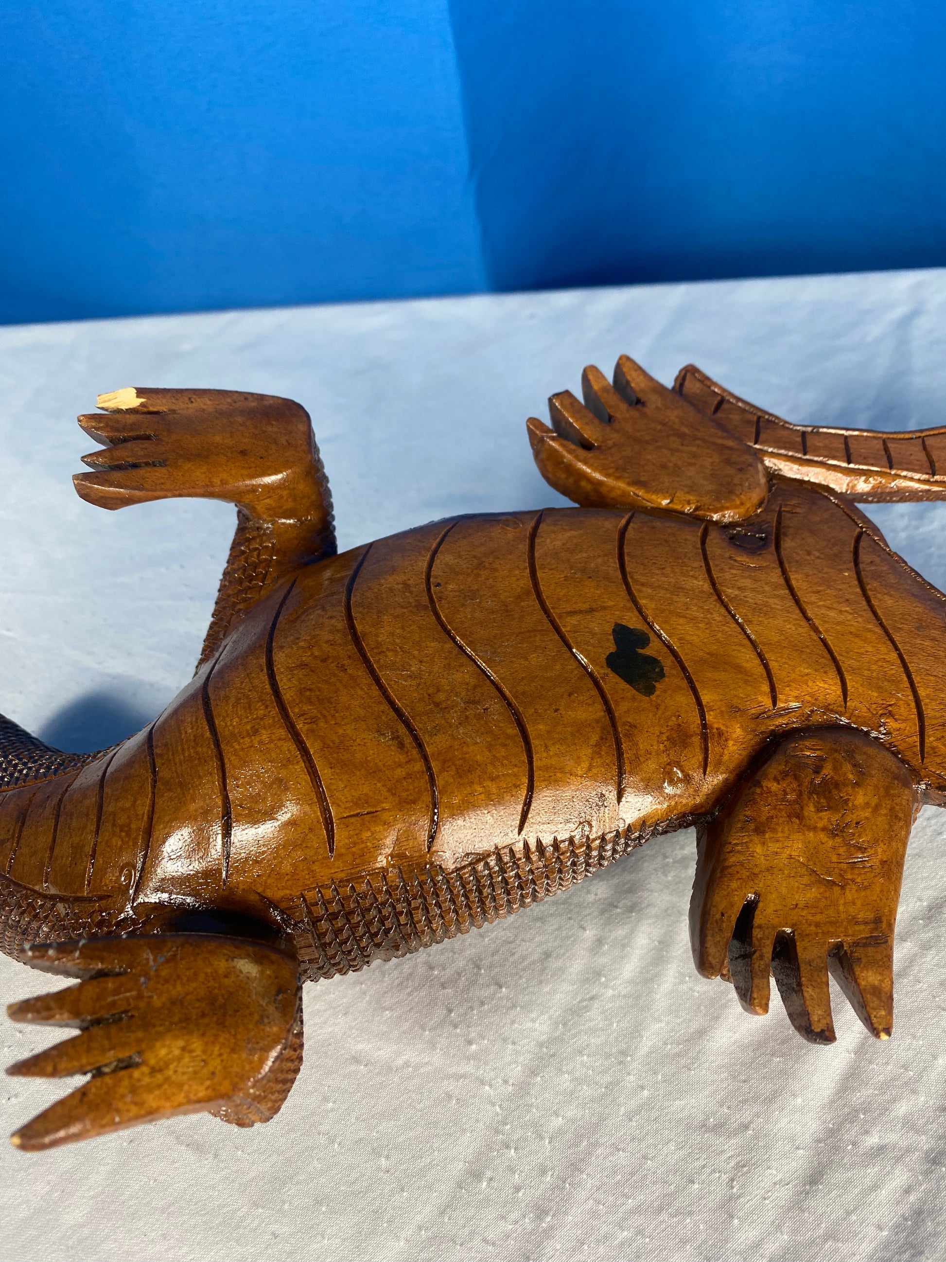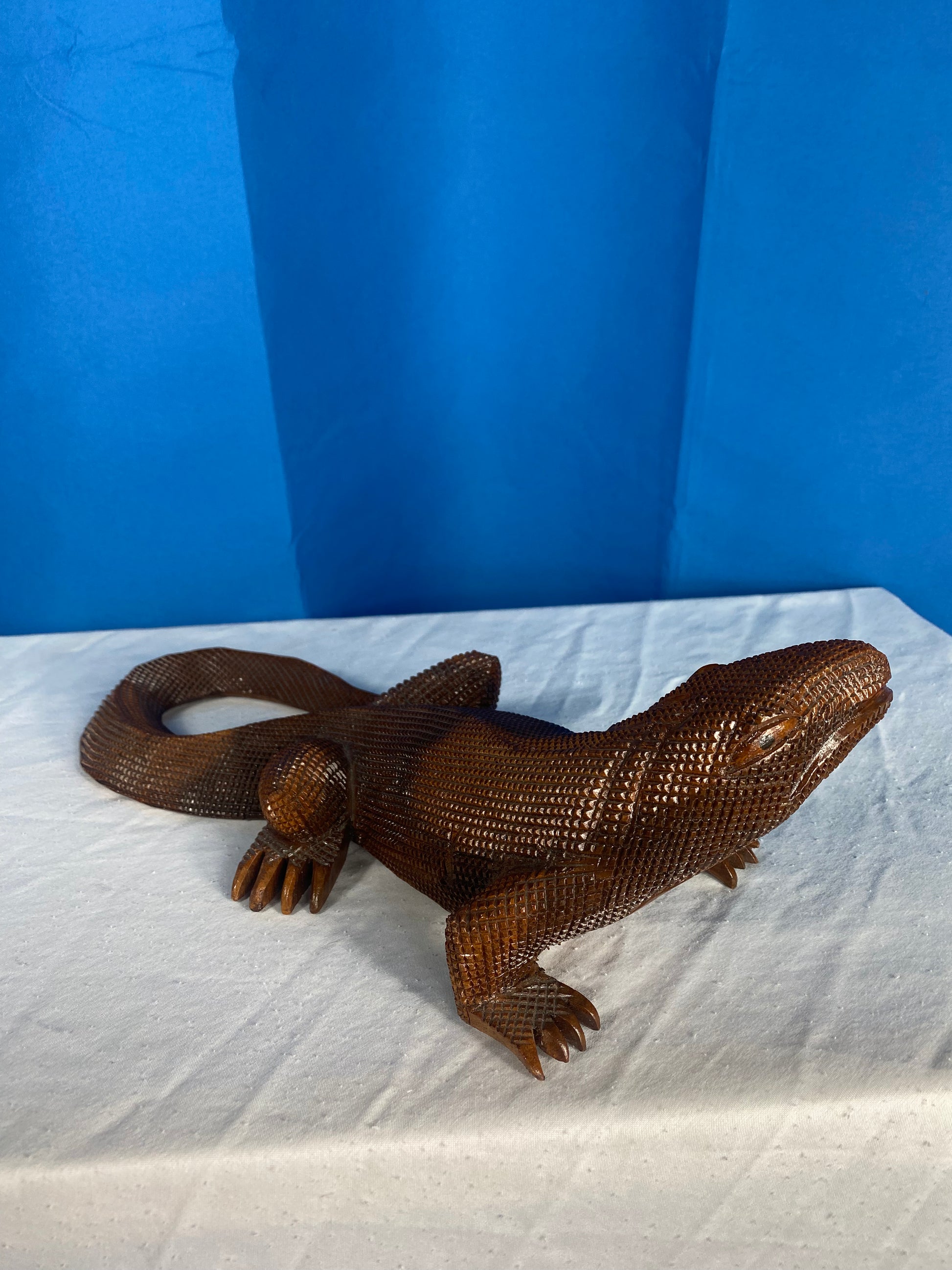 Large Vintage Carved Wood Komodo Dragon Lizard