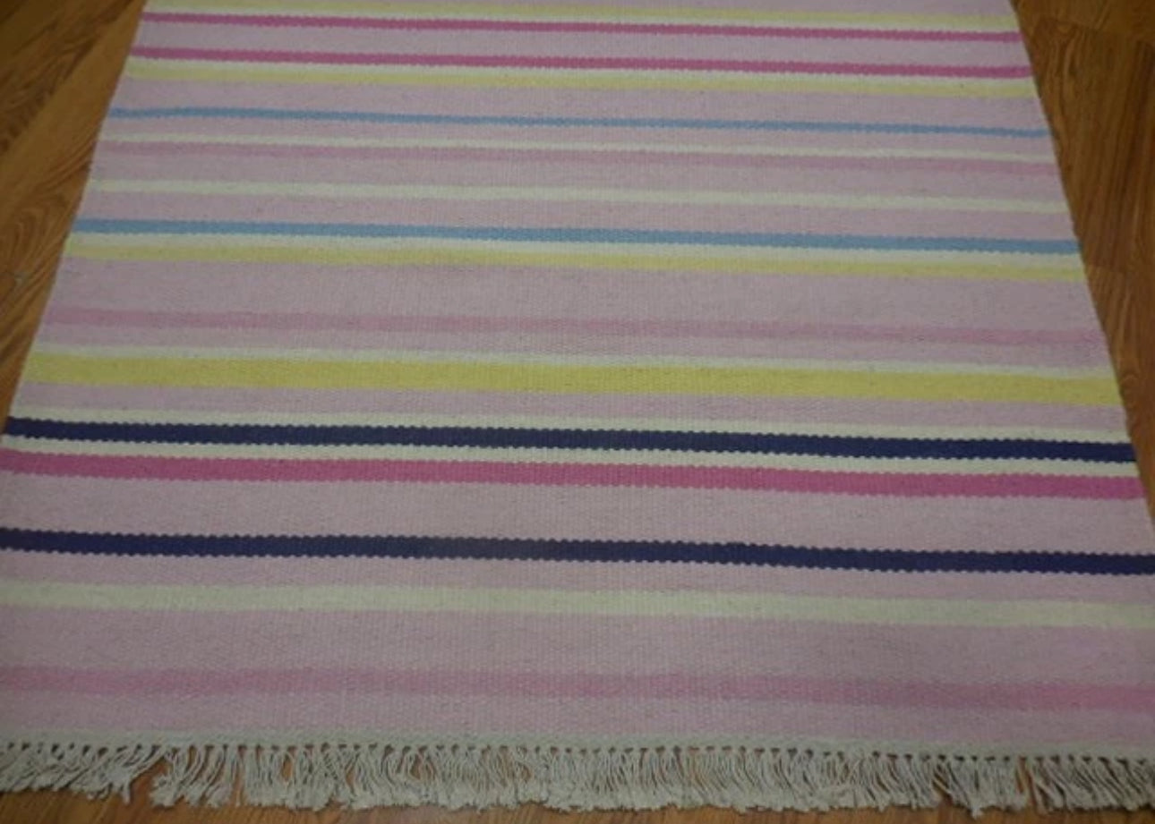 Vintage Handwoven Pastel Striped Flat Weave Rug Fringe Cottage Farmhouse Boho 6ft x 4ft
