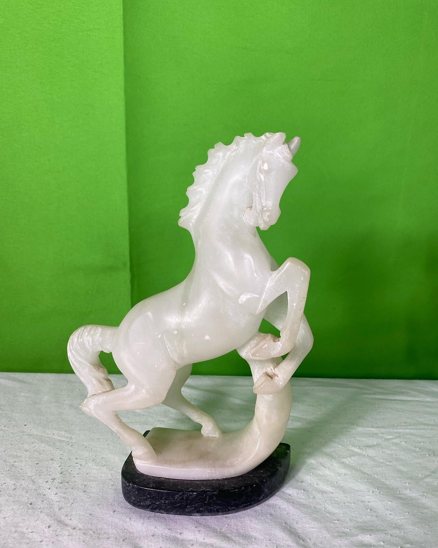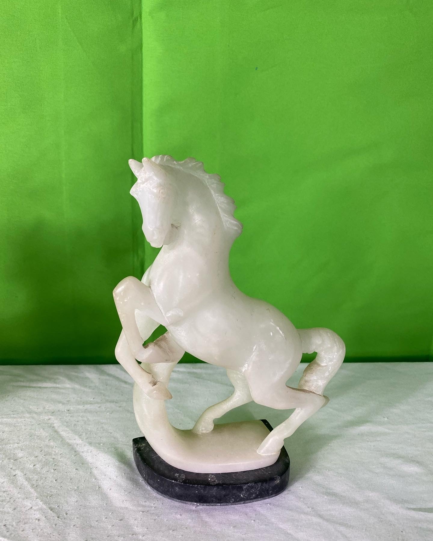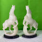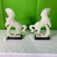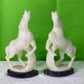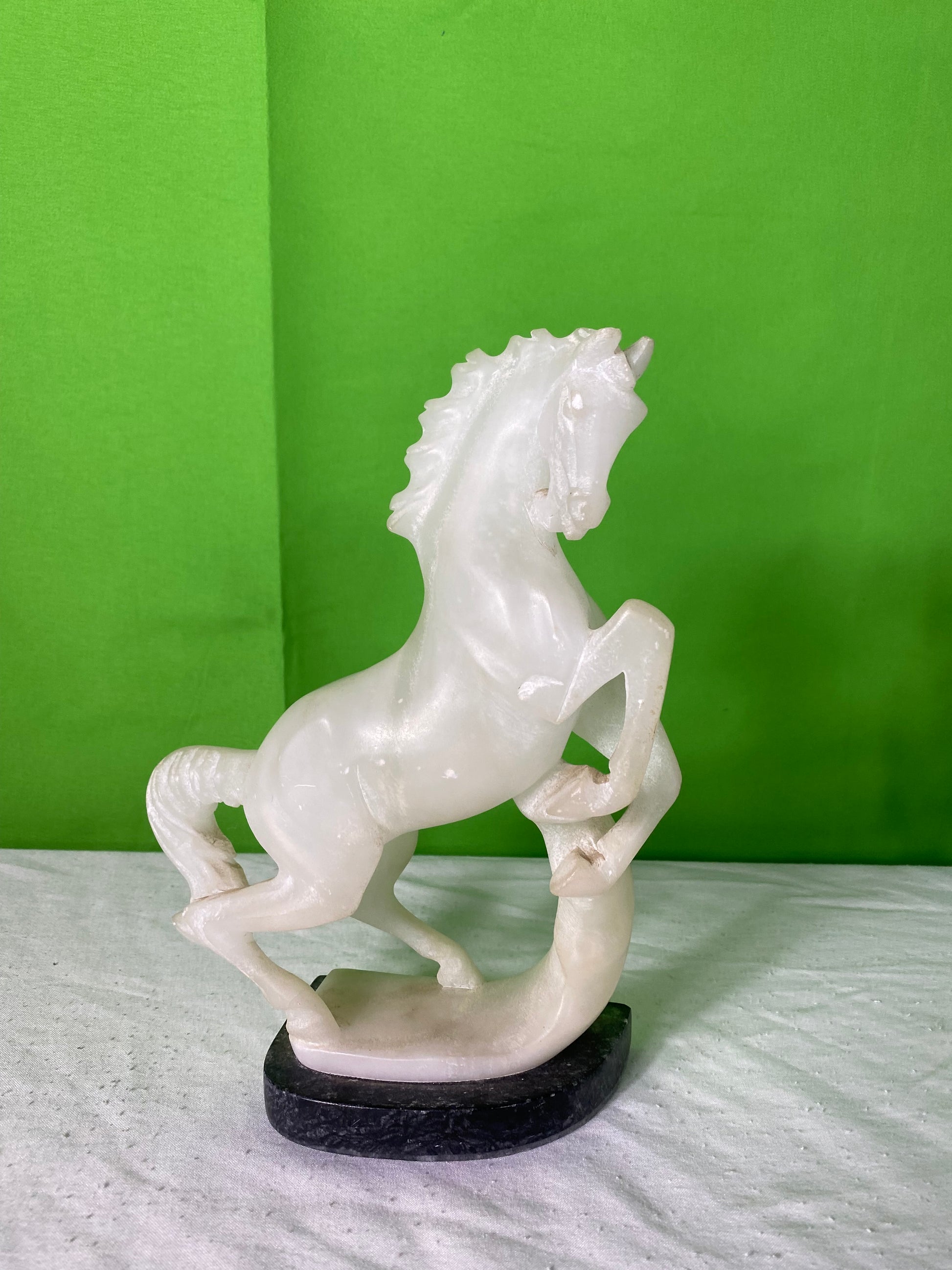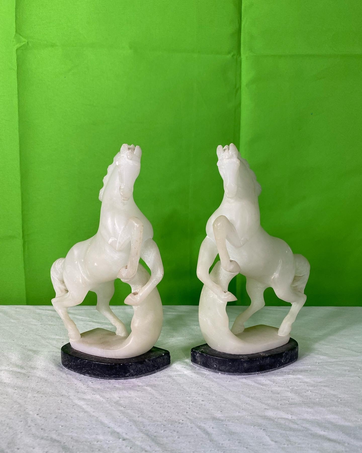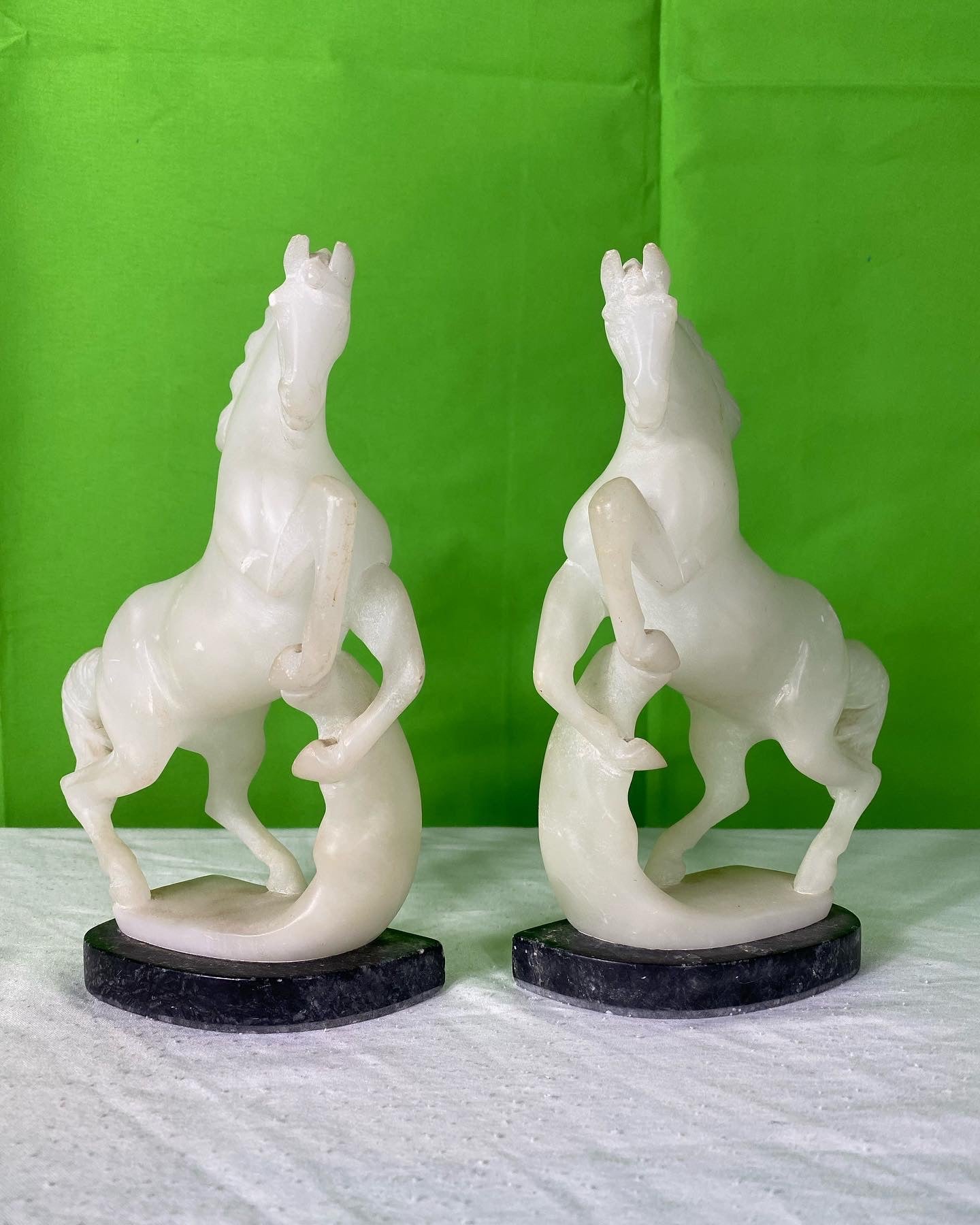 Pair Vintage Hand Carved Alabaster Stone Horse Bookends on Marble Bases