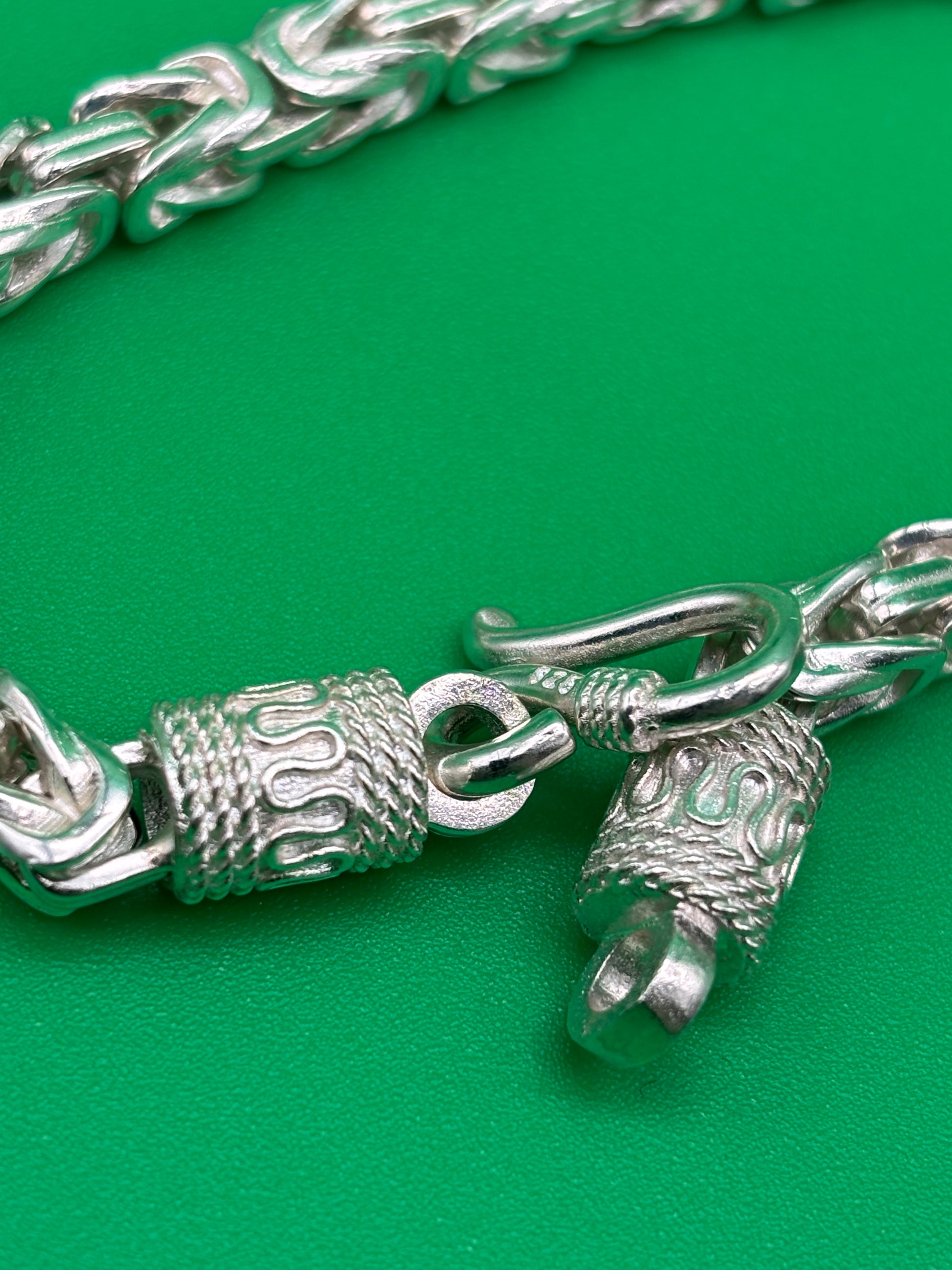 - Construction: Hand-made, substantial links, traditional S-hook clasp