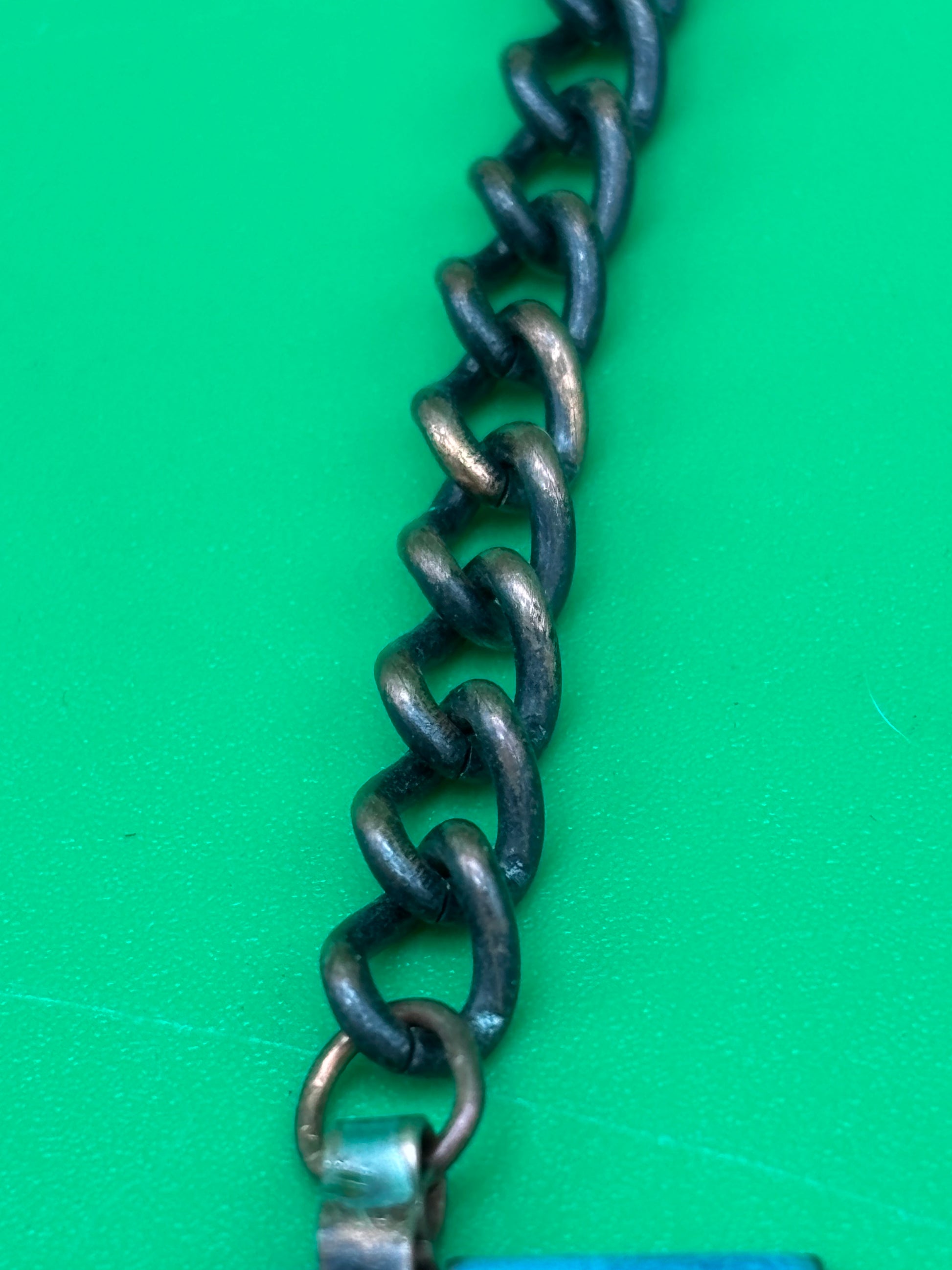 Very nice vintage condition with age-appropriate wear/patina to the metal as expected from an estate piece. Blue elements present beautifully. Please review all photos for best condition details.