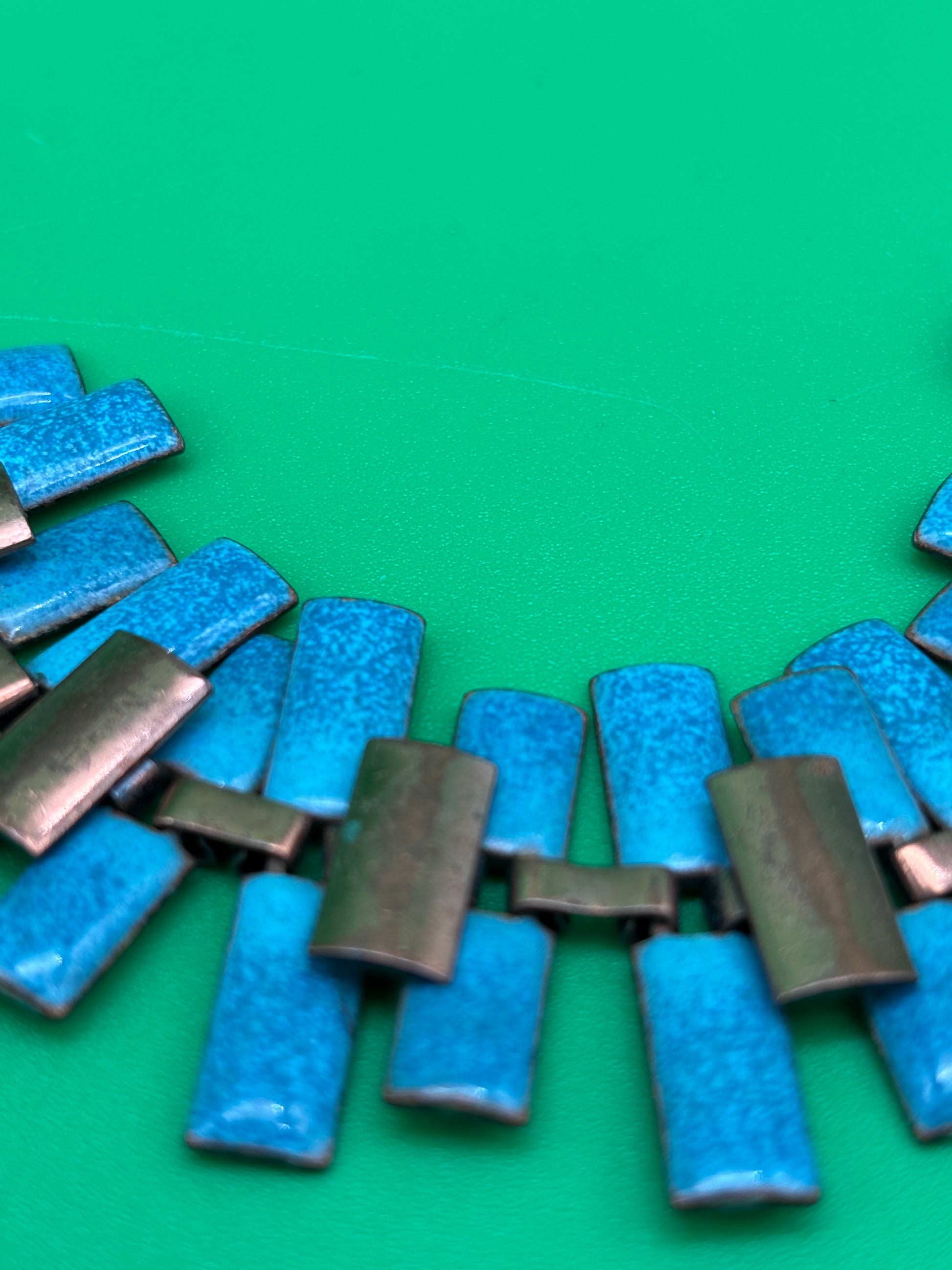 Vintage Estate MCM High End Enameled Copper 23.5” Modernist Statement Necklace Blue, G27504