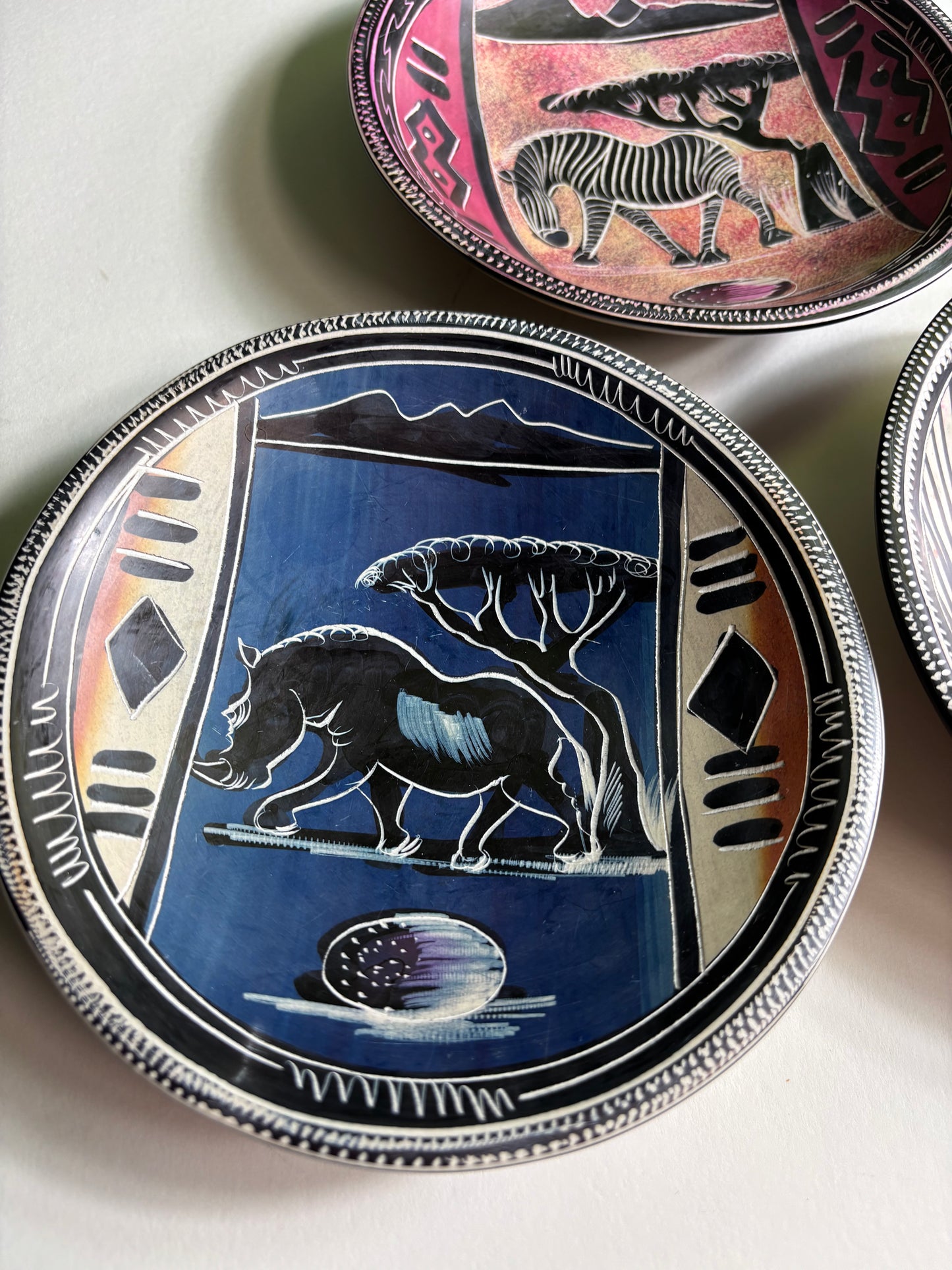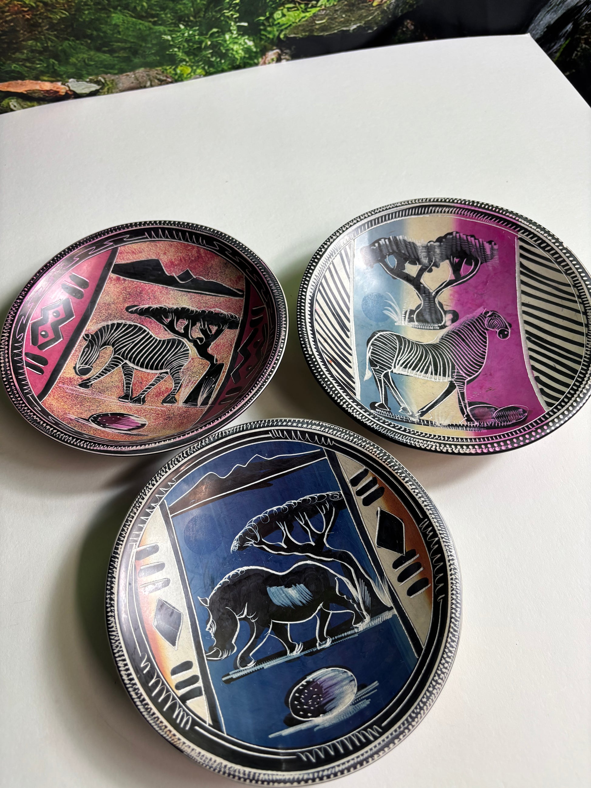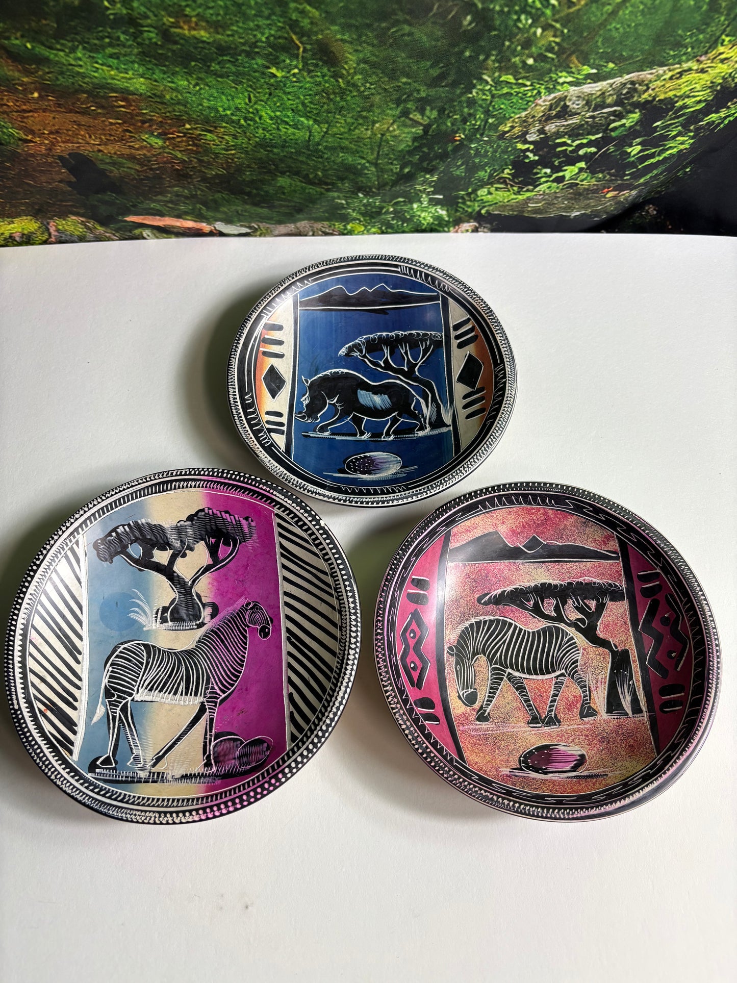 Set of 3 African Safari Soapstone 6" Trinket Bowls
