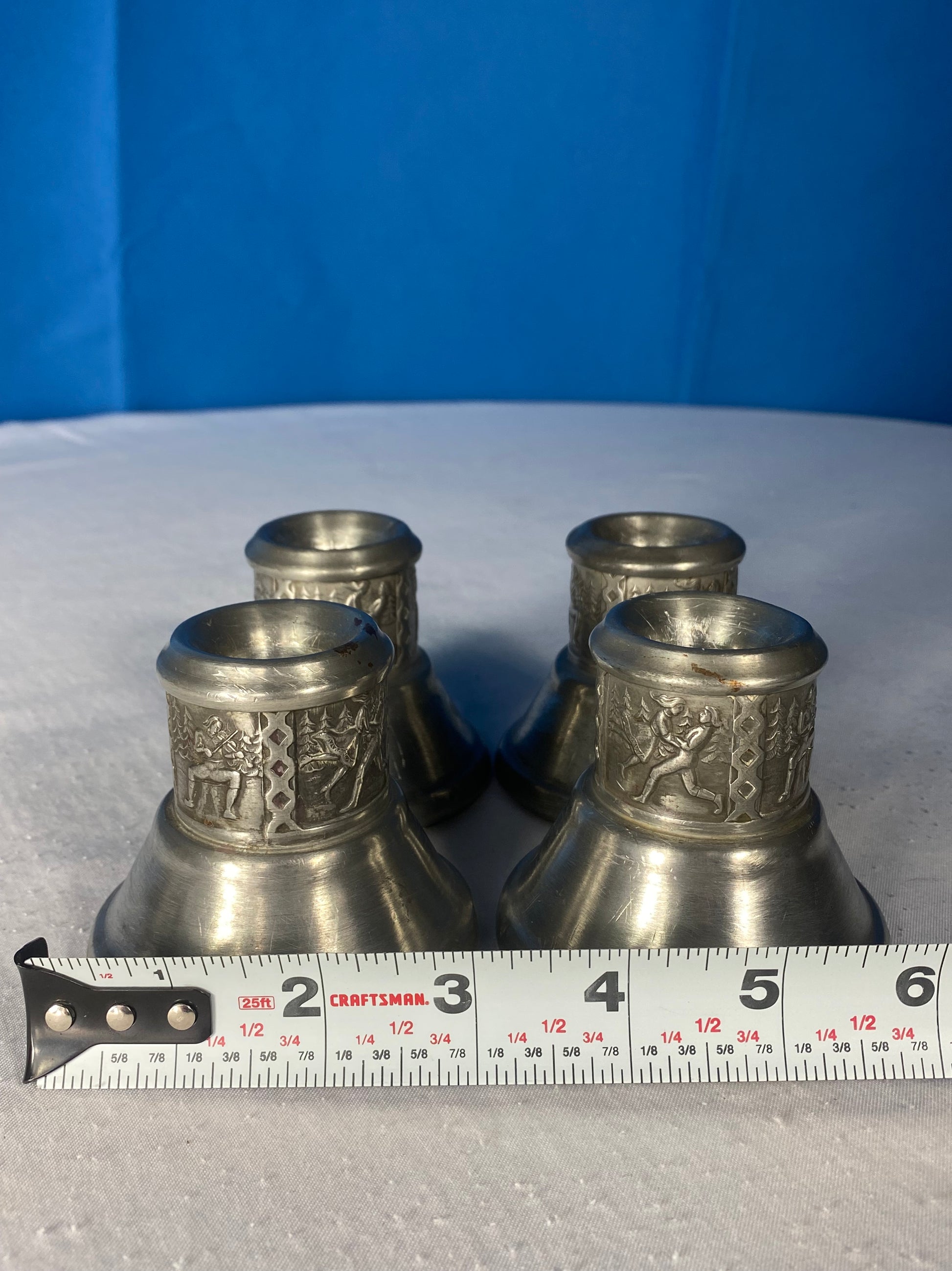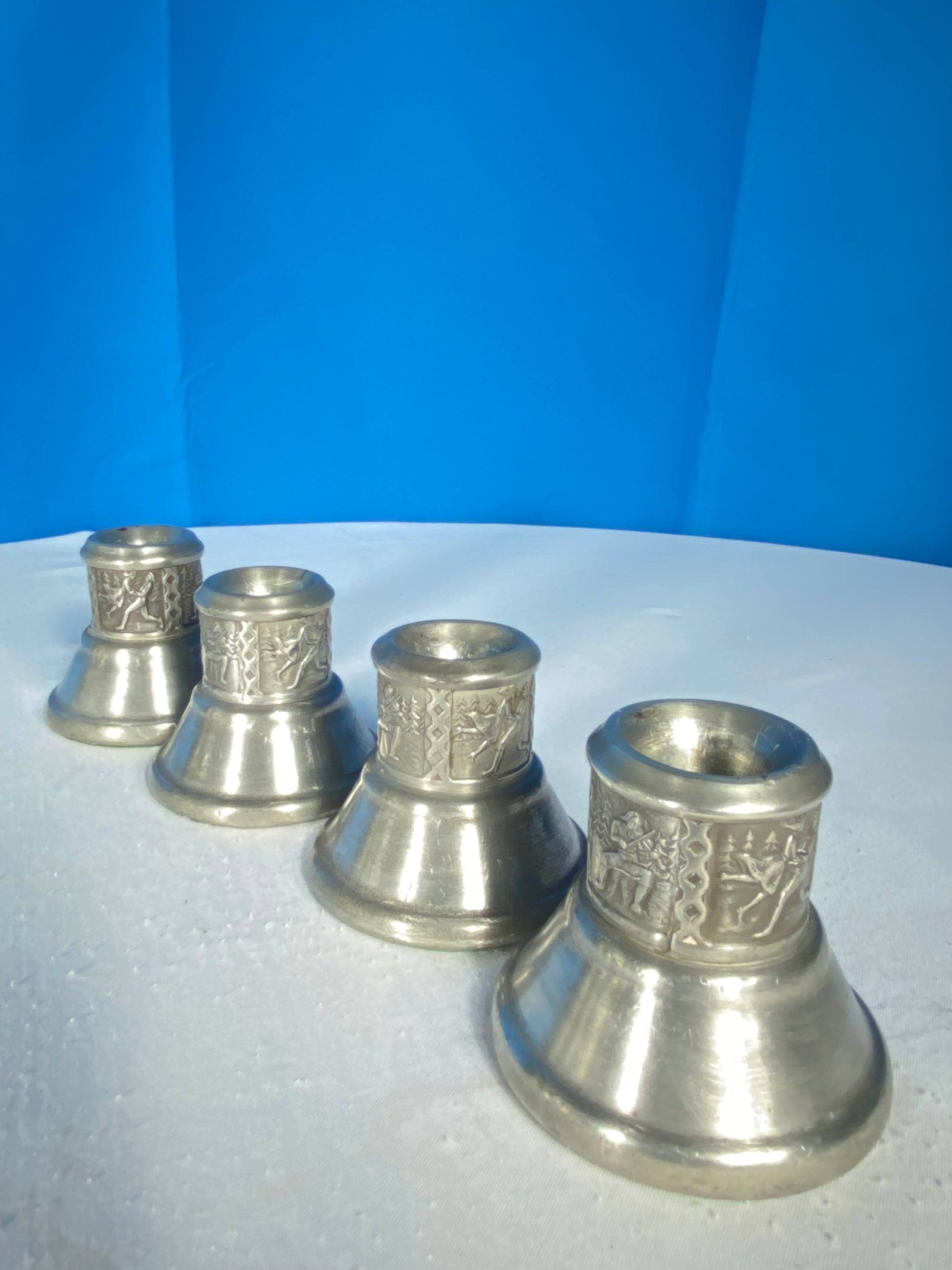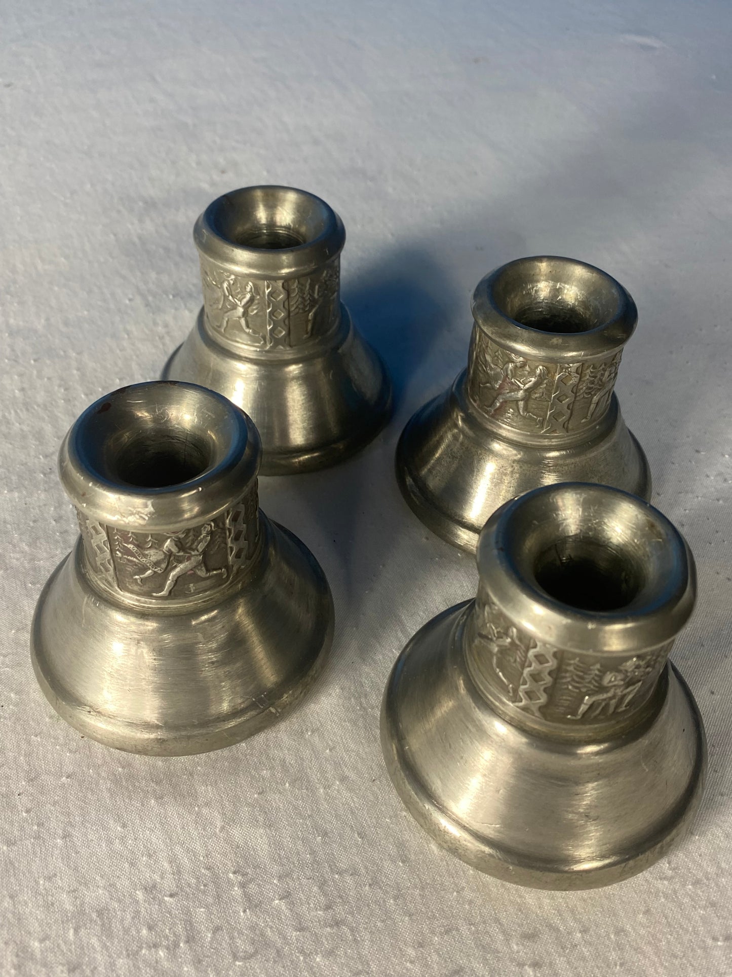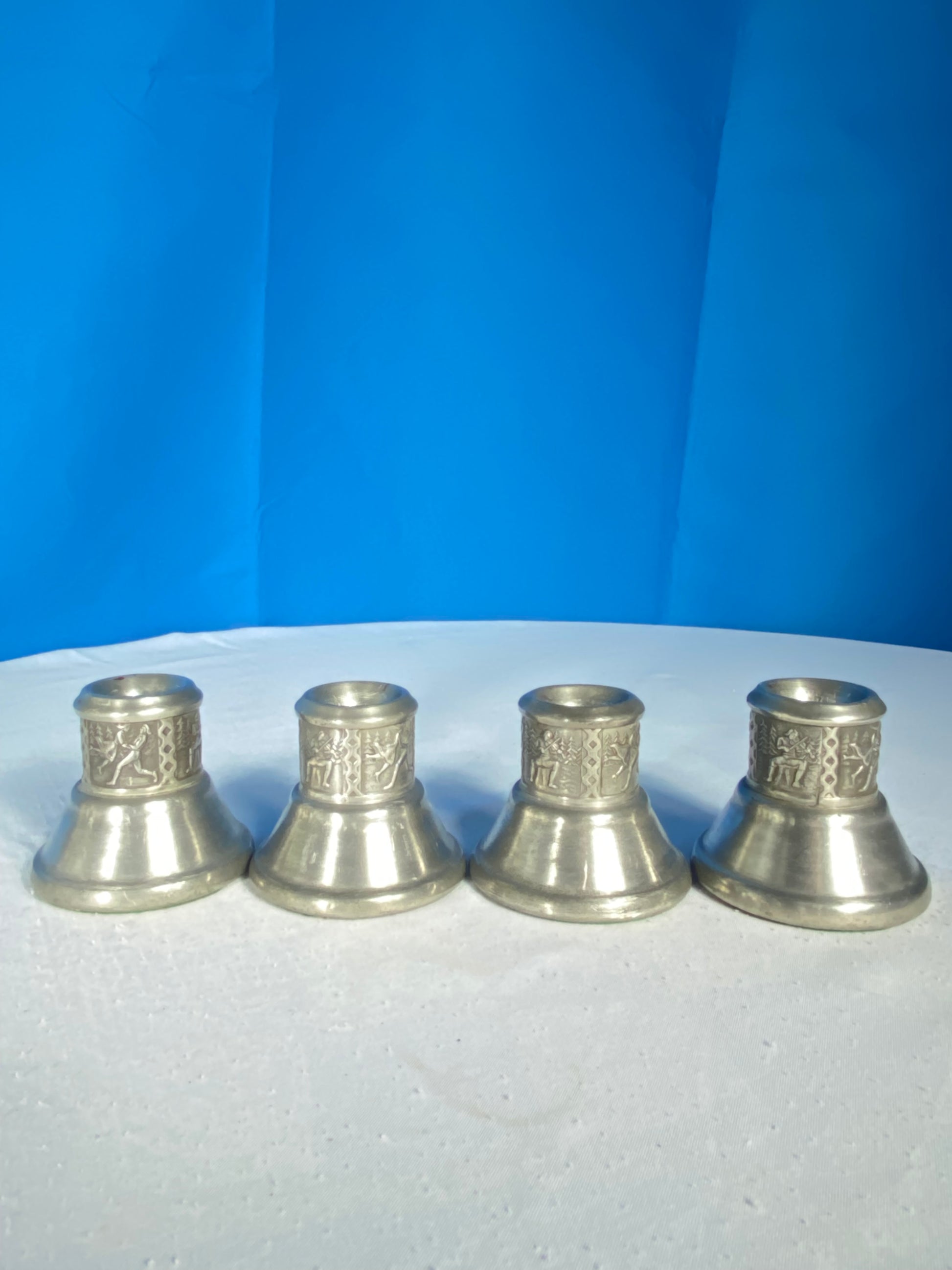 Set of 4 Norway Candlestick Pewter Candle Holder Featuring Musicians