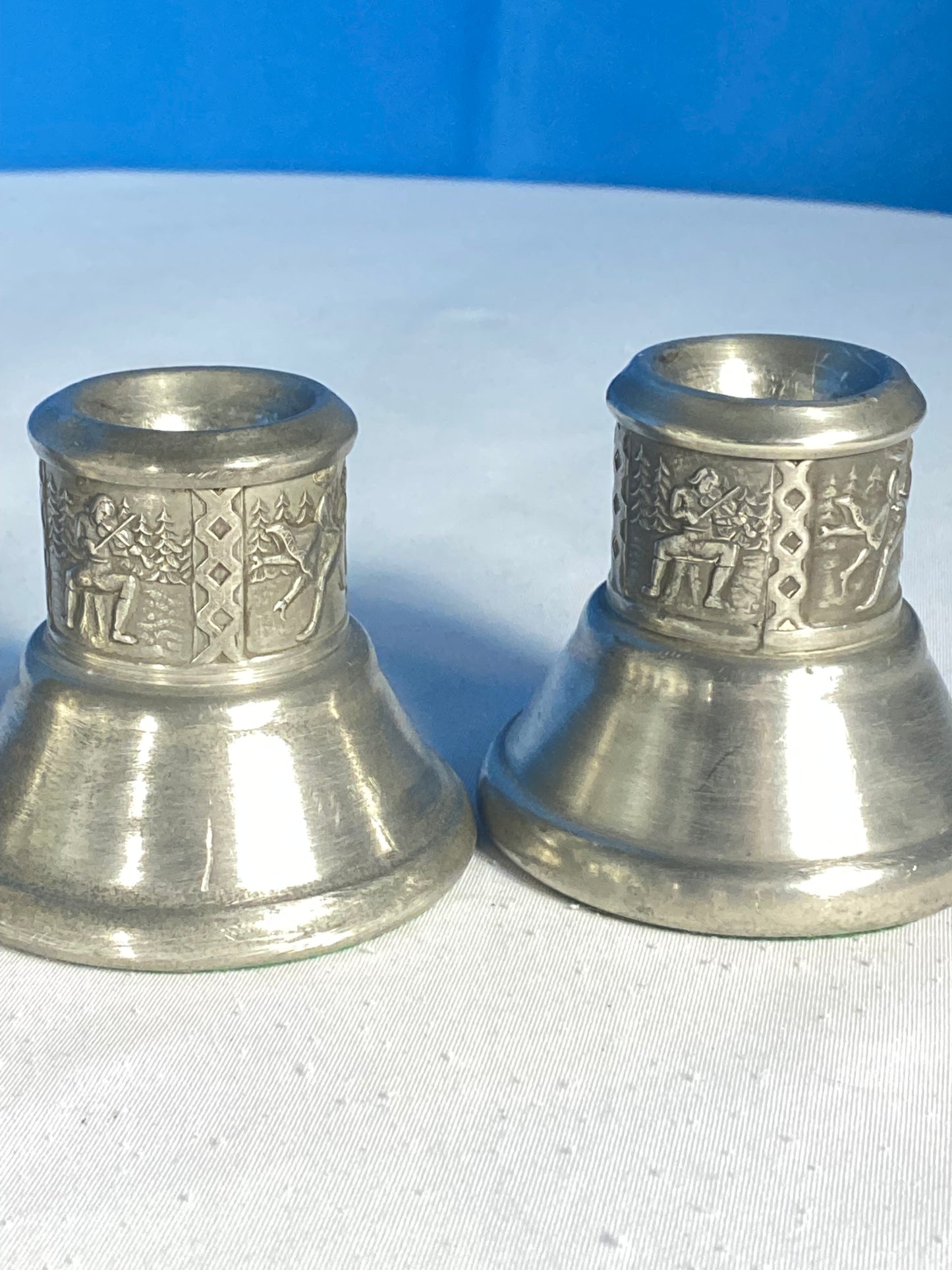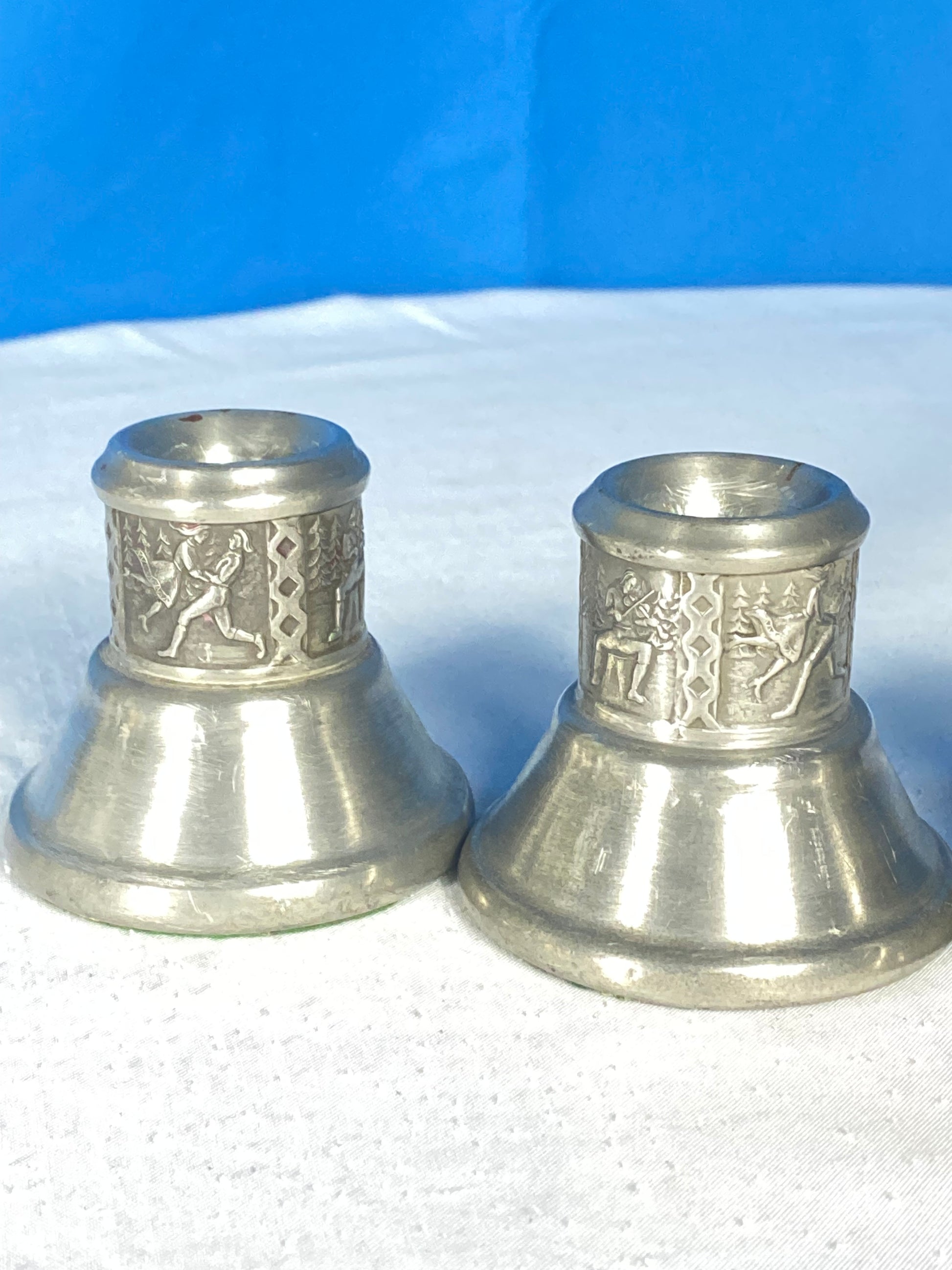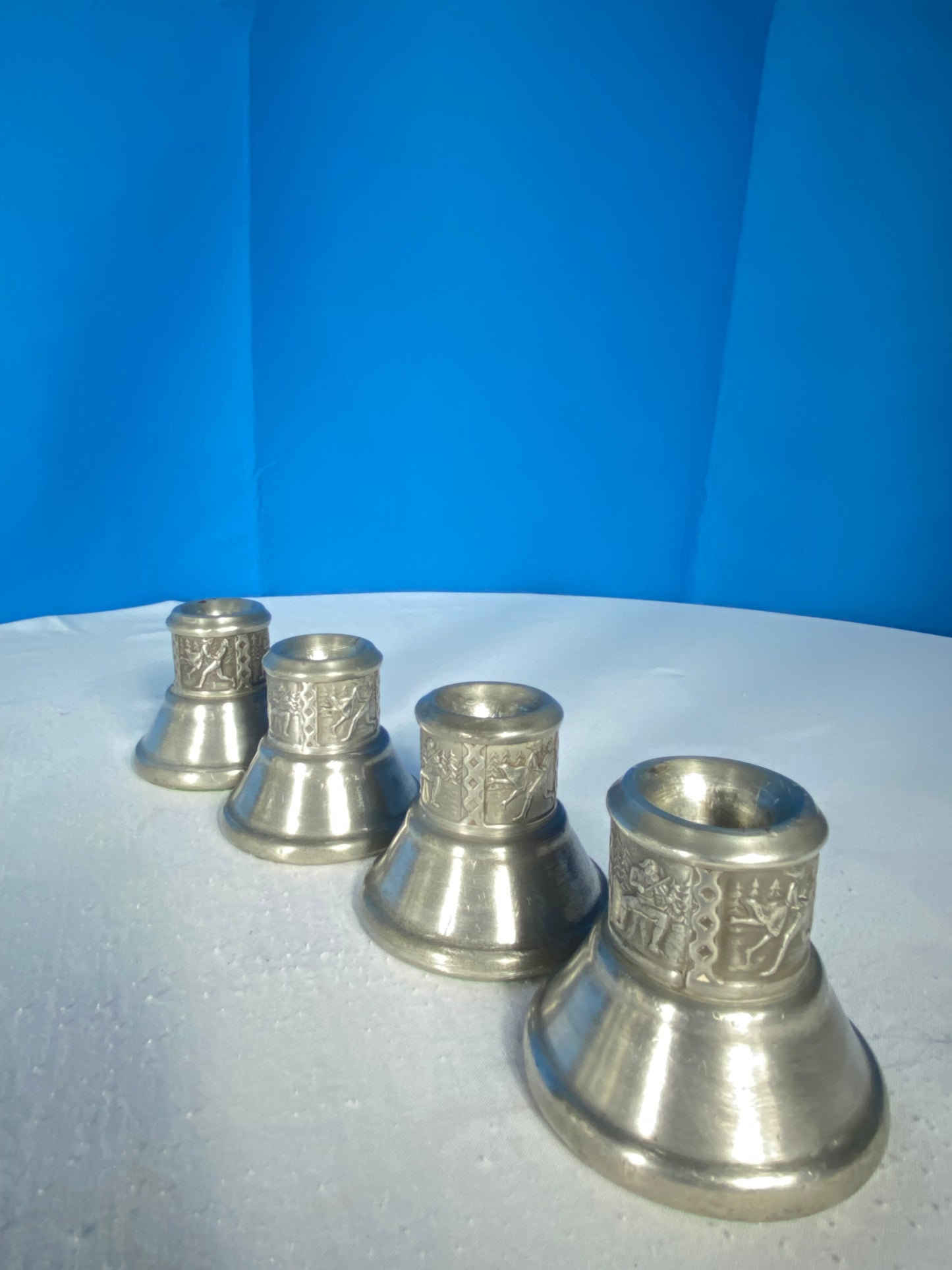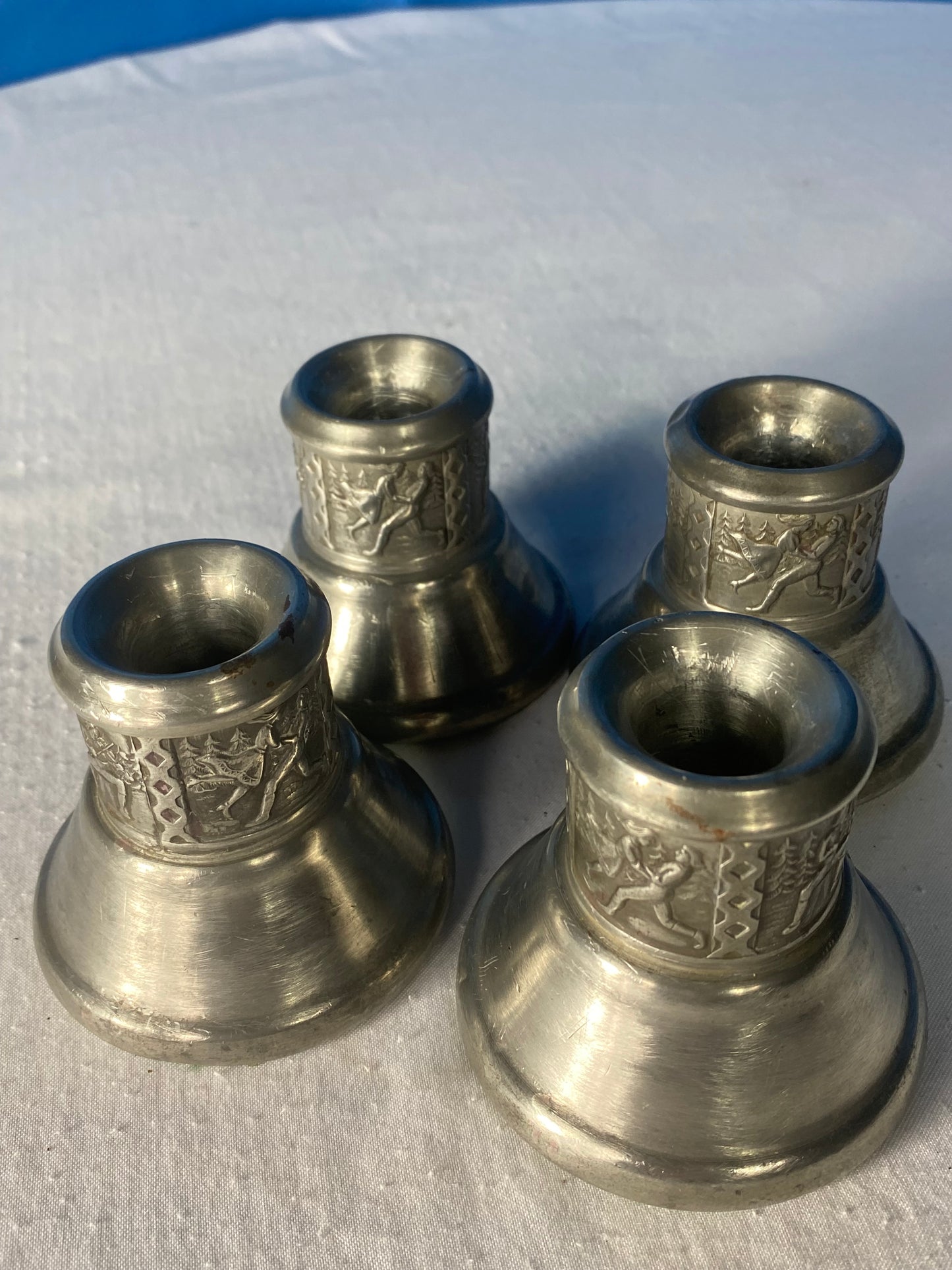 Set of 4 Norway Candlestick Pewter Candle Holder Featuring Musicians