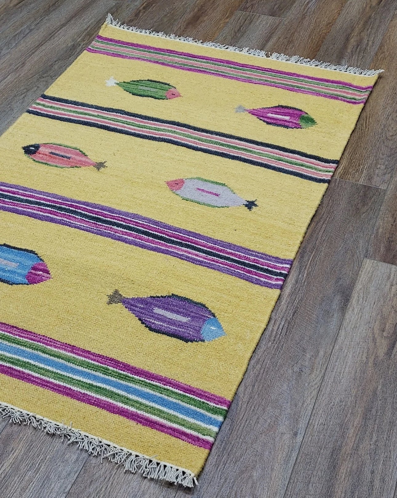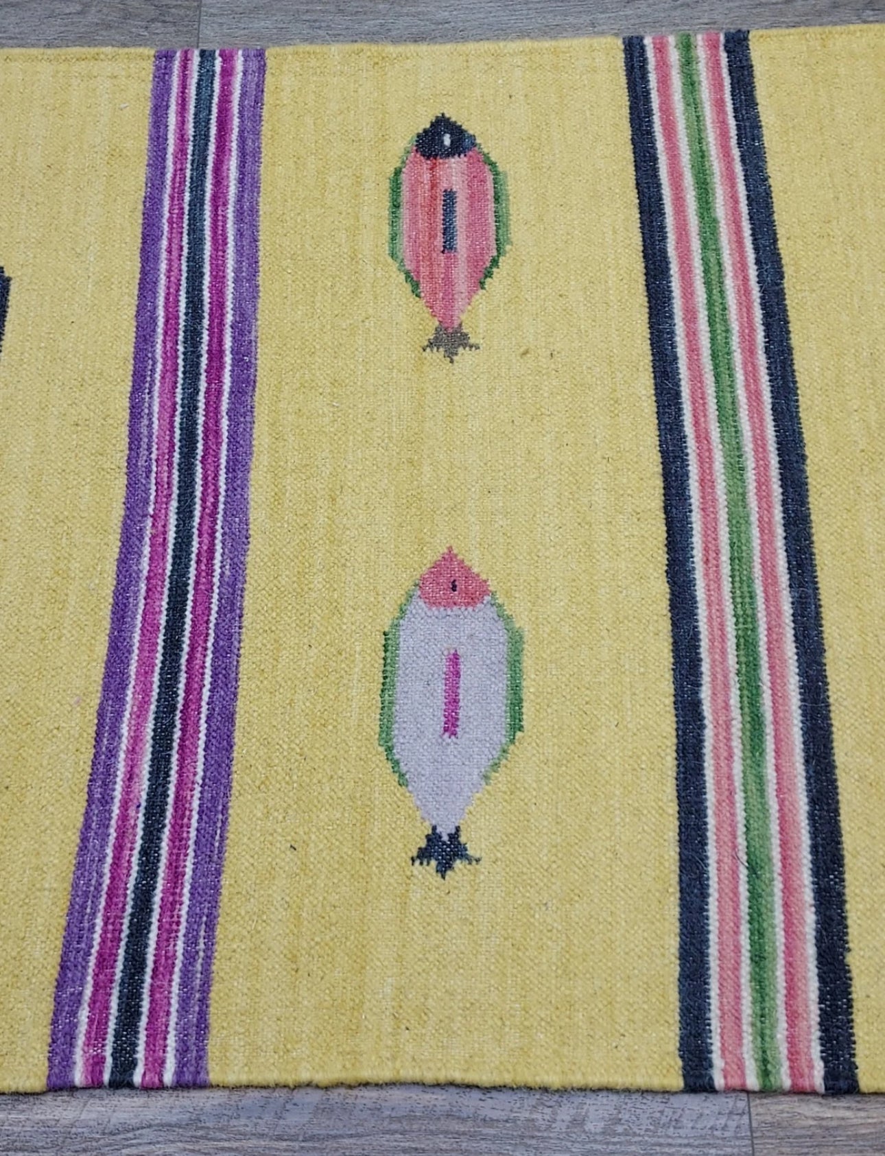 Handmade Turkish Kilim Rug 3x5 ft Bohemian Fish Design “Tree of Life” Flatweave