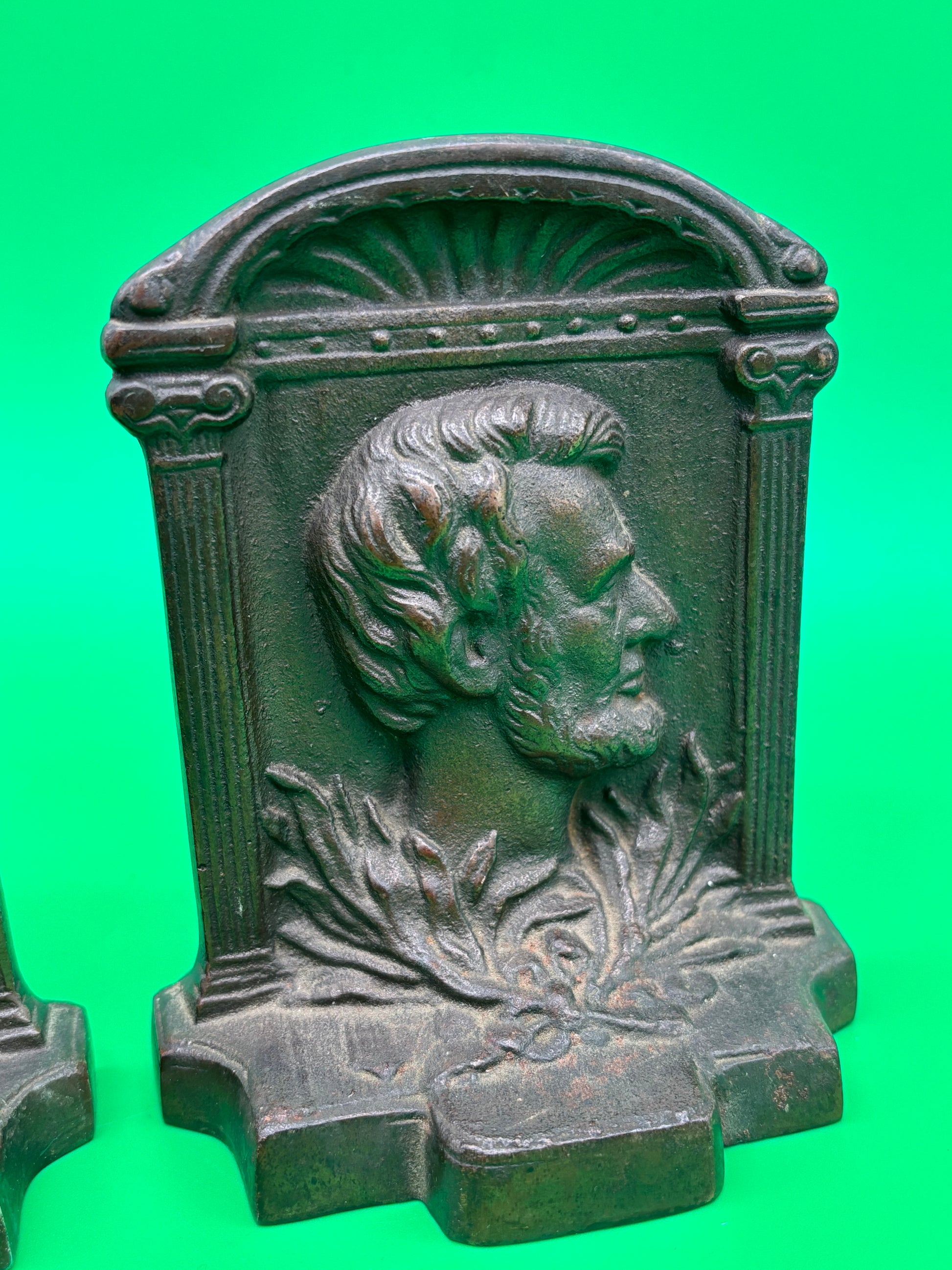Vintage Heavy Metal Abraham Lincoln Bookends Pair Civil War Era Style