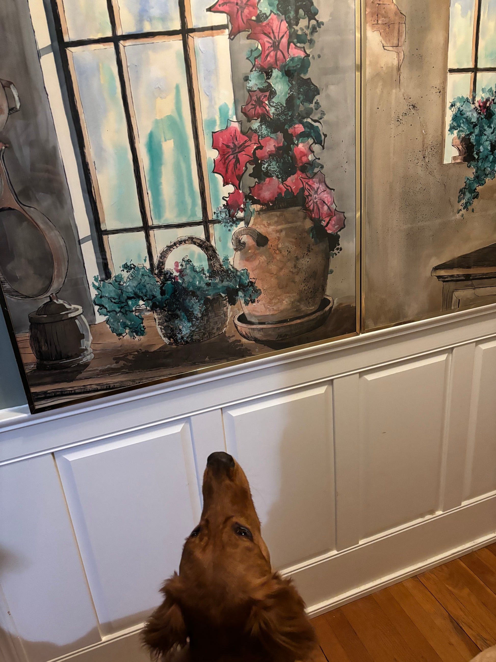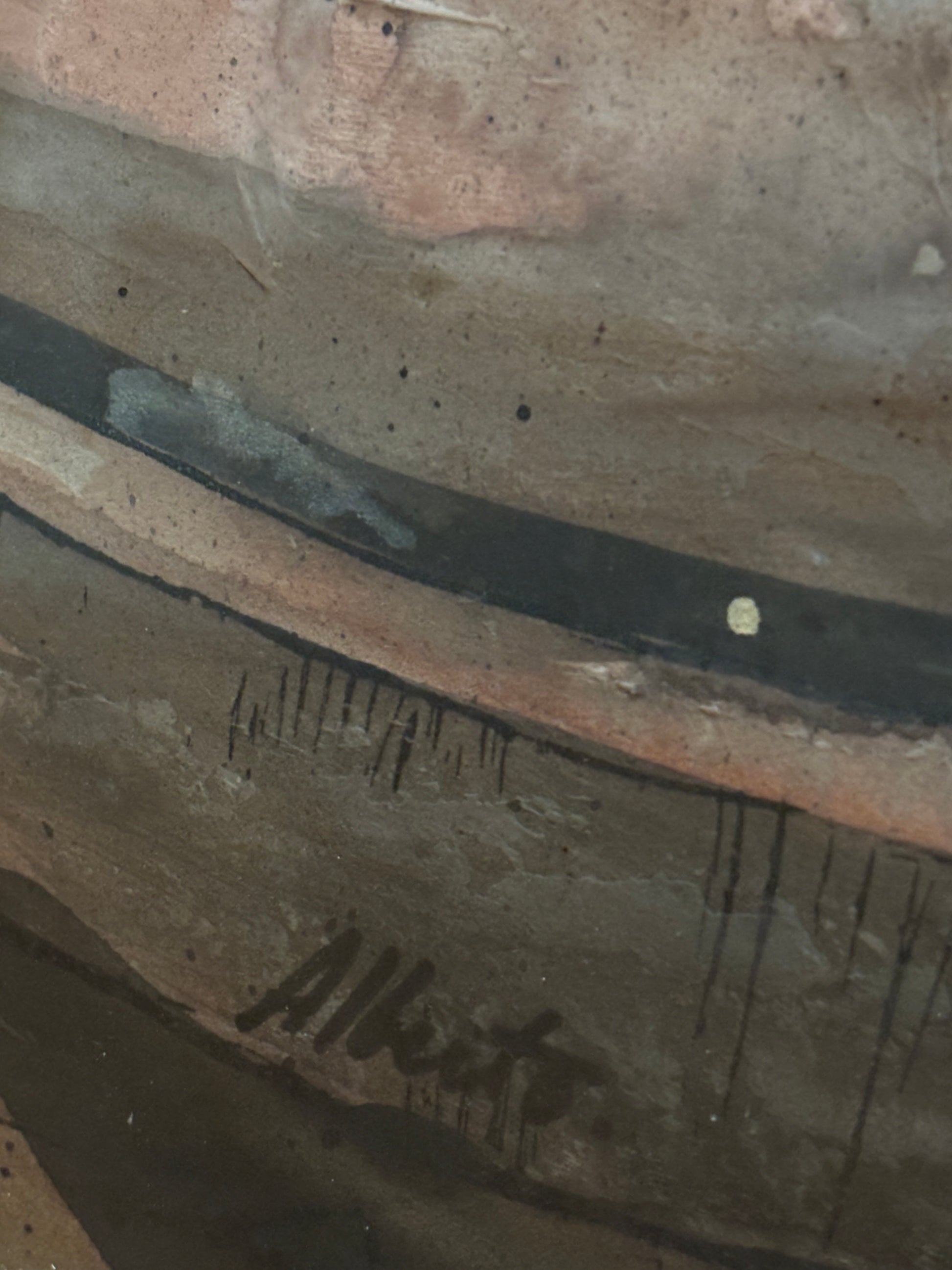 Vintage Antique Glass Frame Canvas Painting "Country Window" by Artist Alberto