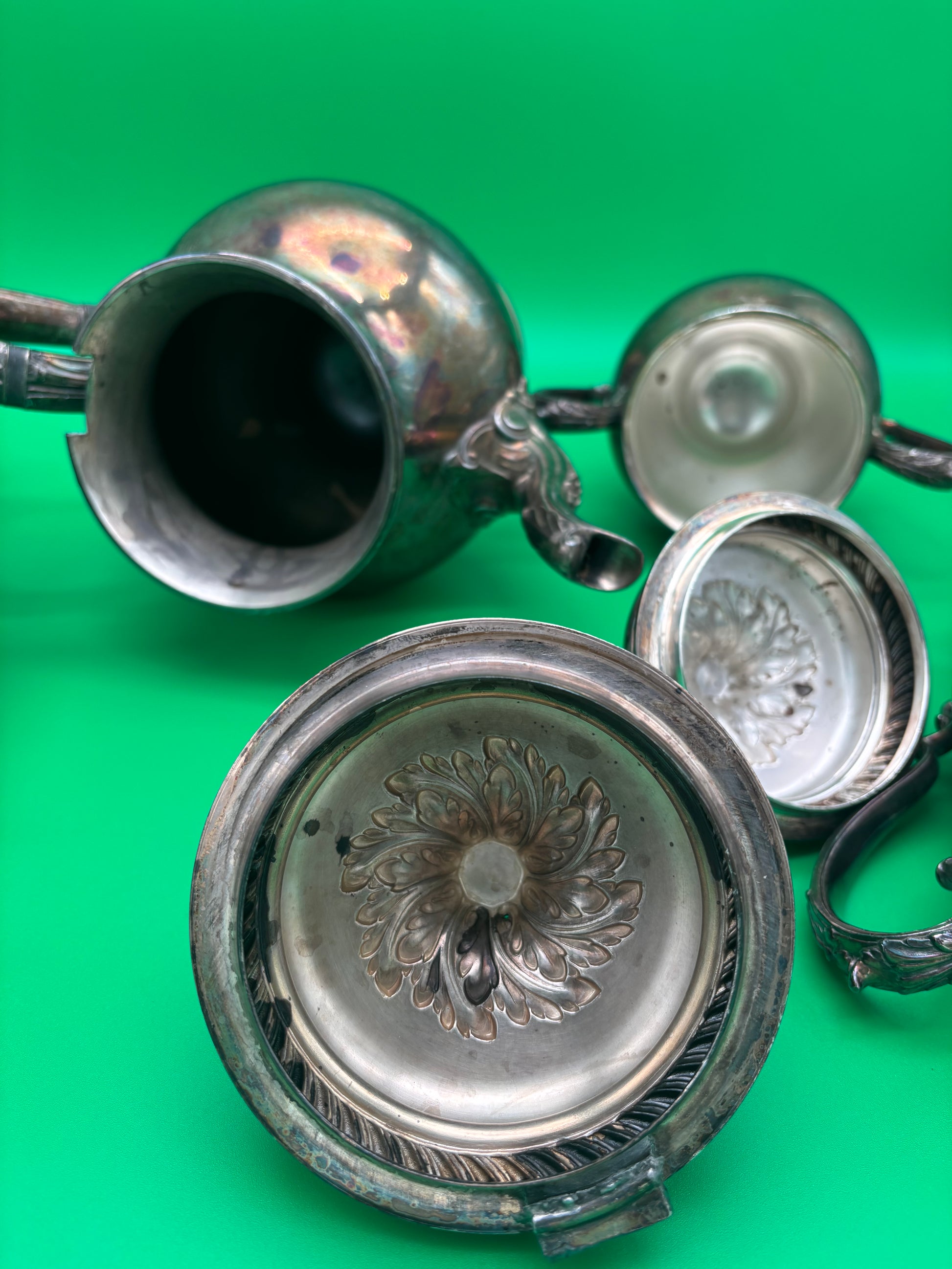 Vintage Silver Plate Tea & Coffee Set w/ Tray International Silver St James